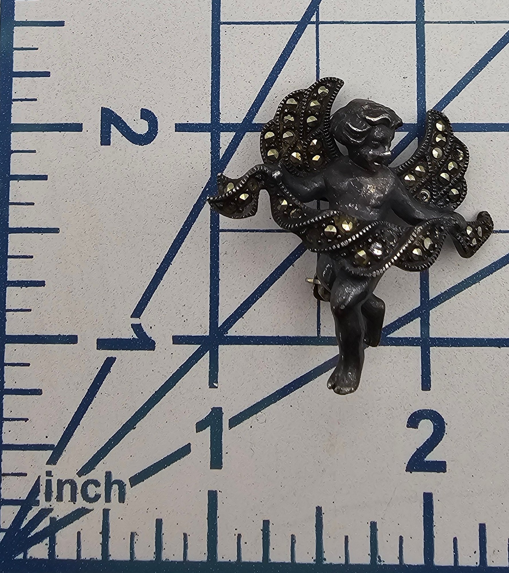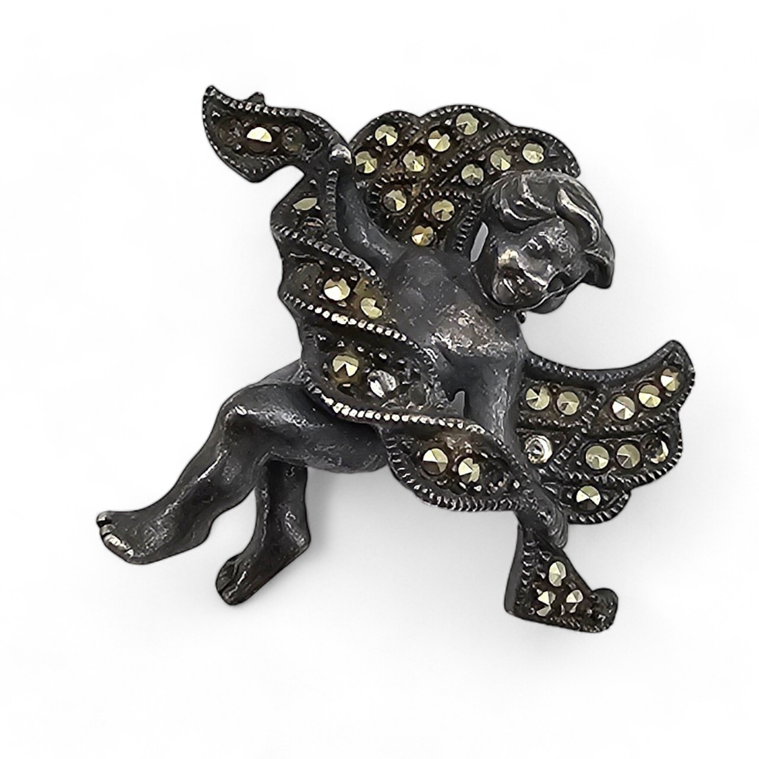 Judith Jack Marcasite Sterling Silver Cherub Brooch 9.2 G