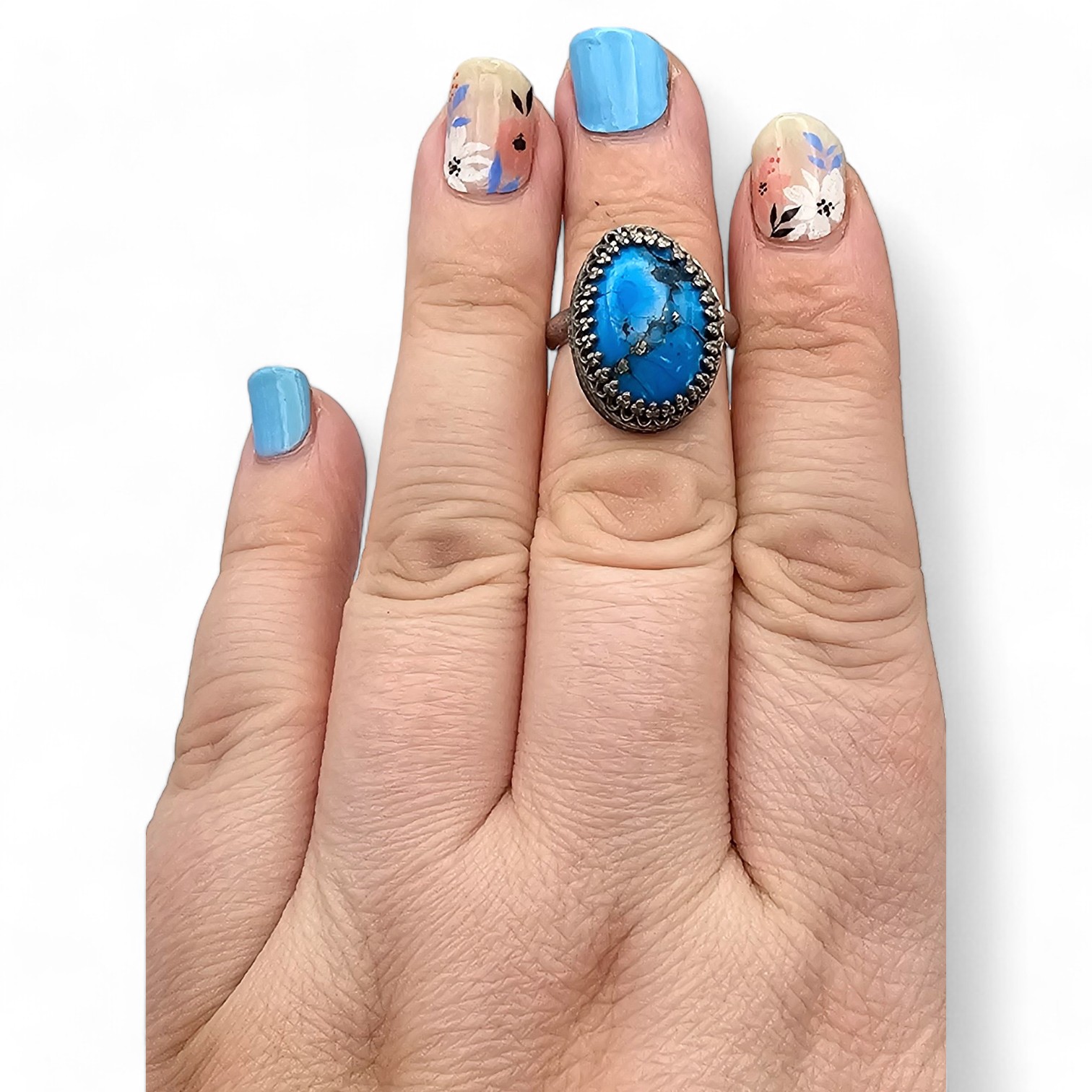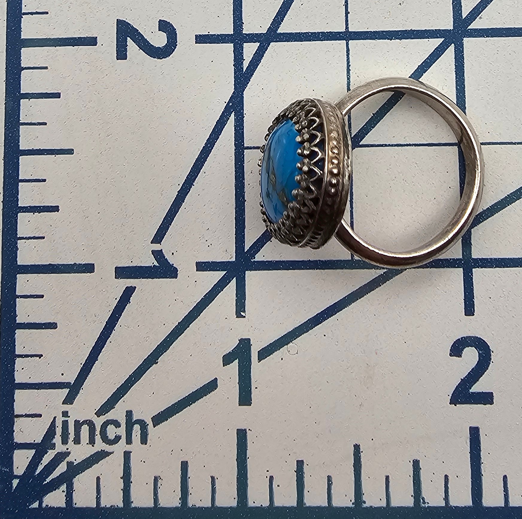 Faux Turquoise Sterling Silver Ring Size 5.25 5.7 G