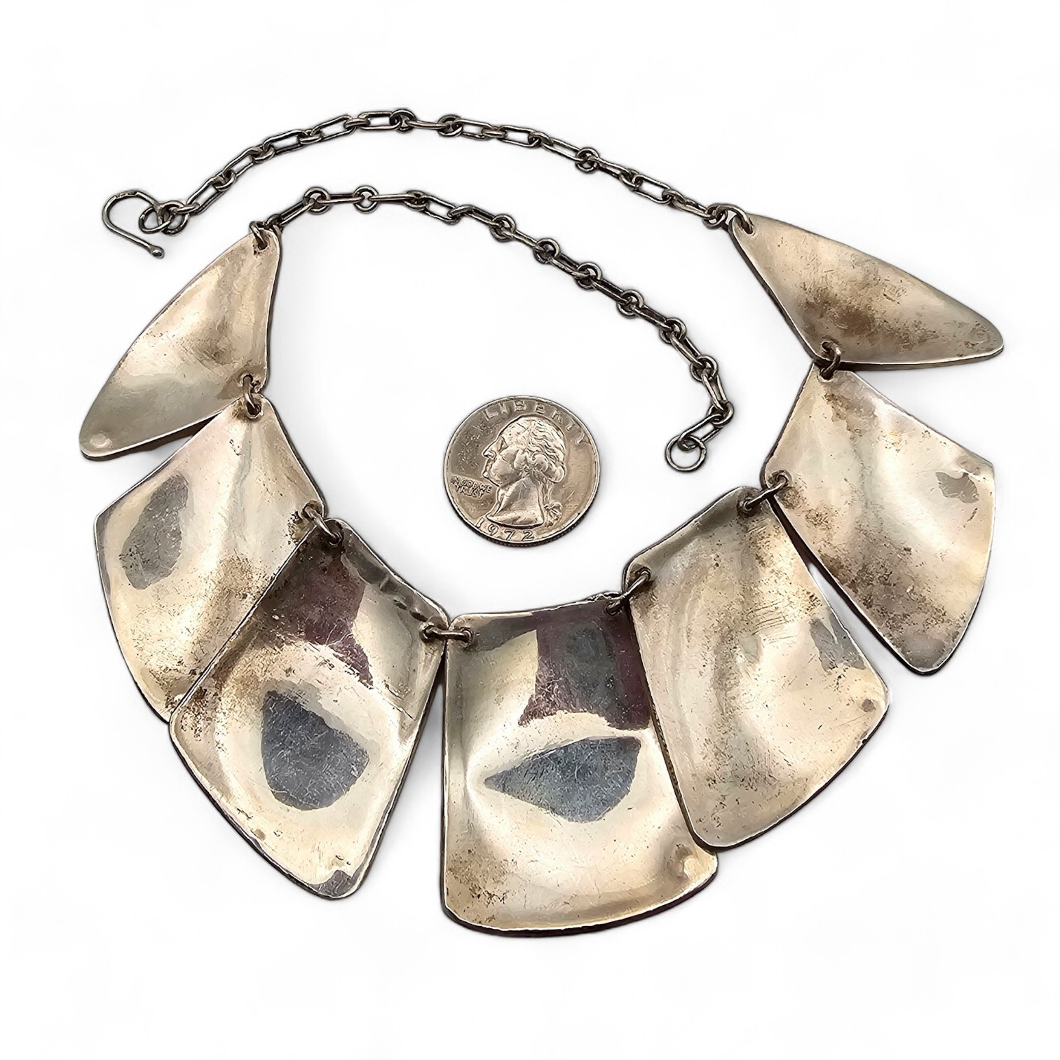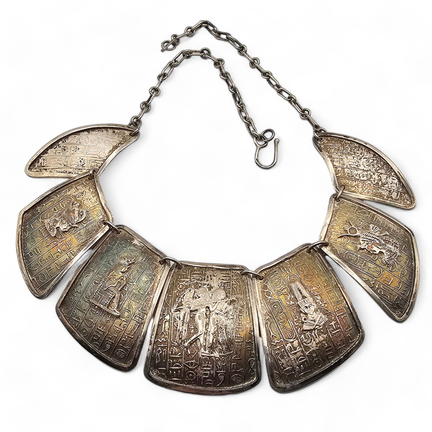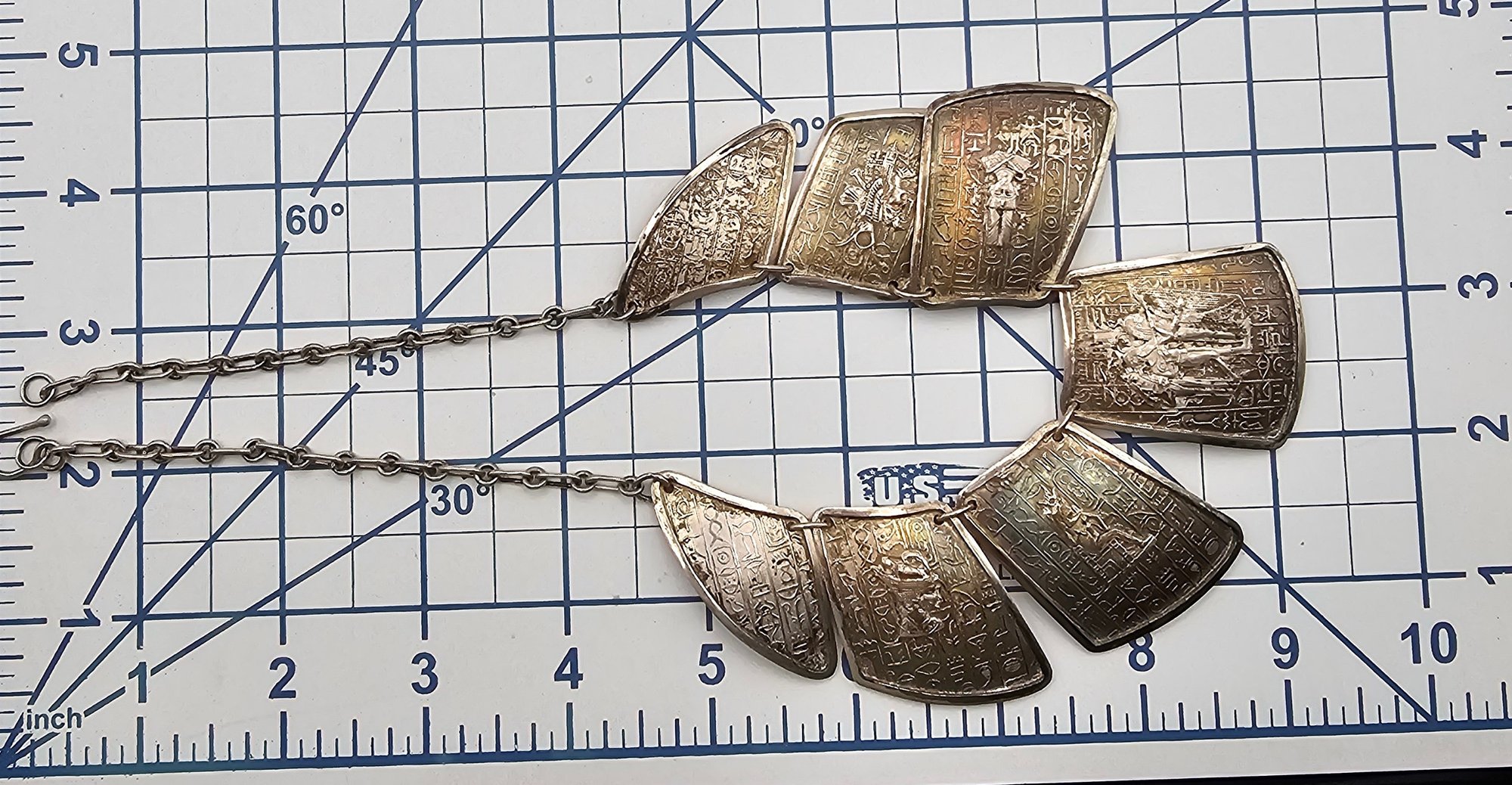 Stamped Sterling Silver Egyptian Revival Panel Necklace 72.6 G