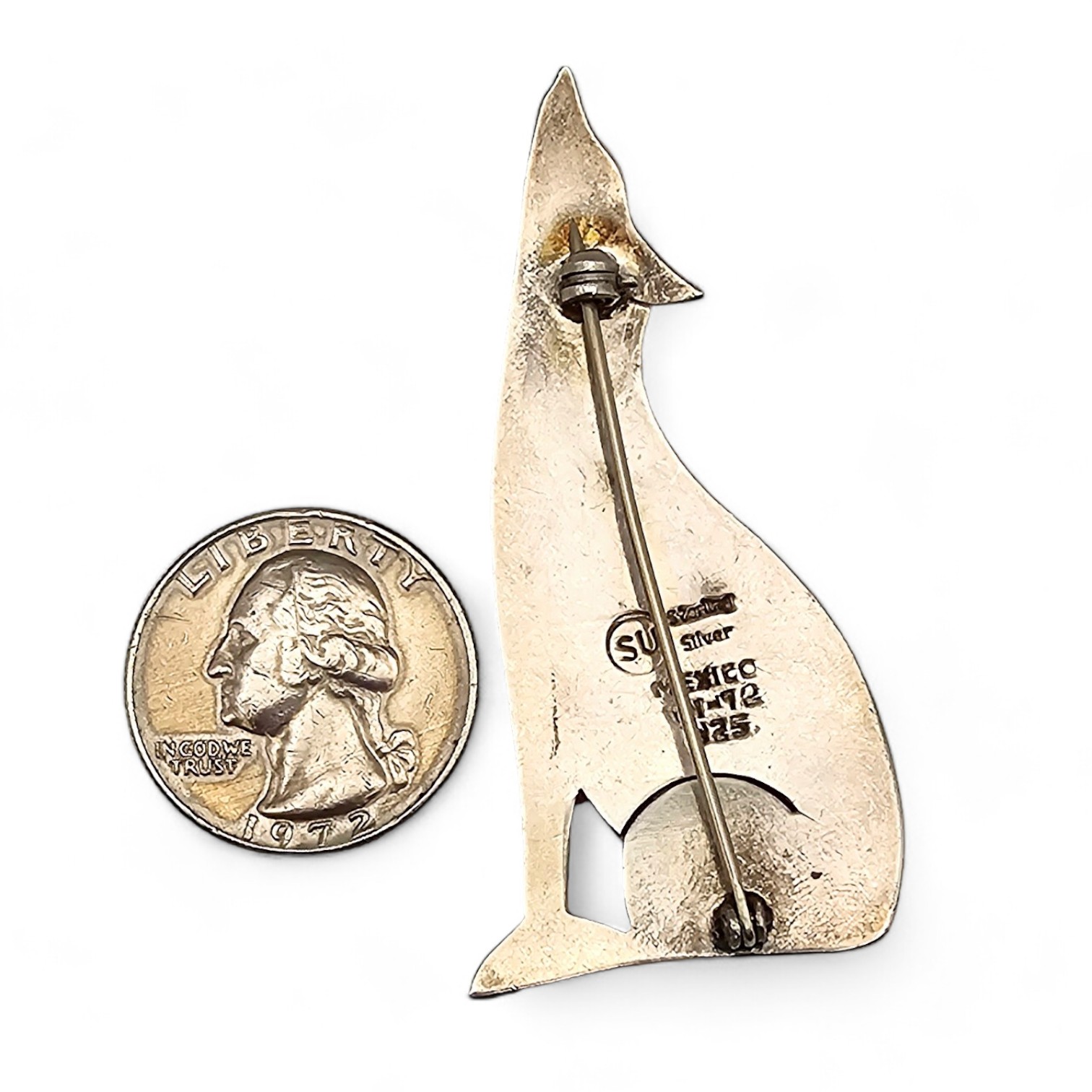 Mexico Taxco SU Sterling Silver Coyote Brooch 14.3 G
