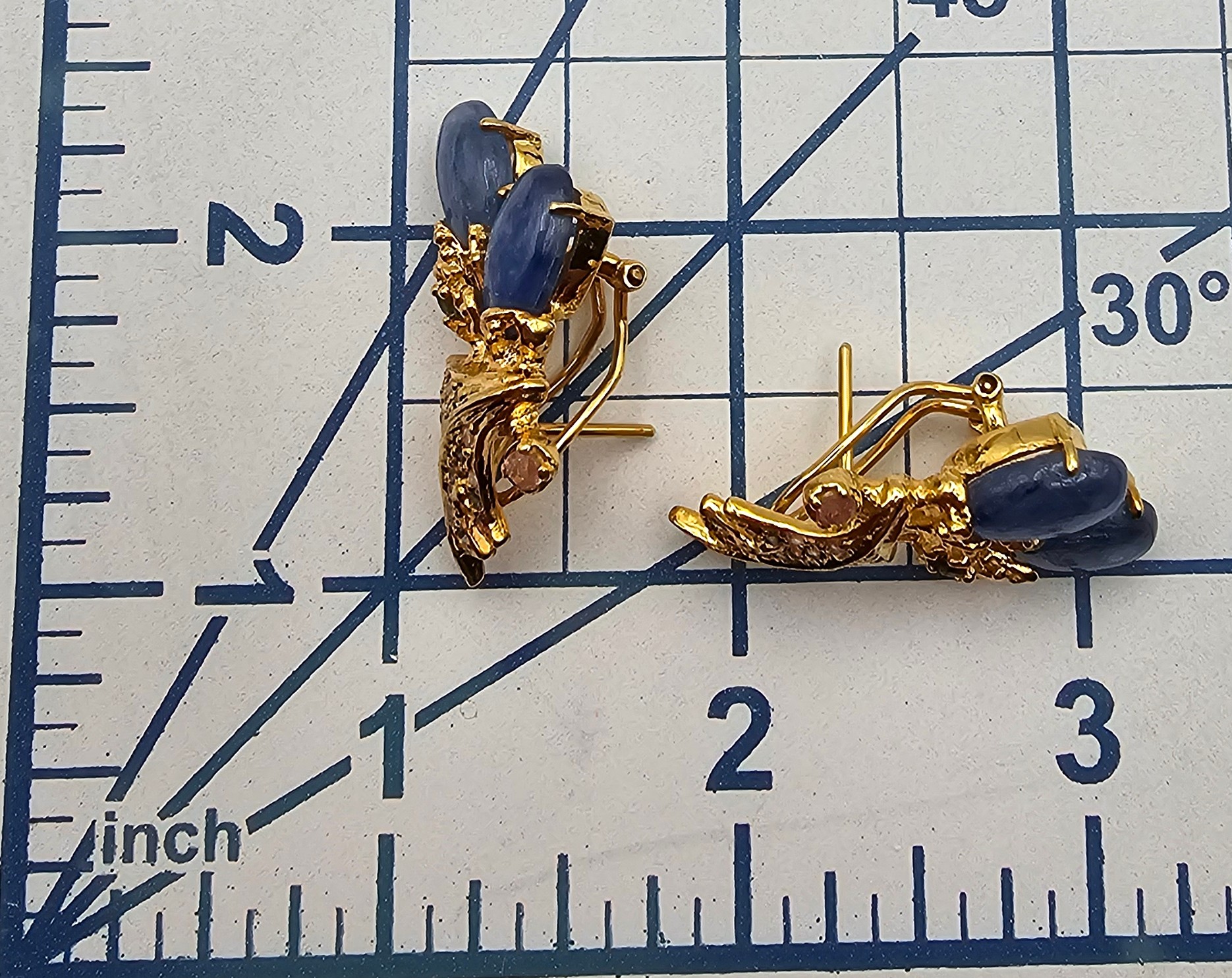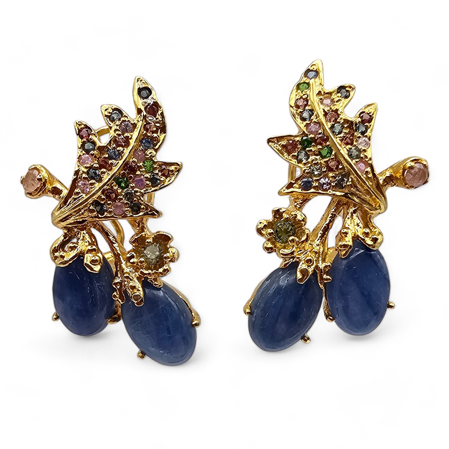 New Sapphire Multi Gemstone Peridot Topaz Gold Over Sterling Silver Earrings 15.1 G