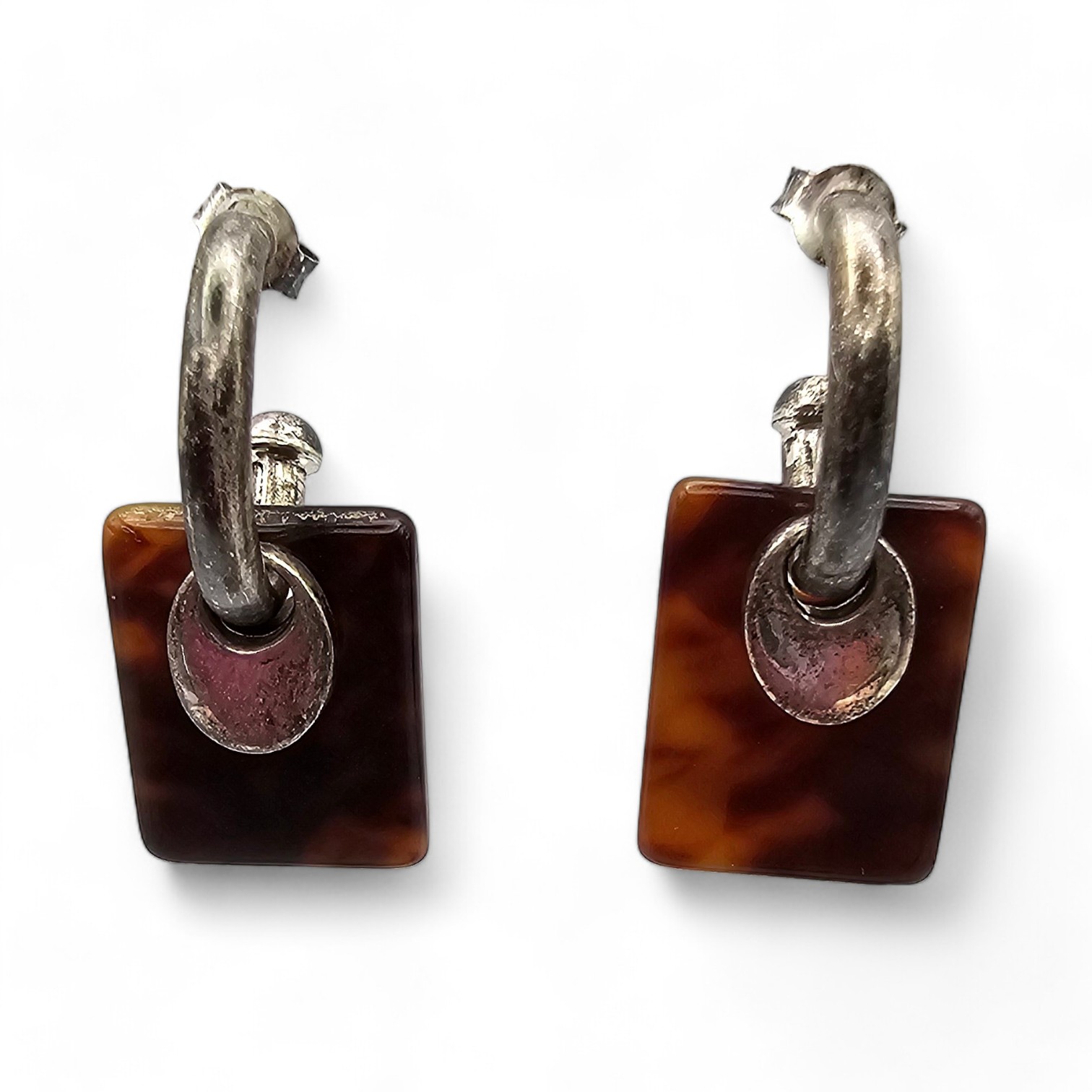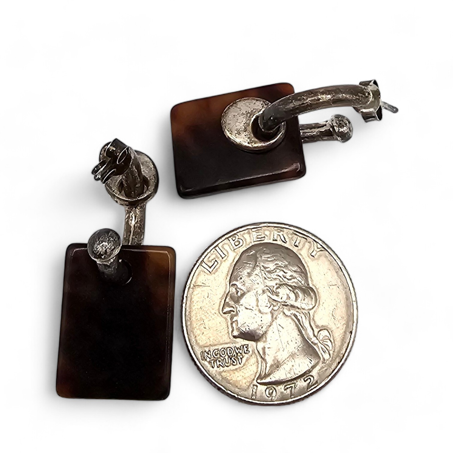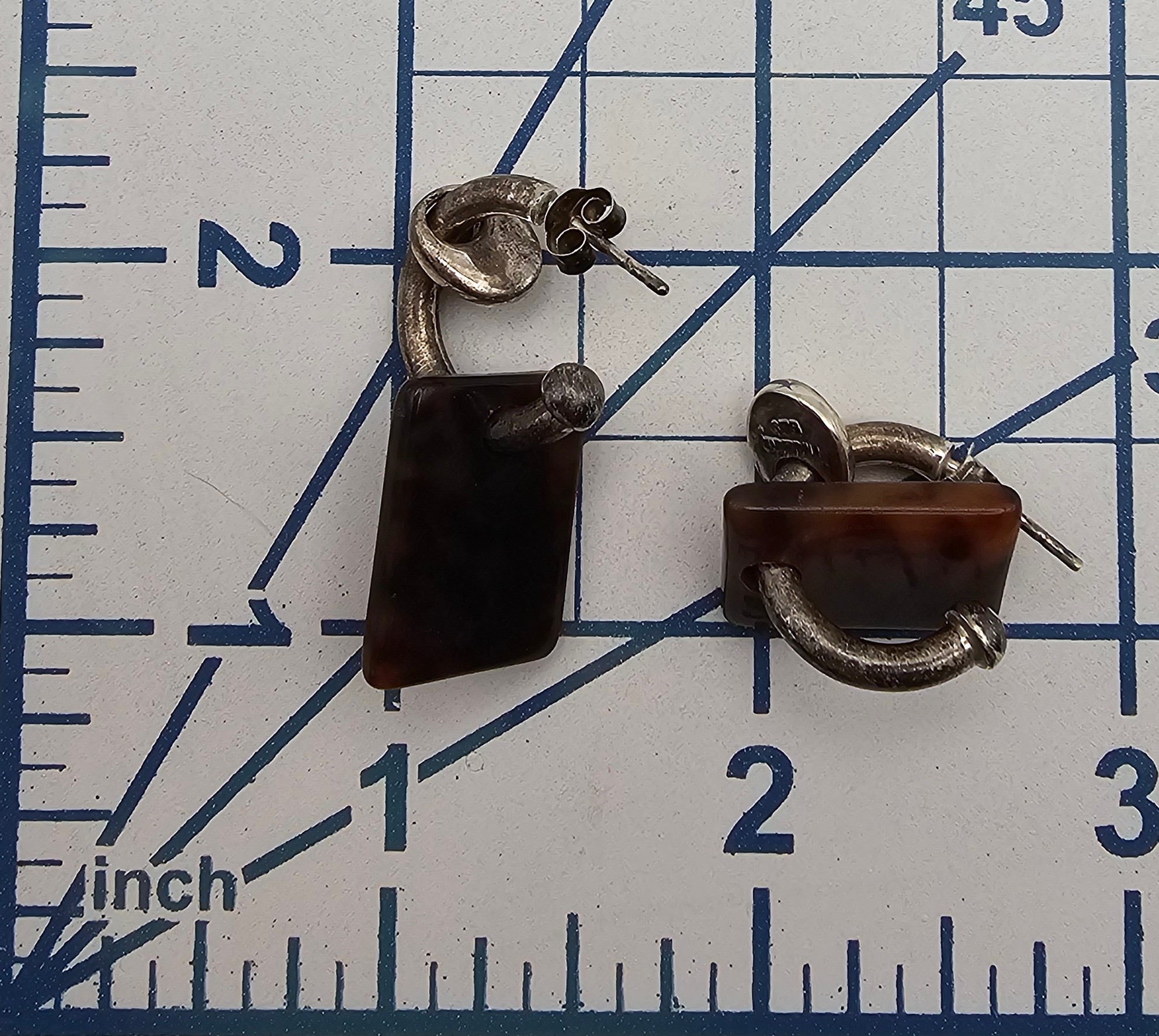 Faux Tortis Shell Sterling Silver Earrings 6.6 G
