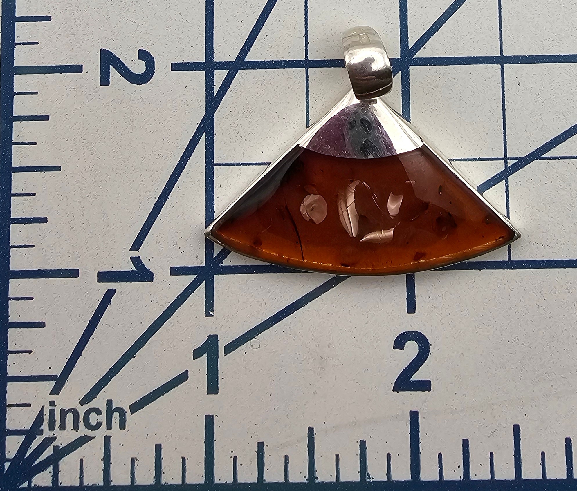New Great High Quality Poland Amber Sterling Silver Triangle Pendant 8.4 G