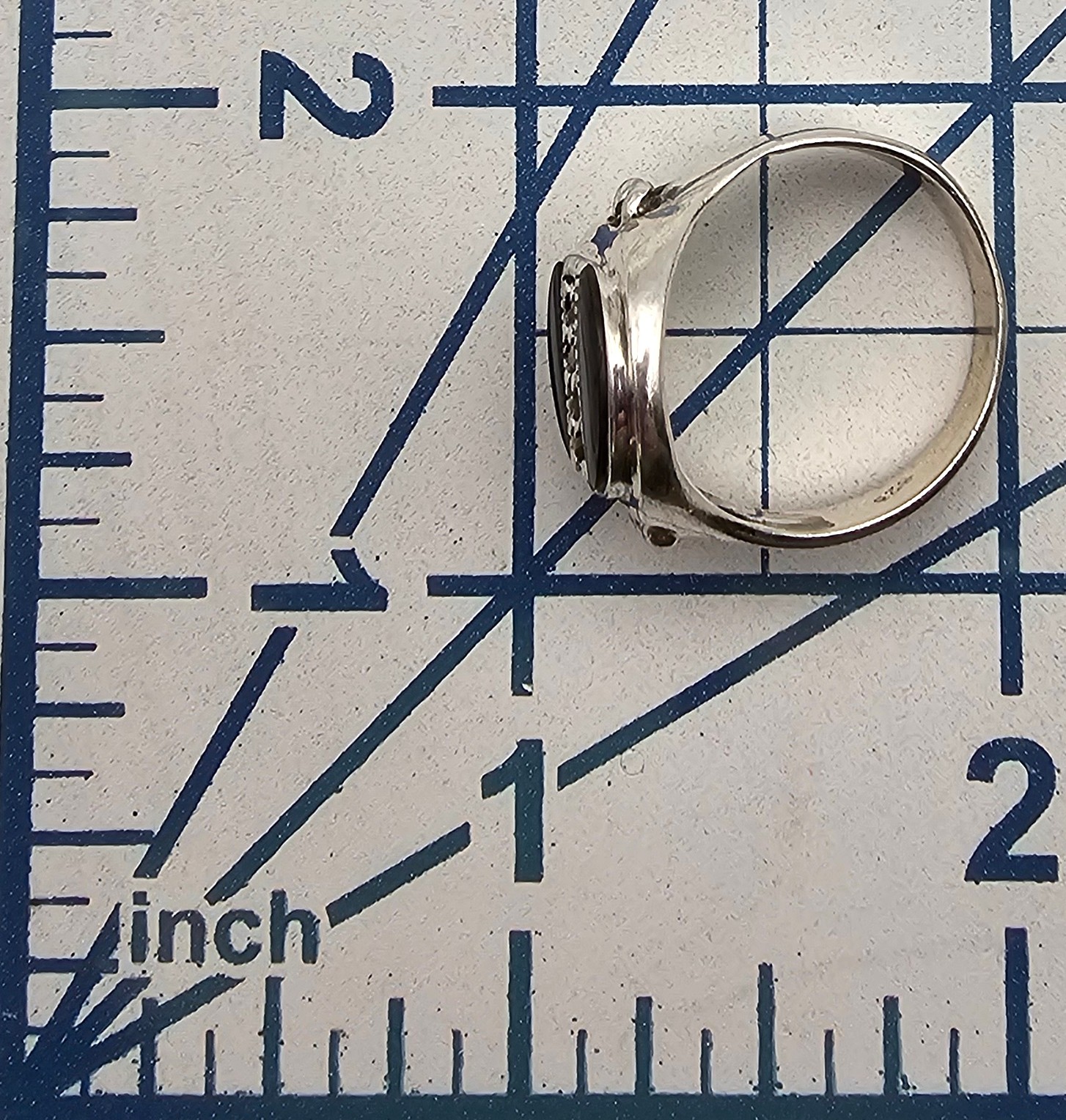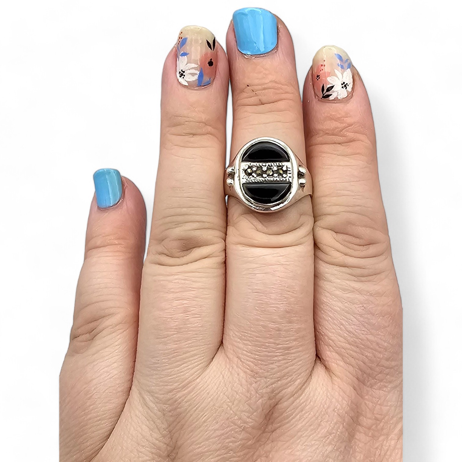 Onyx Marcasite Sterling Silver Ring Size 7.75 6.7 G