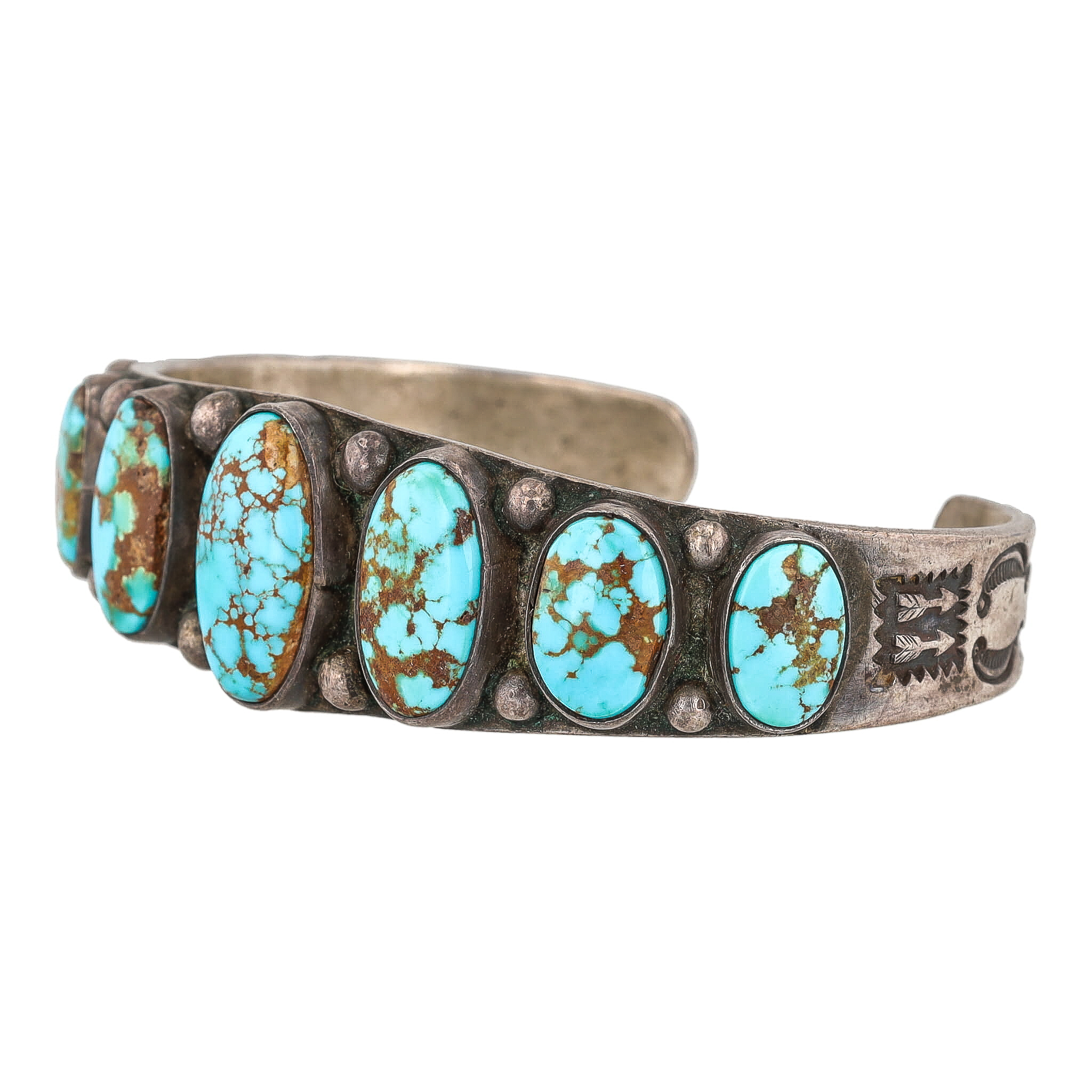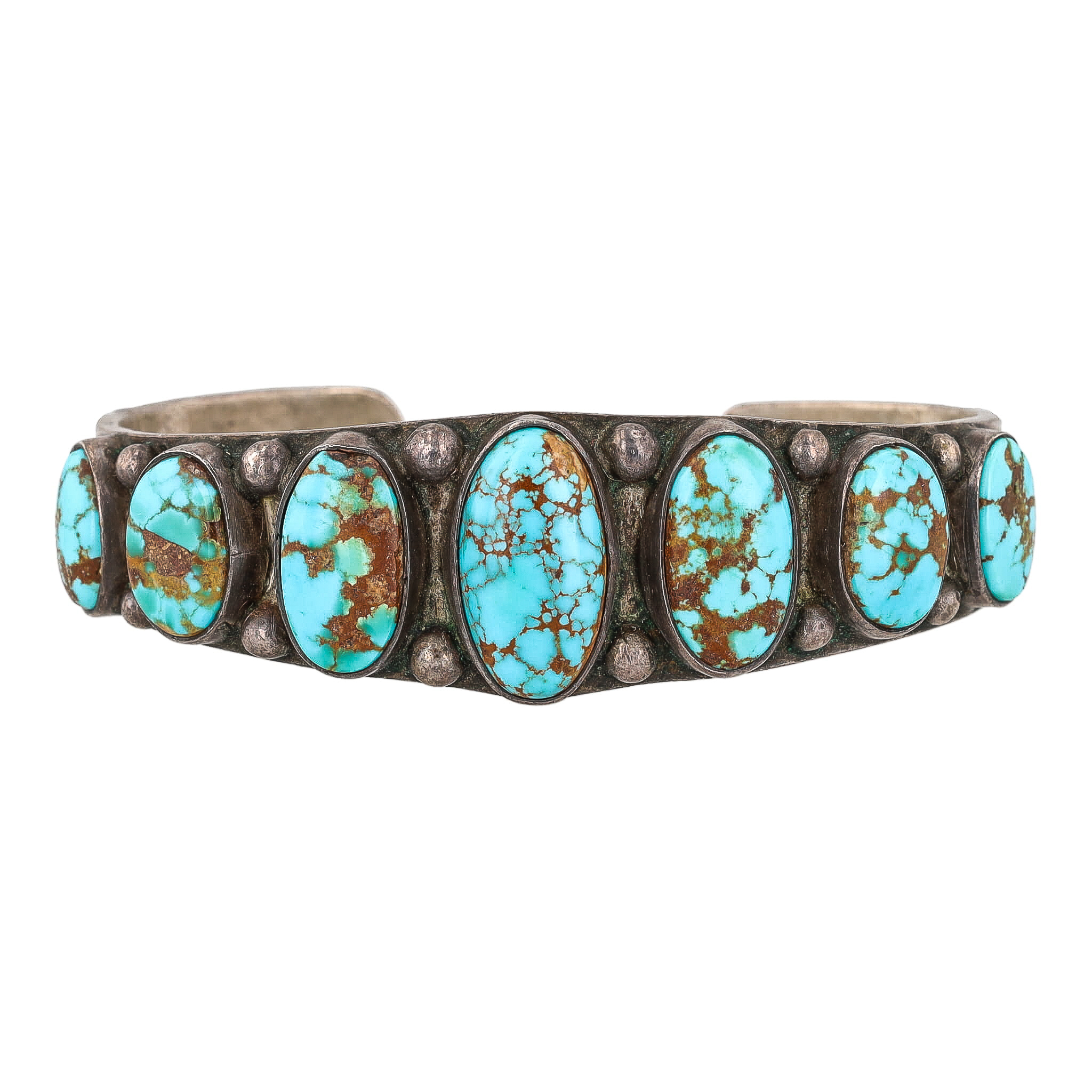 Vintage Navajo Red Mountain Turquoise Sterling Cuff Bracelet