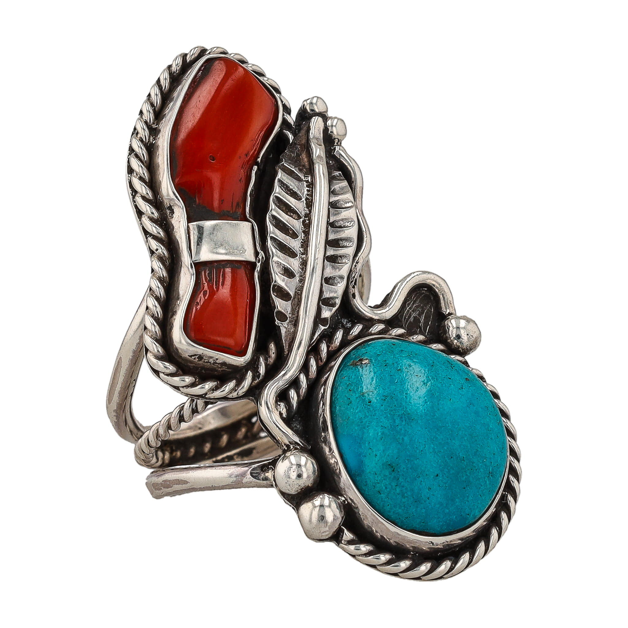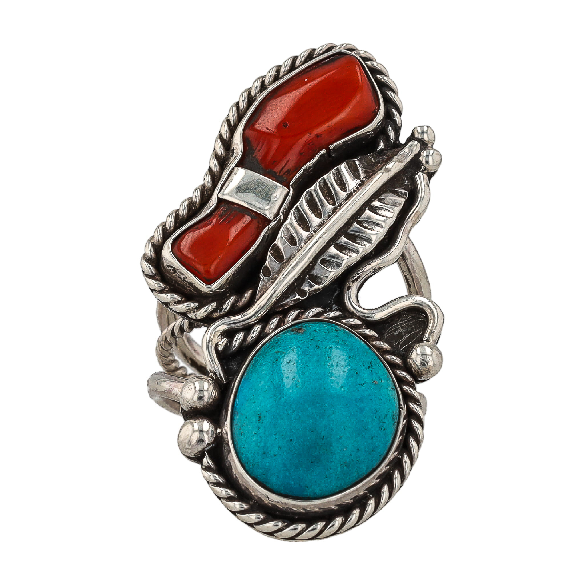 Navajo Turquoise Coral Sterling Ring Sz. 9.25, 18.5g