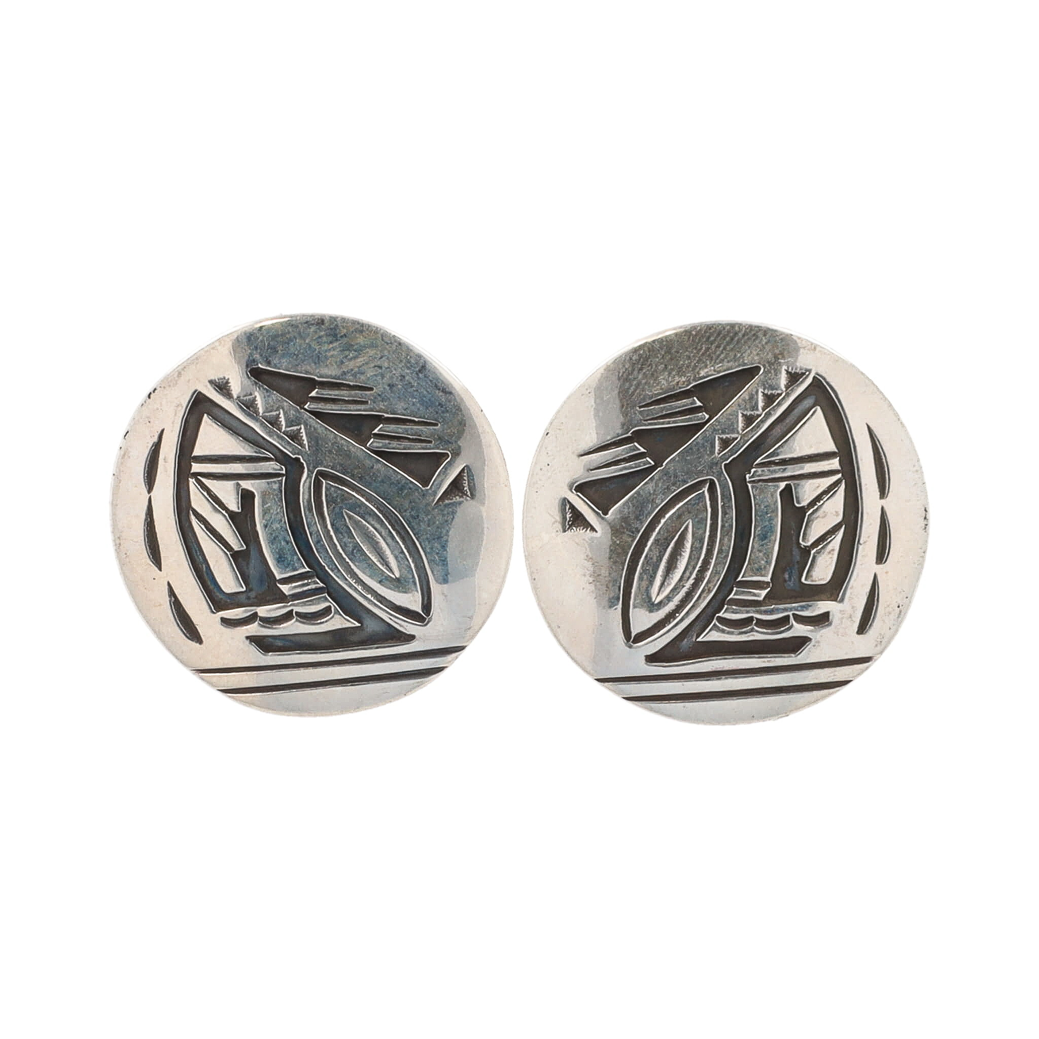 Hopi Sterling Overlay Disk Earrings 8.5g