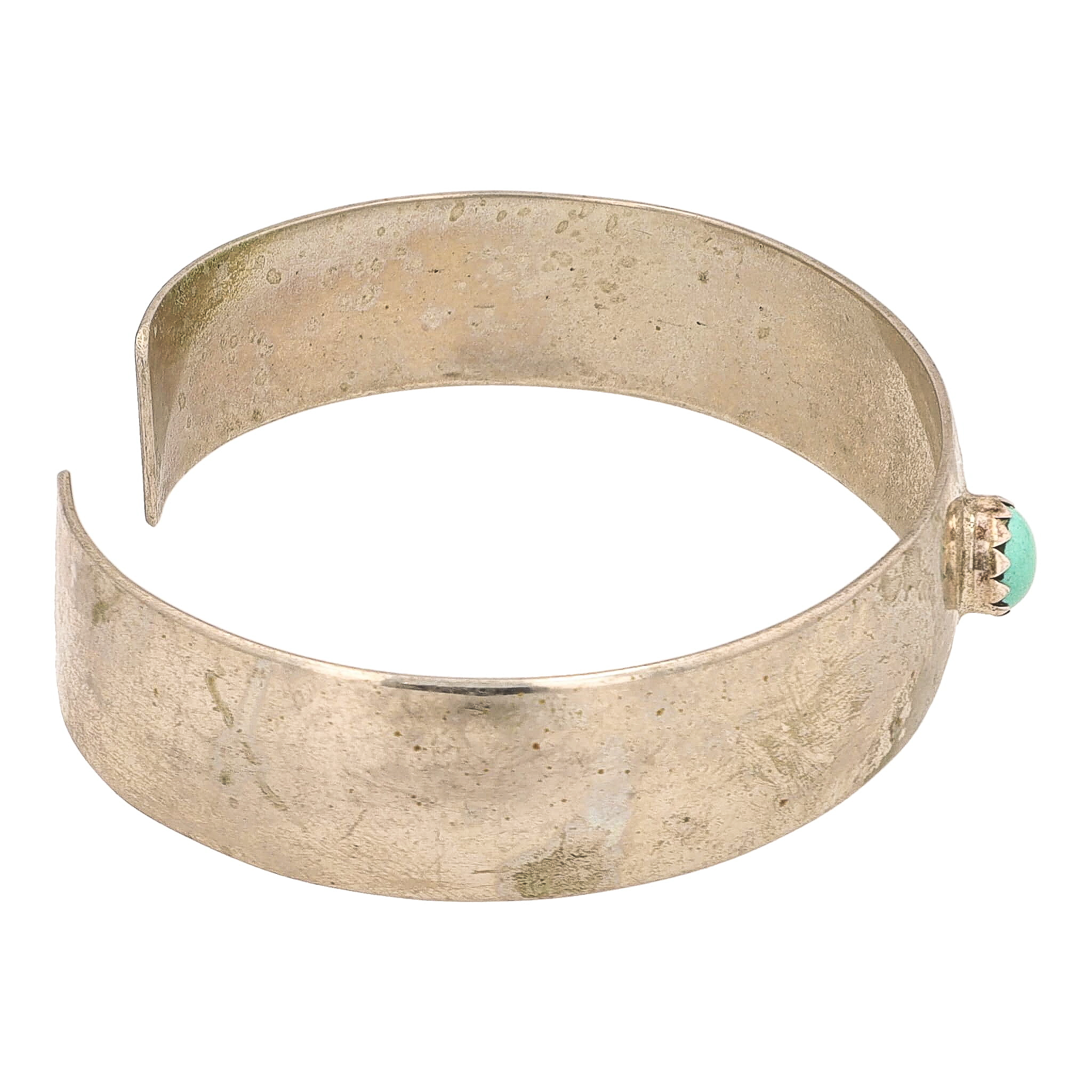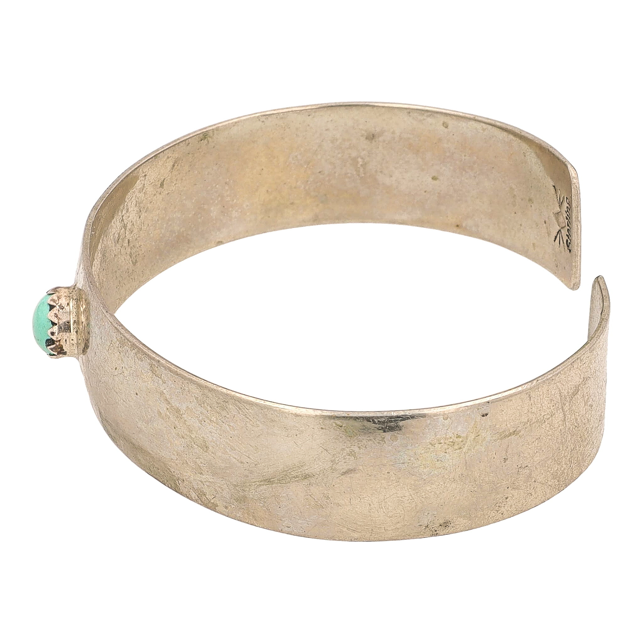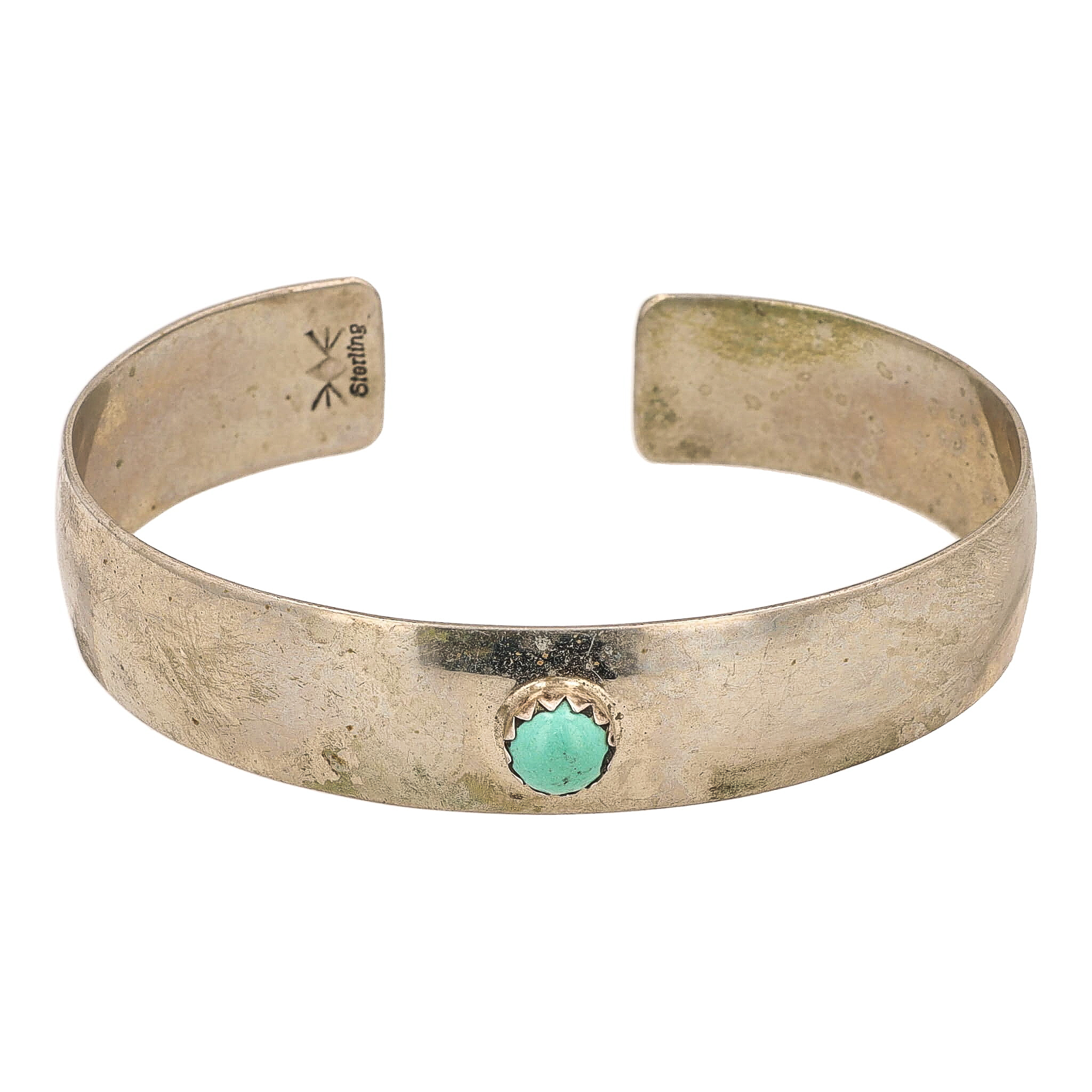 Signed Navajo Turquoise Sterling Cuff Bracelet 14g-Pictogram Signature Stamp