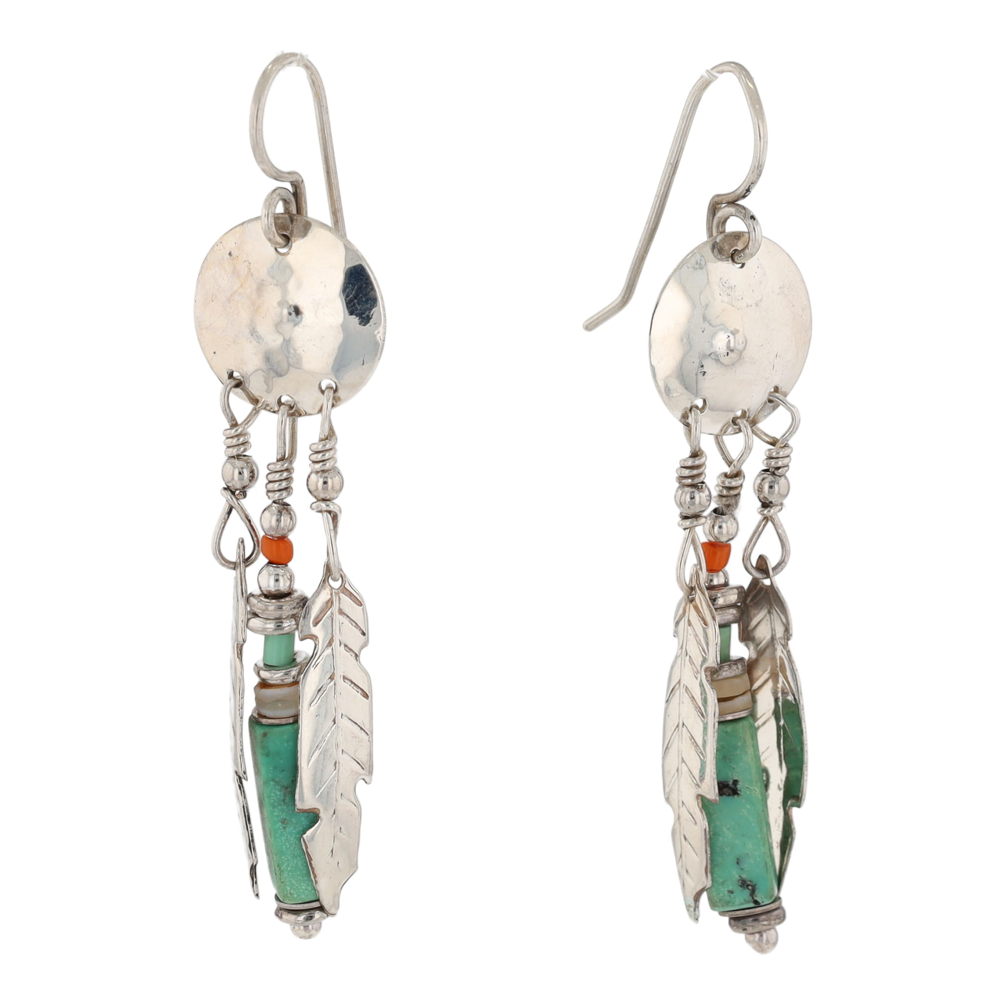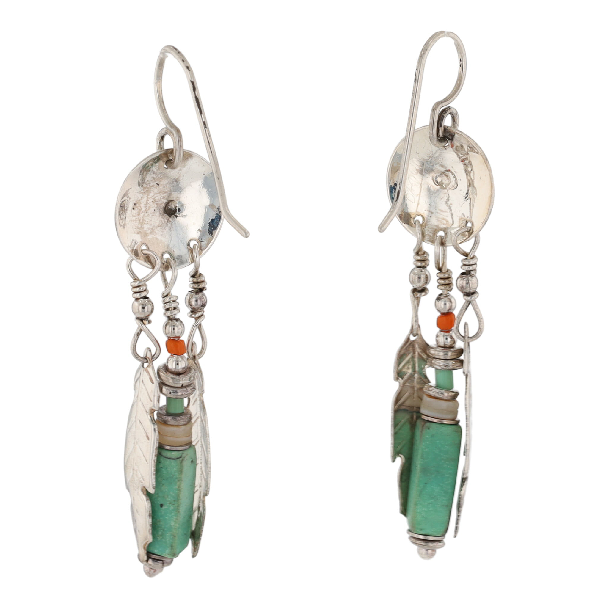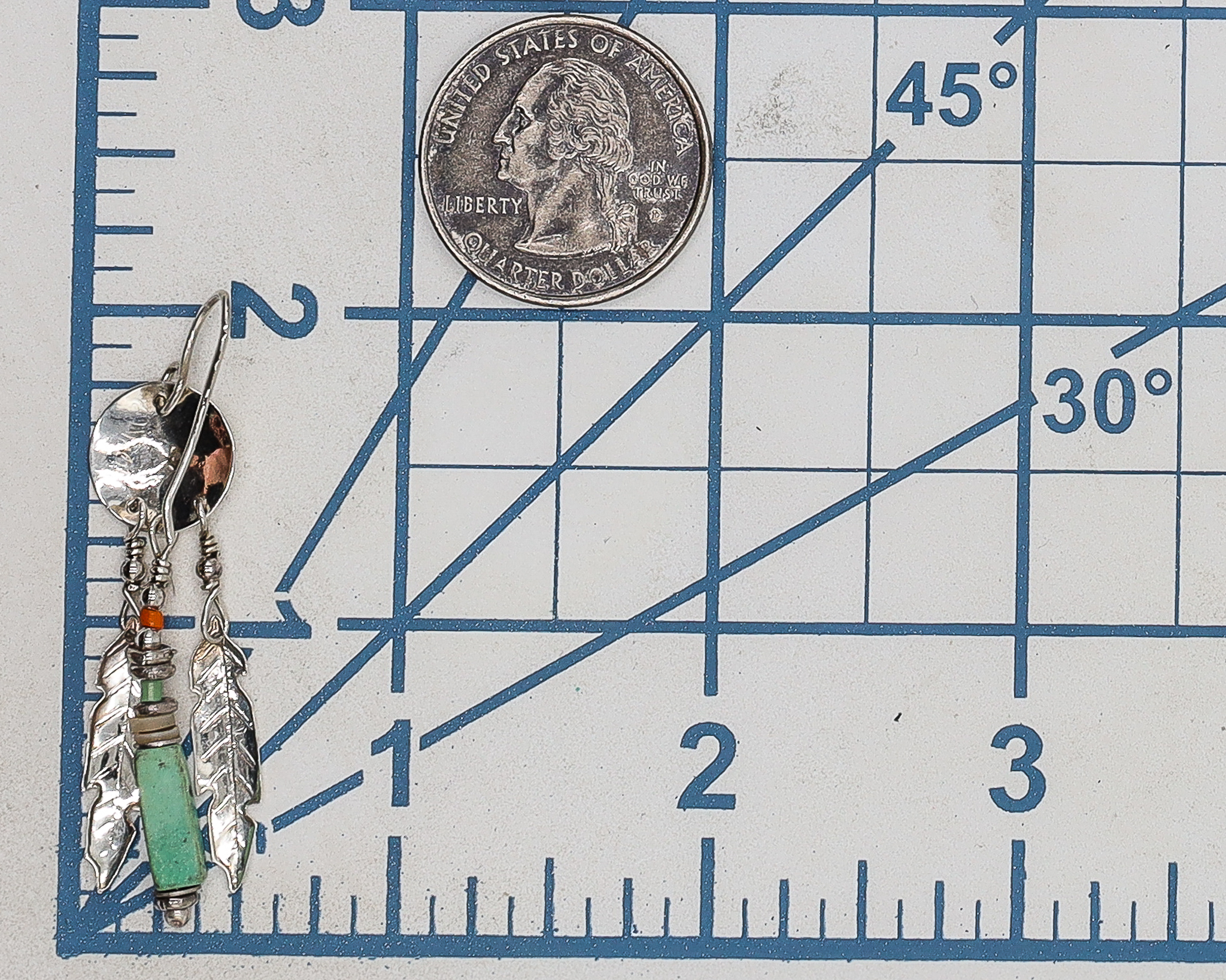 Vintage Navajo Turquoise Sterling Feather Beaded Dangle Earrings 5g