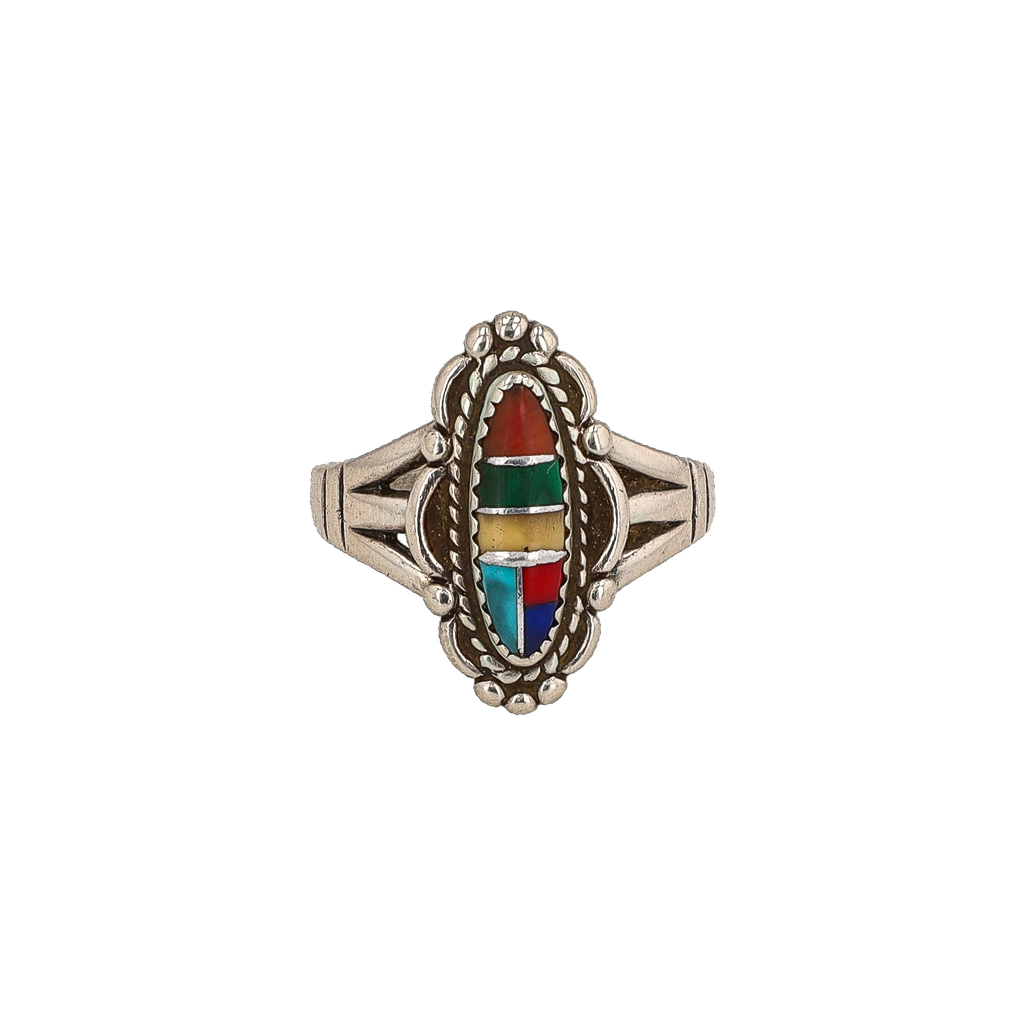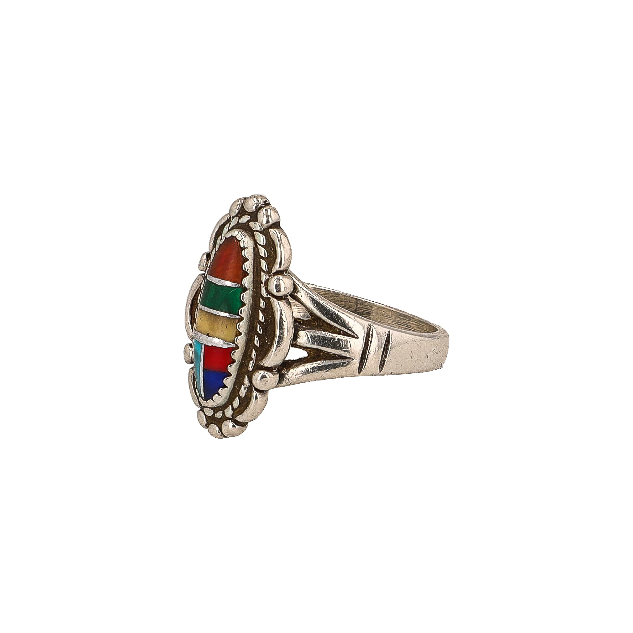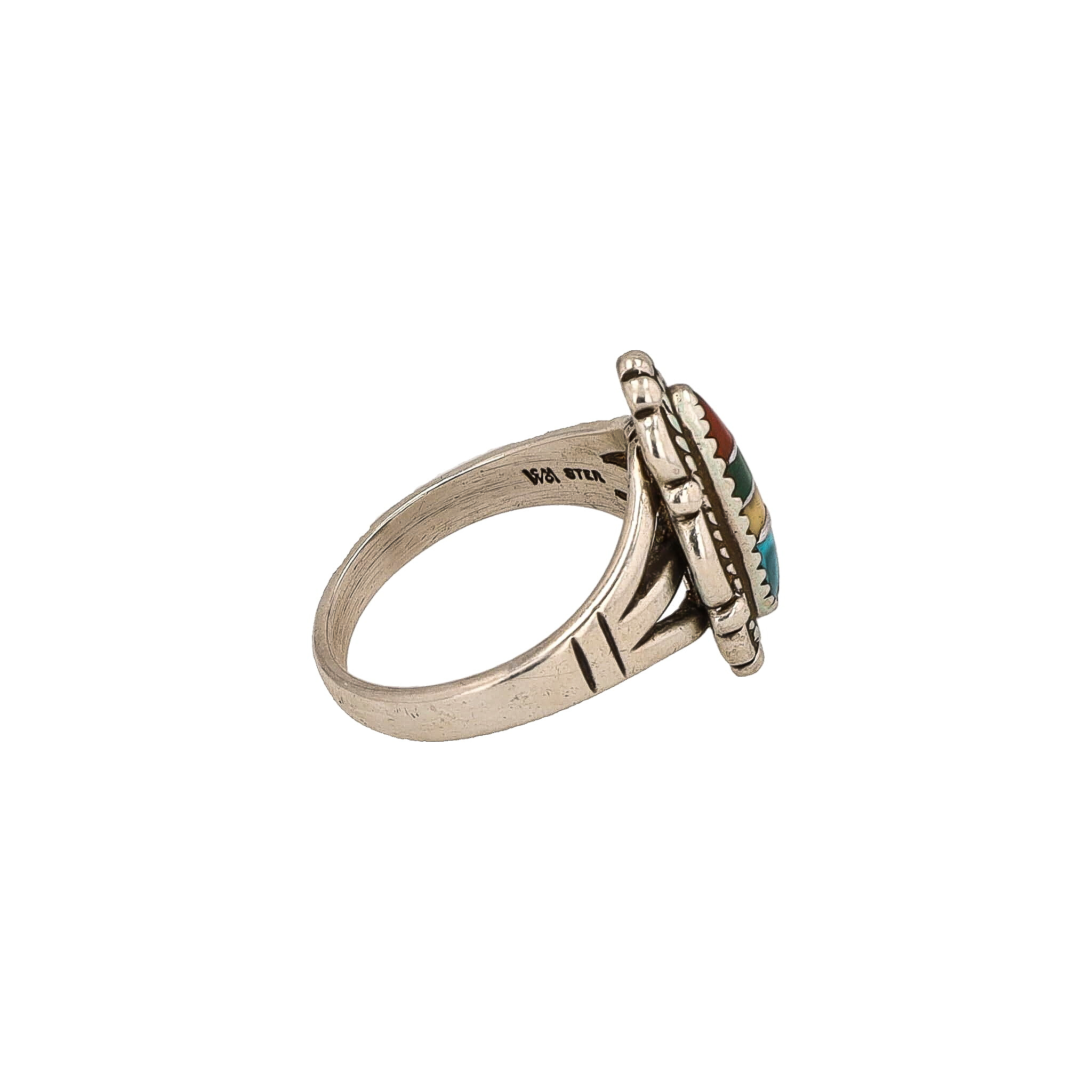 Wheeling Manufacturing Co. Multi Stone Sterling Inlay Ring Sz. 7.75, 6g-Lapis, Coral, Malachite, Mother of Pearl, Turquoise