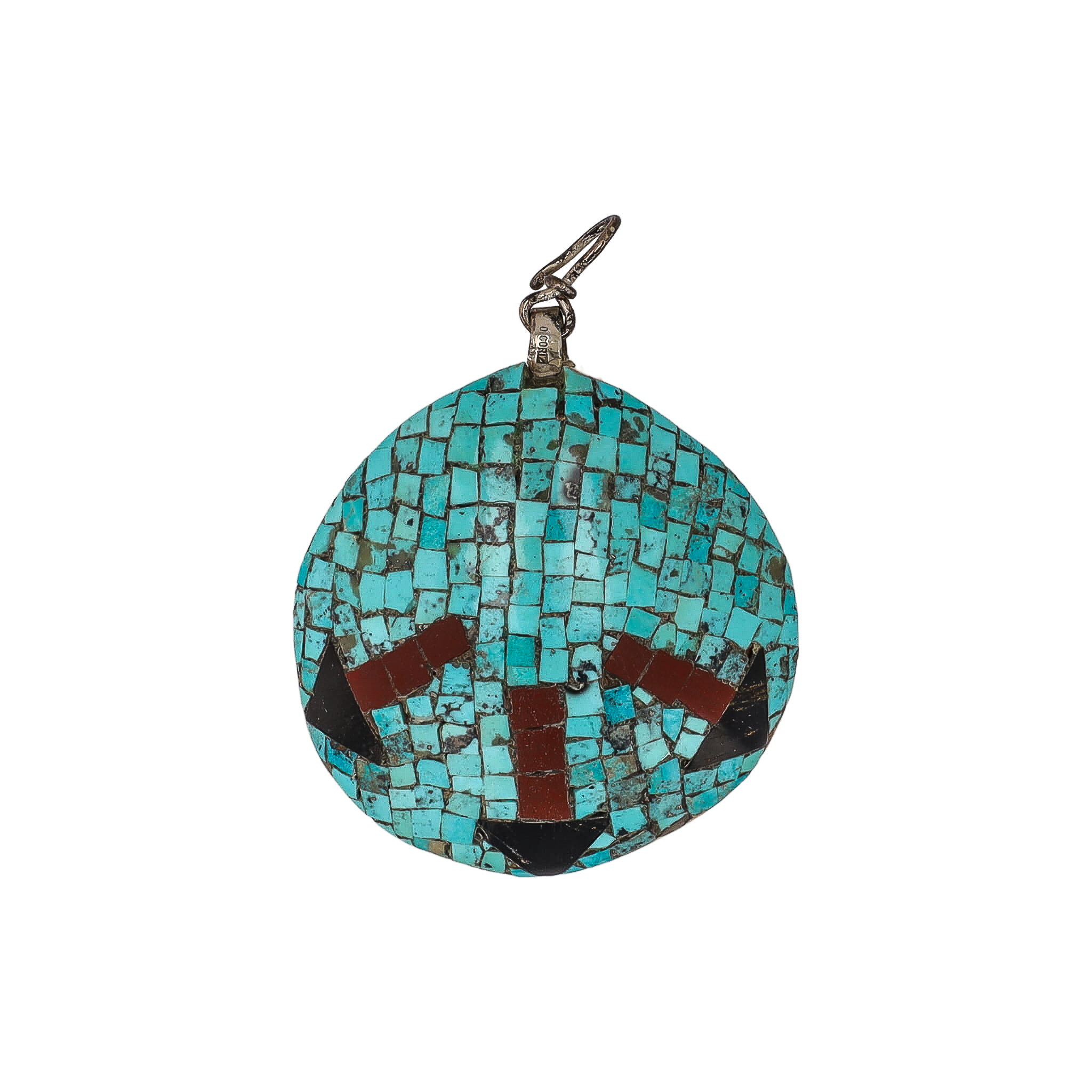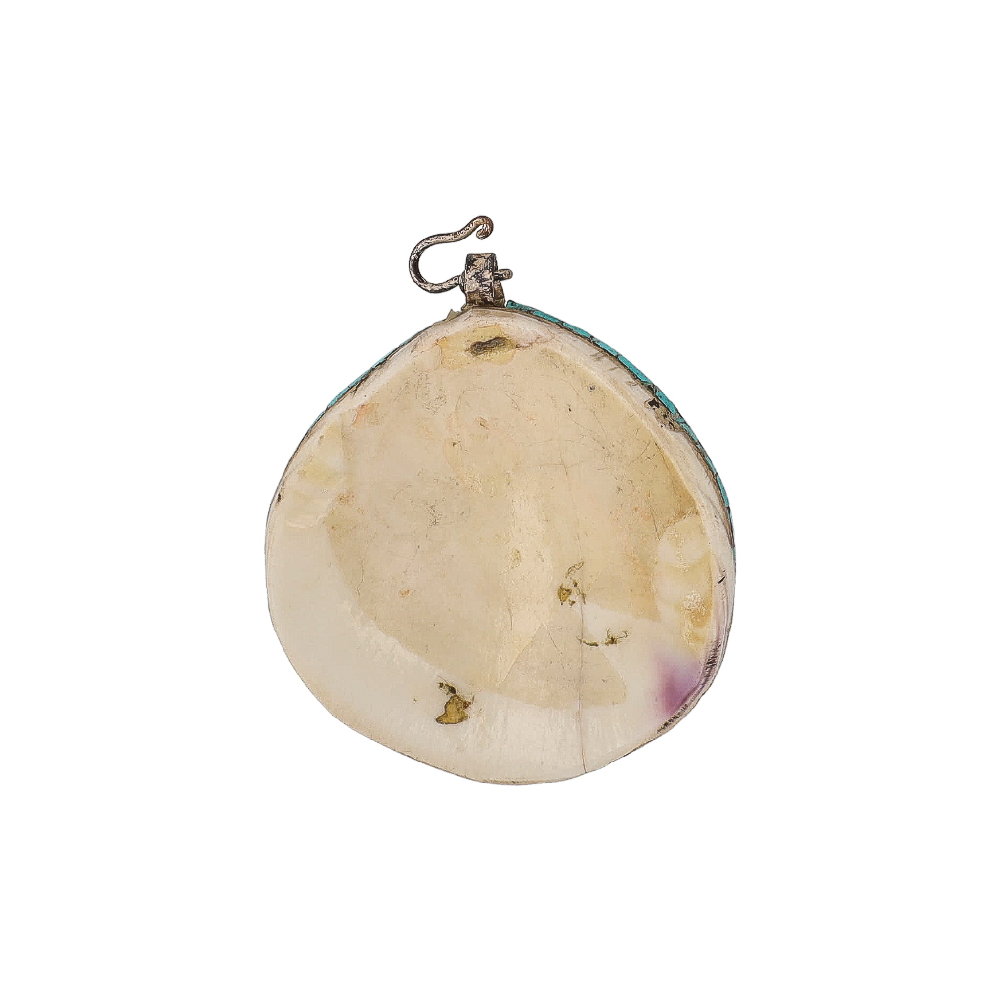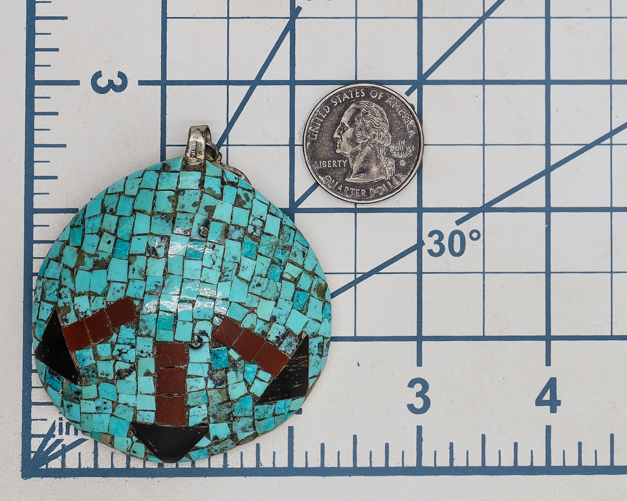 Vintage Santo Domingo Turquoise Jet Agate Mosaic on Shell Pendant 41g
