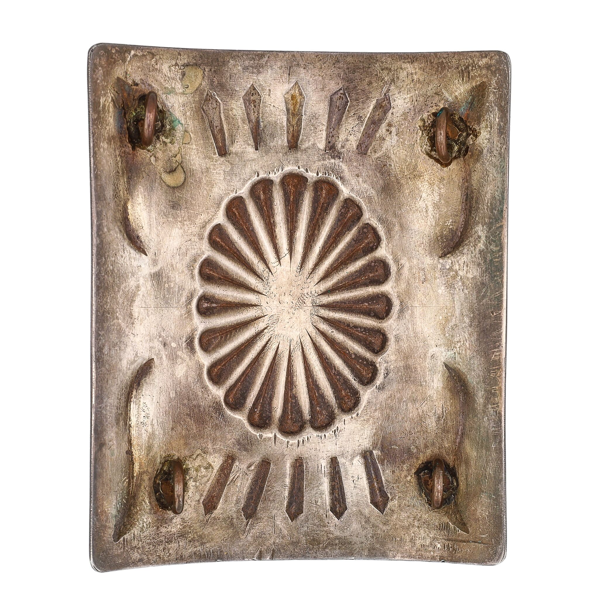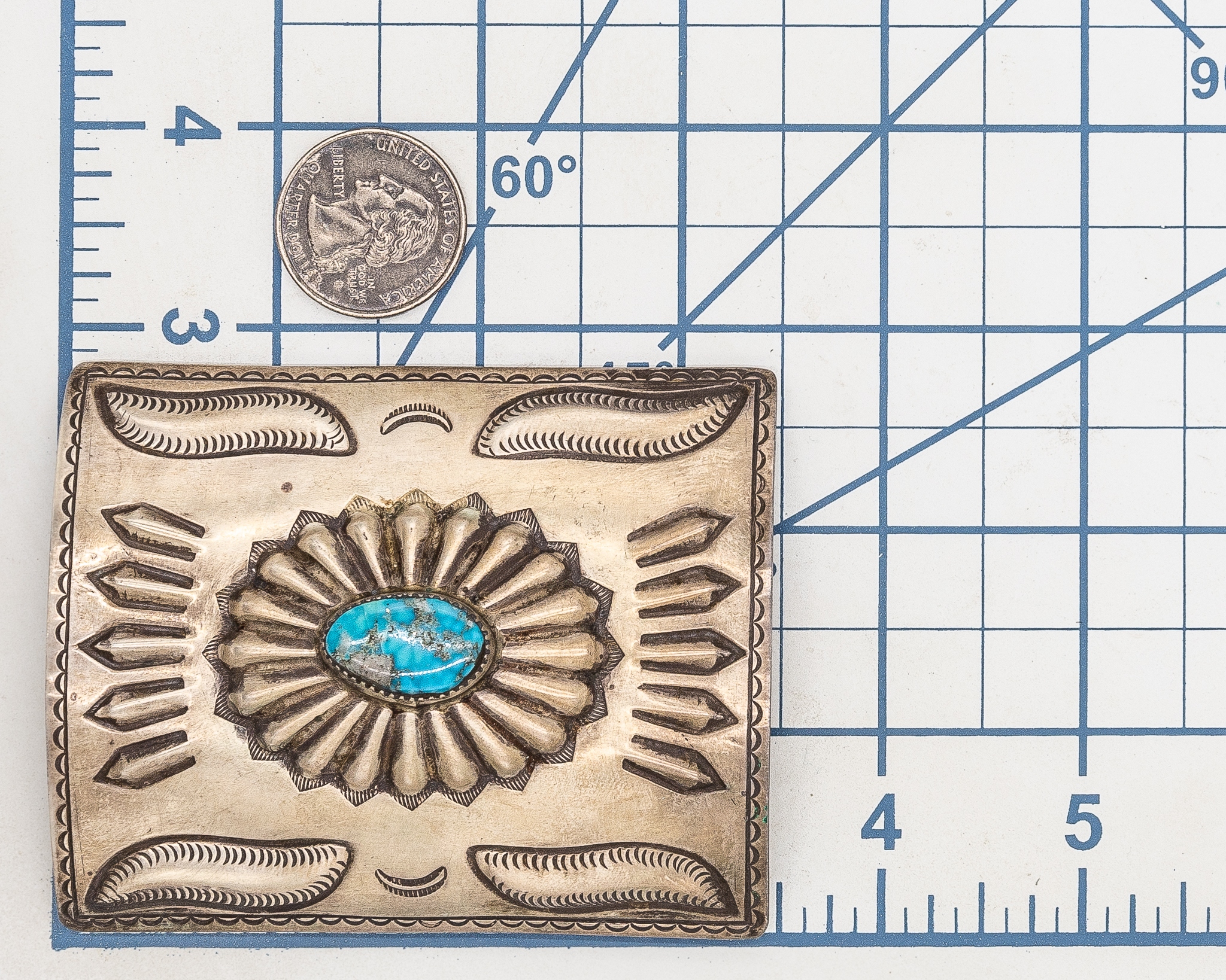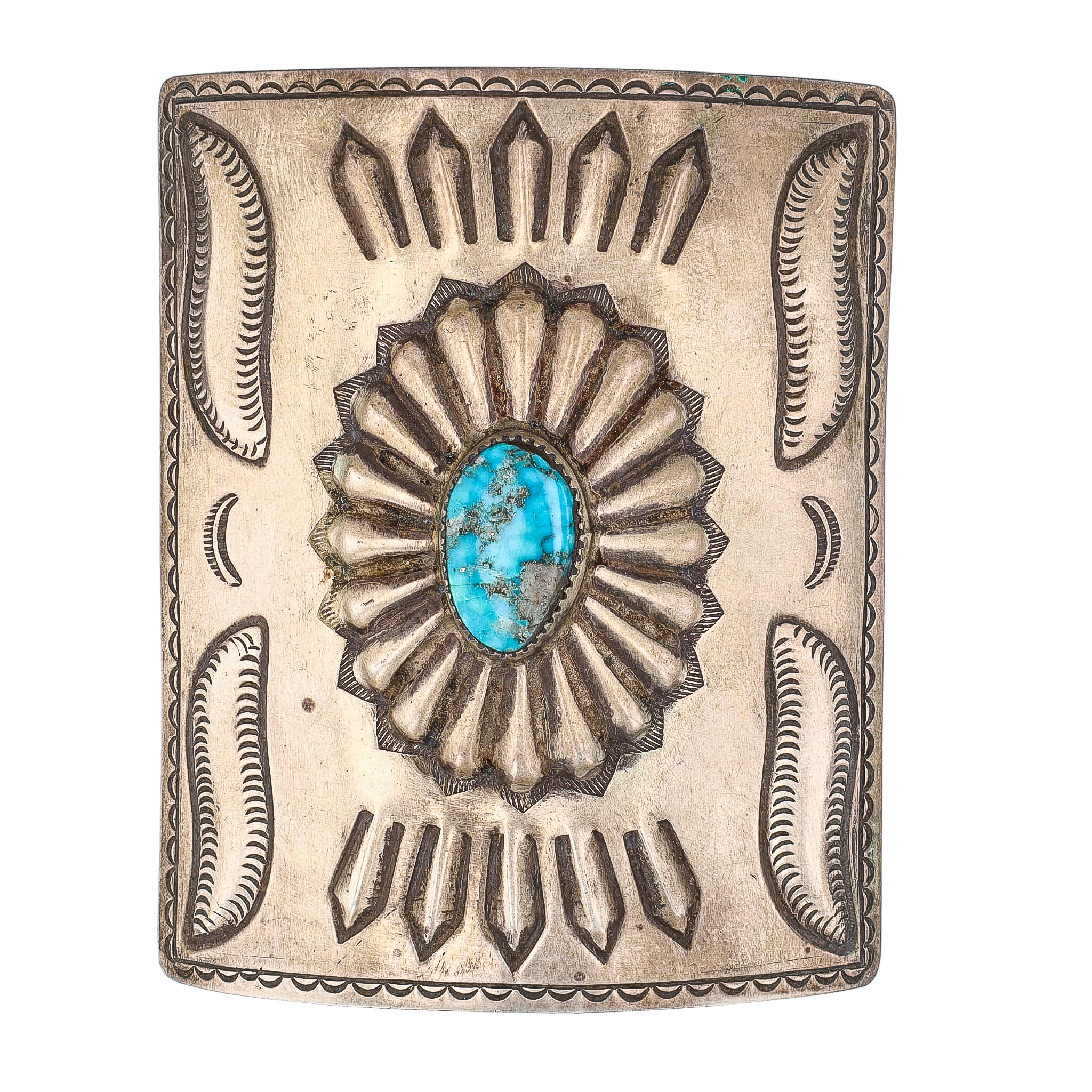 Vintage Navajo Large Turquoise Sterling Stamped Bow Guard 74g