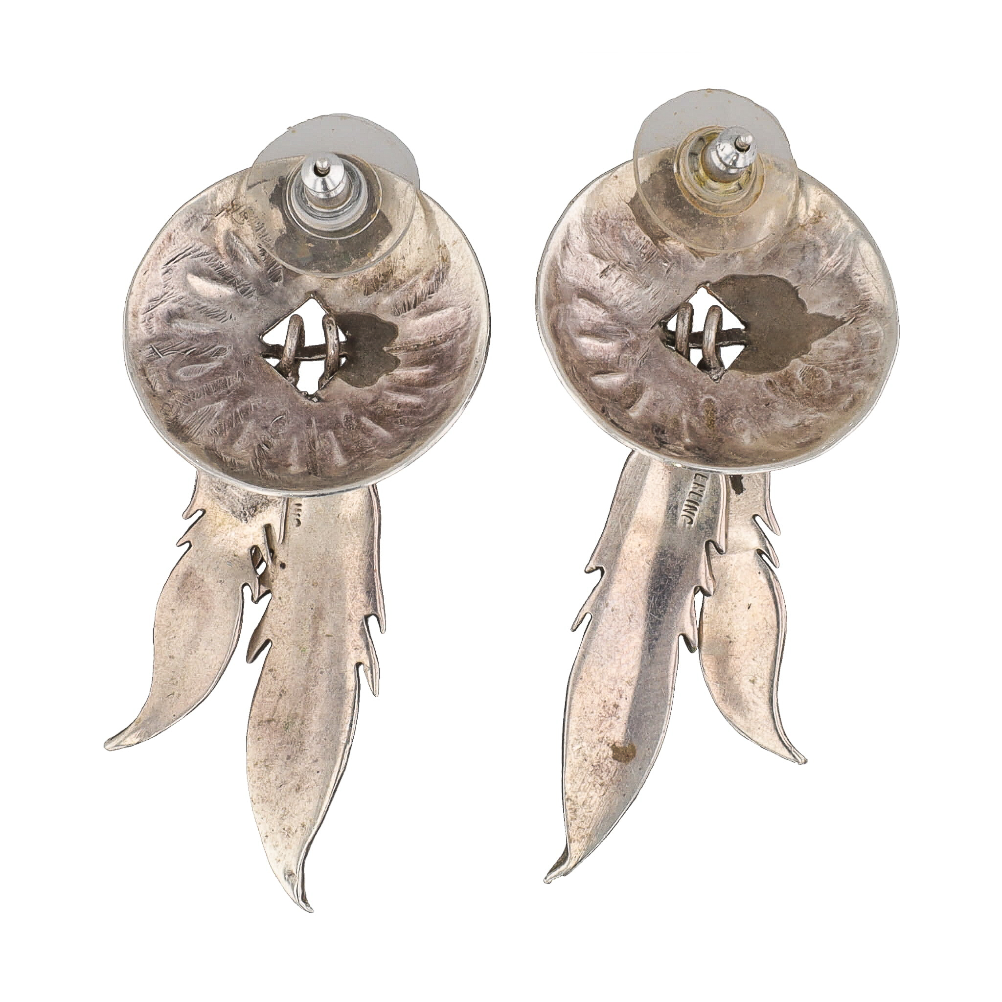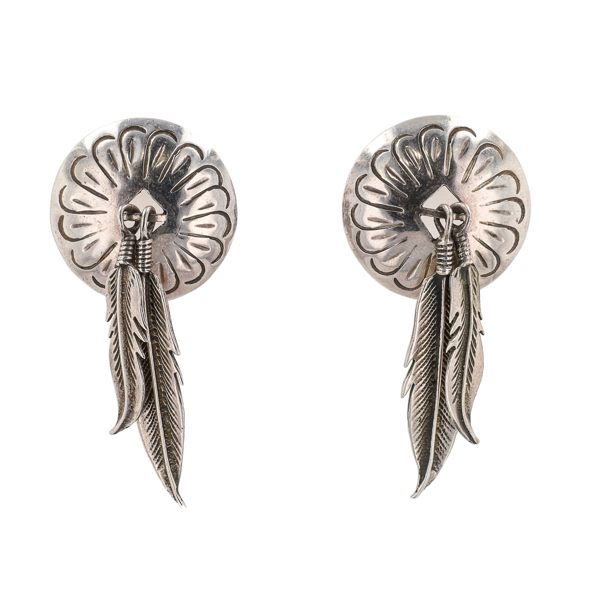 Vintage Navajo Sterling Feather Drop Dangle Earrings 11g