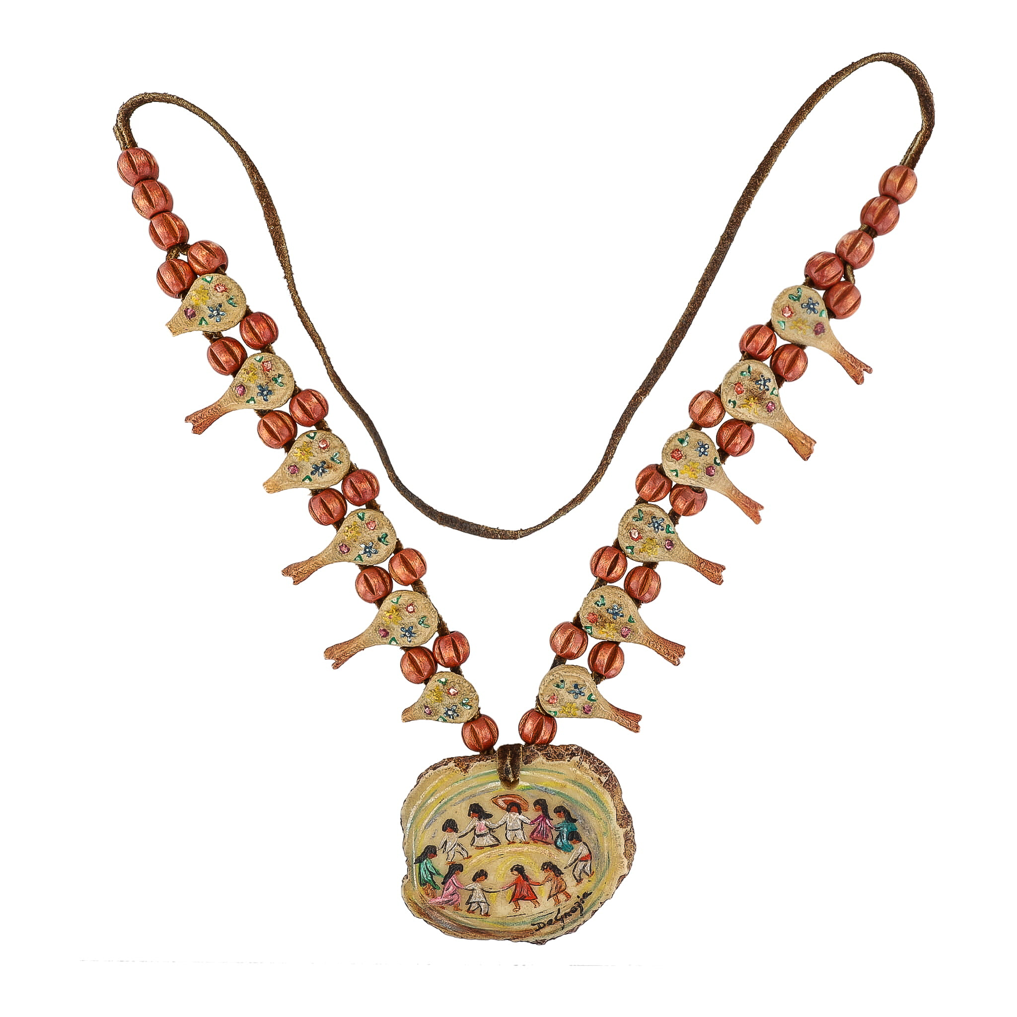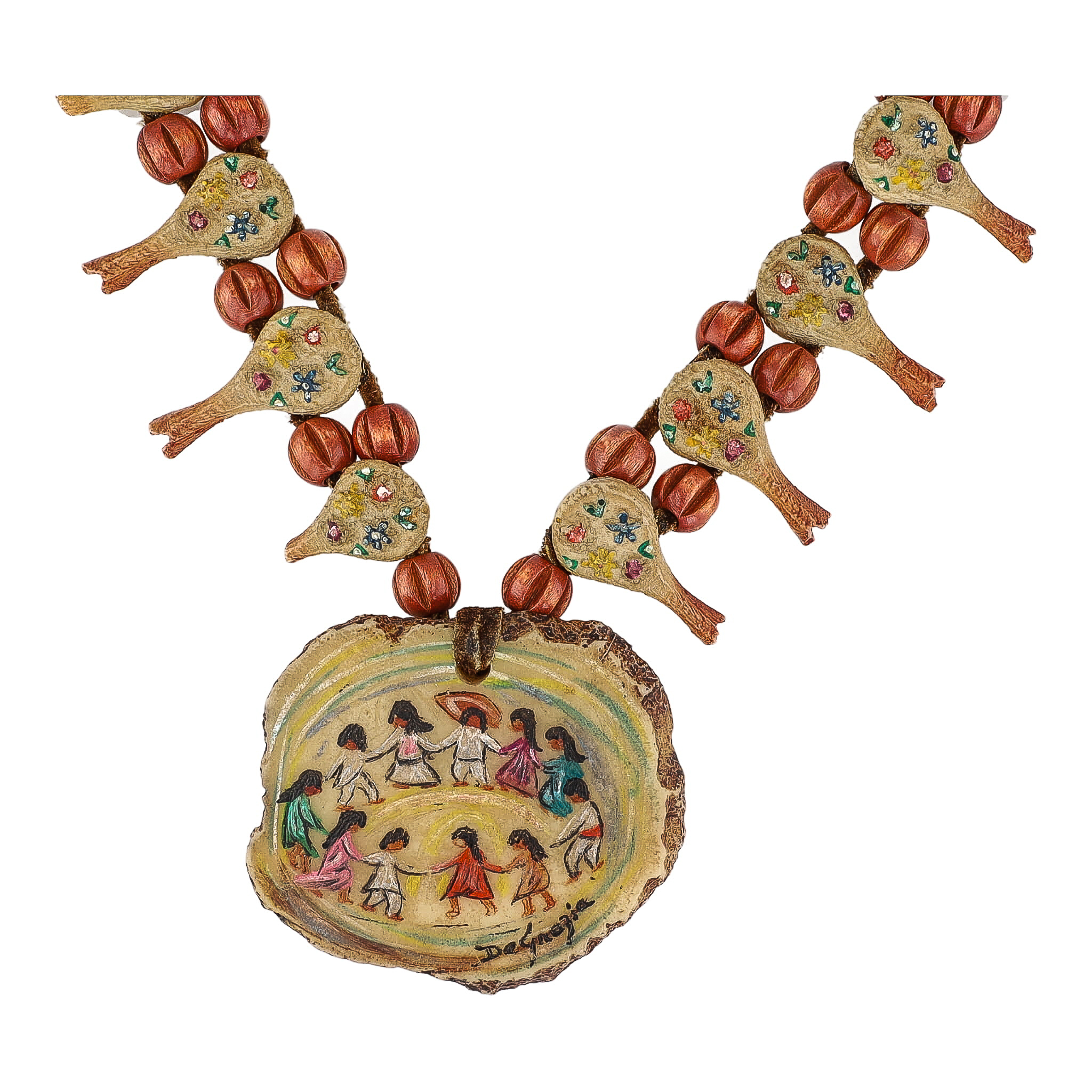 Ted DeGrazia 1970s Los Ninos Wood Carved Painted Squash Blossom Necklace As Is- broken blossoms, as shown in pictures