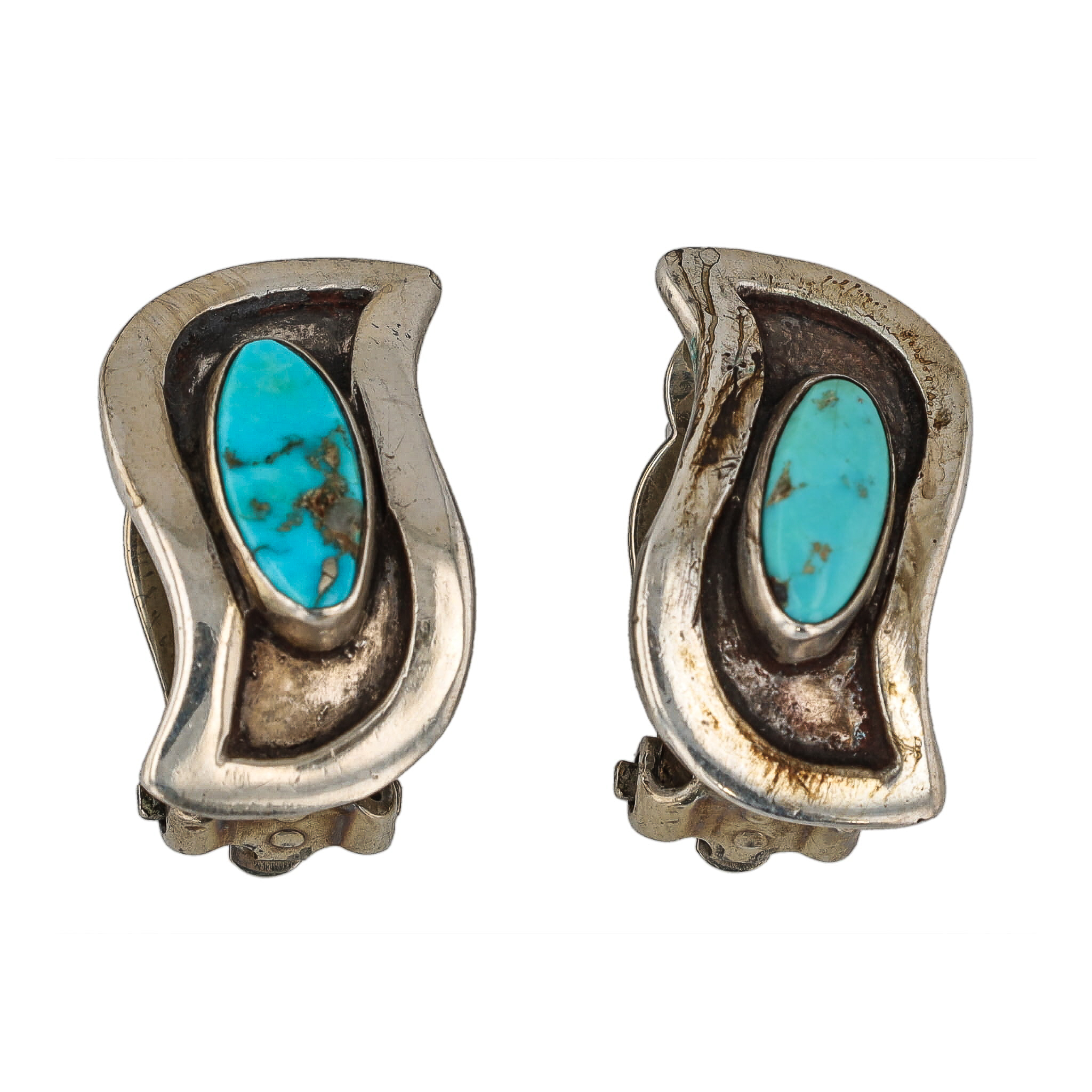 Vintage Navajo Turquoise Sterling Shadow Box Earrings 9g