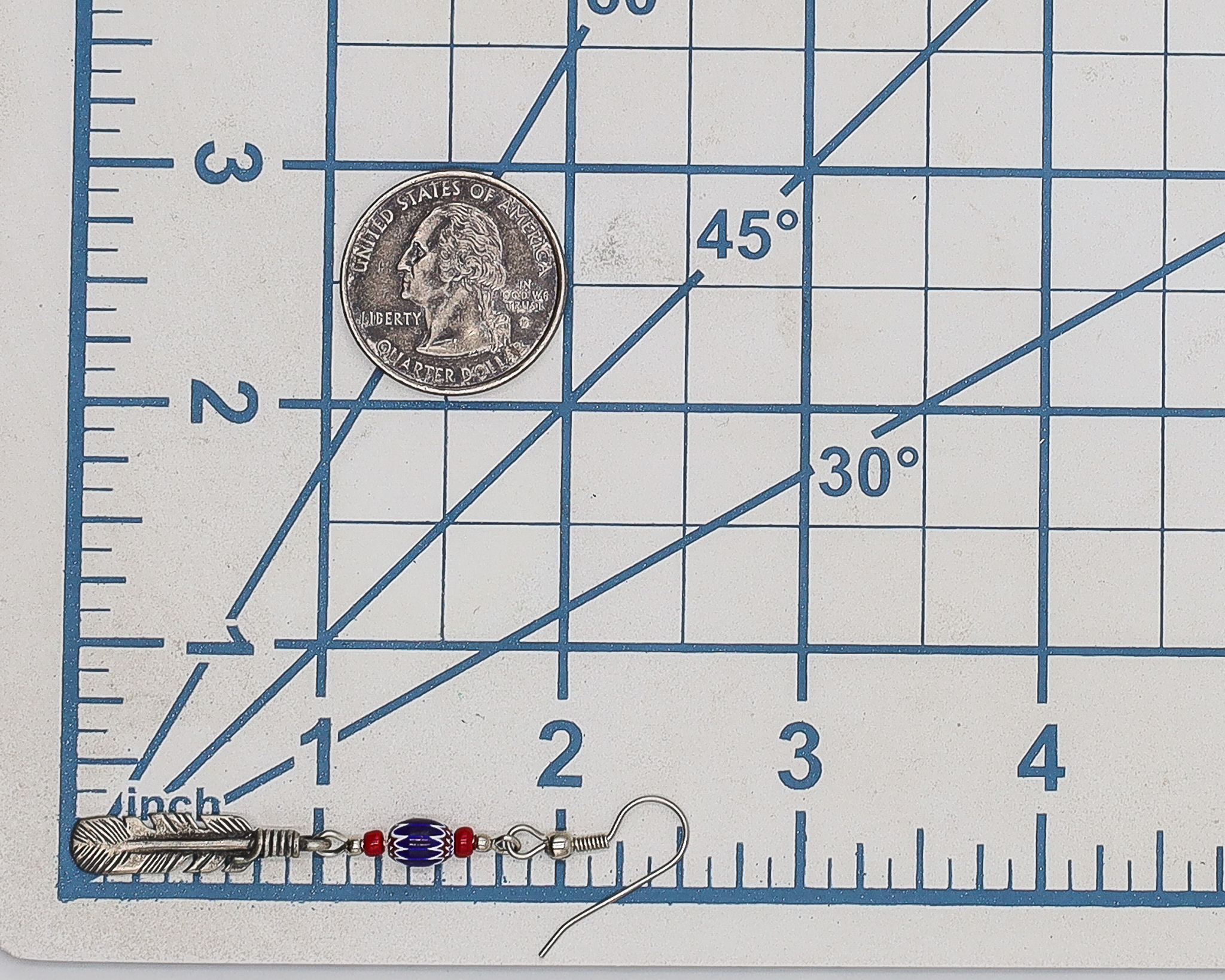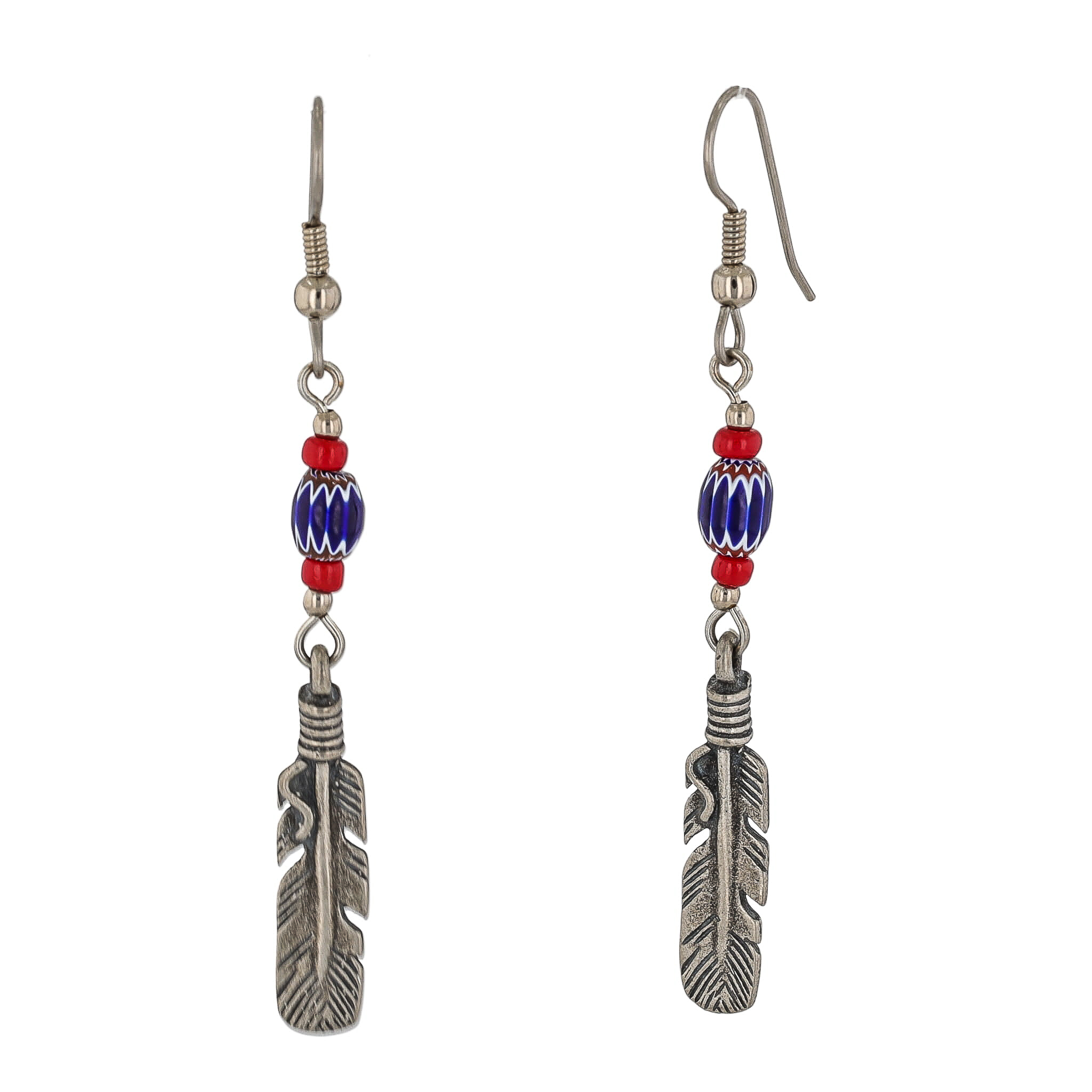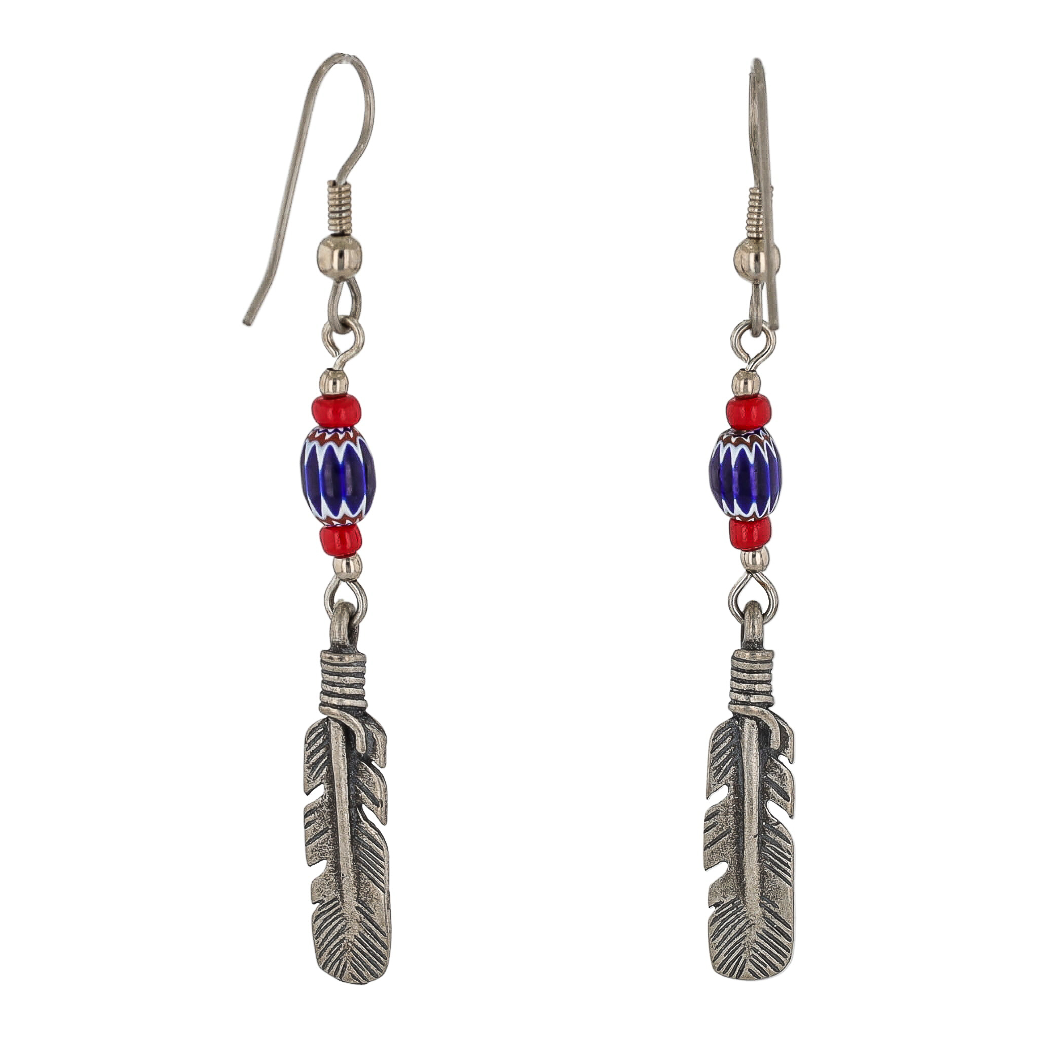 Vintage Navajo Sterling Feather Chevron Beaded Earrings 4g