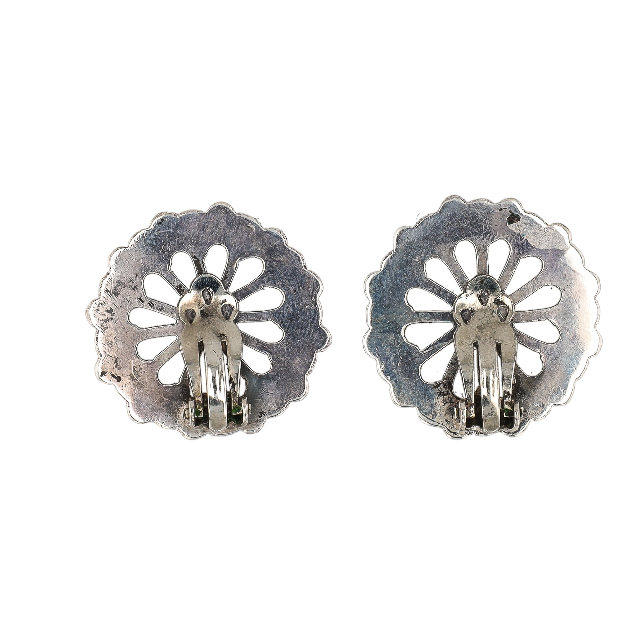 Vintage Zuni Turquoise Sterling Cluster Earrings