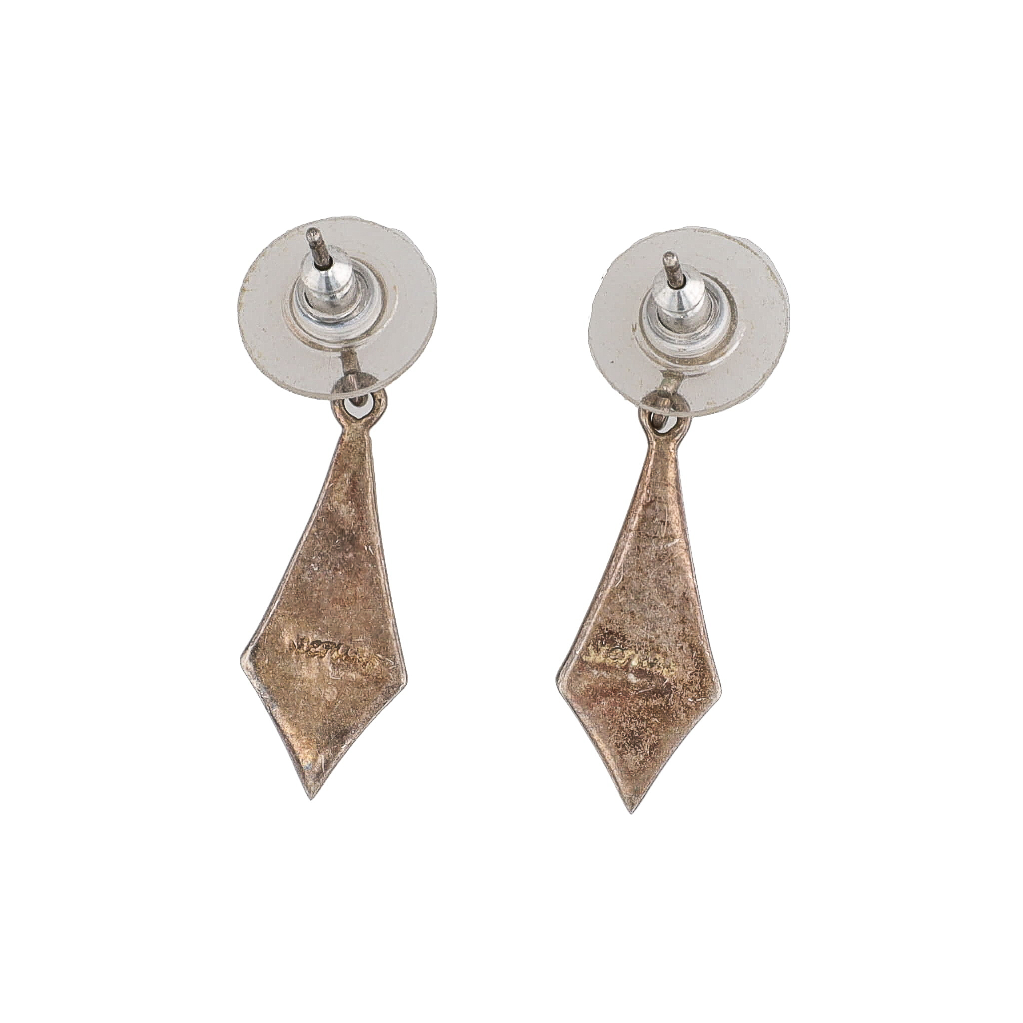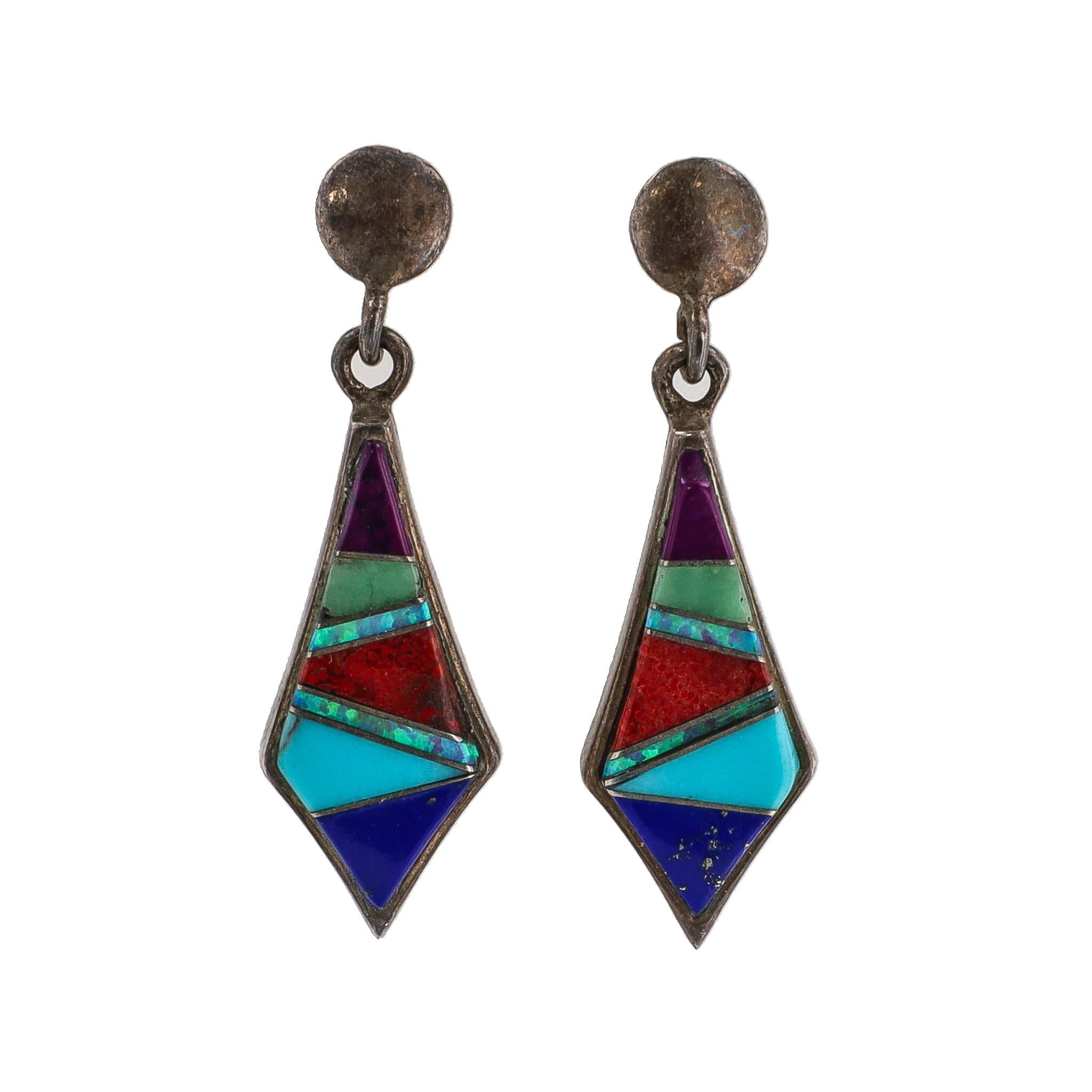 Vintage Zuni Multi Stone Sterling Dangle Earrings 4.5g-Lapis, Coral, Turquoise, Opal, Charoite