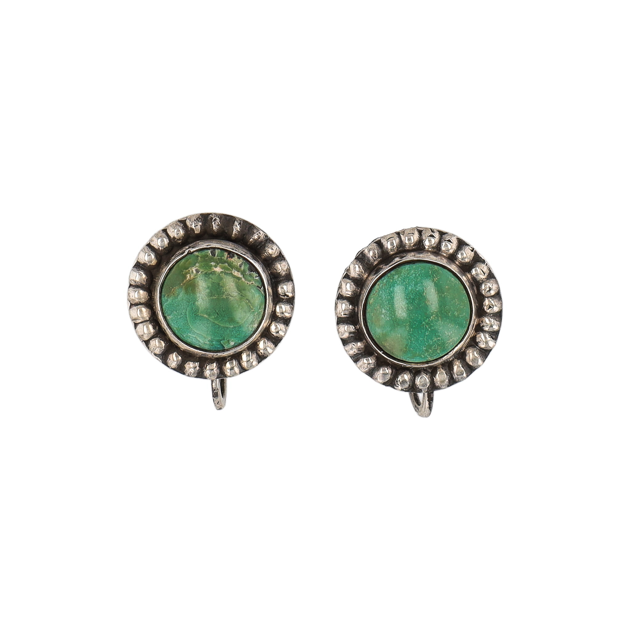 Vintage Navajo Turquoise Sterling Round Earrings 4g