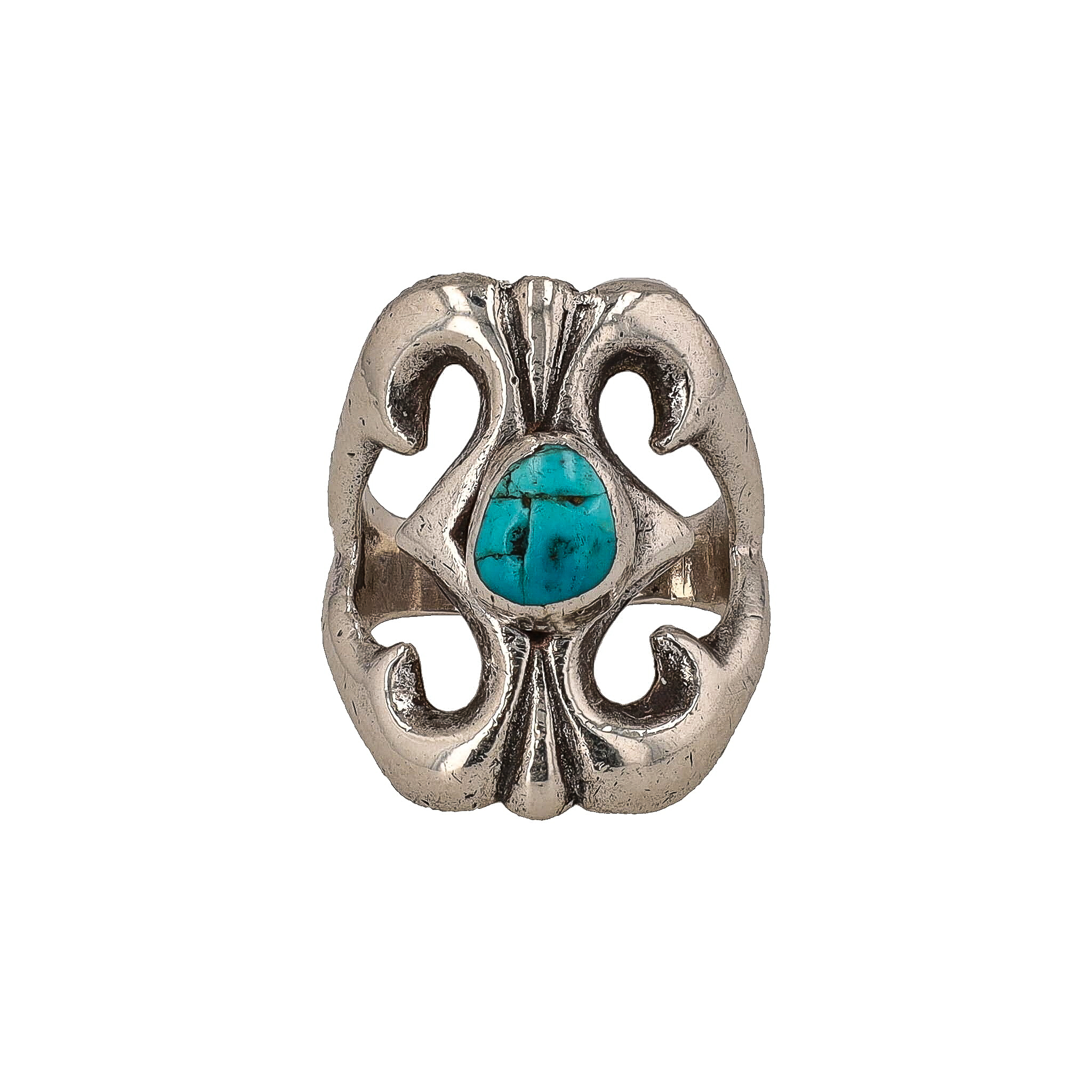 Vintage Navajo Turquoise Sterling Ring Sz. 8, 13g