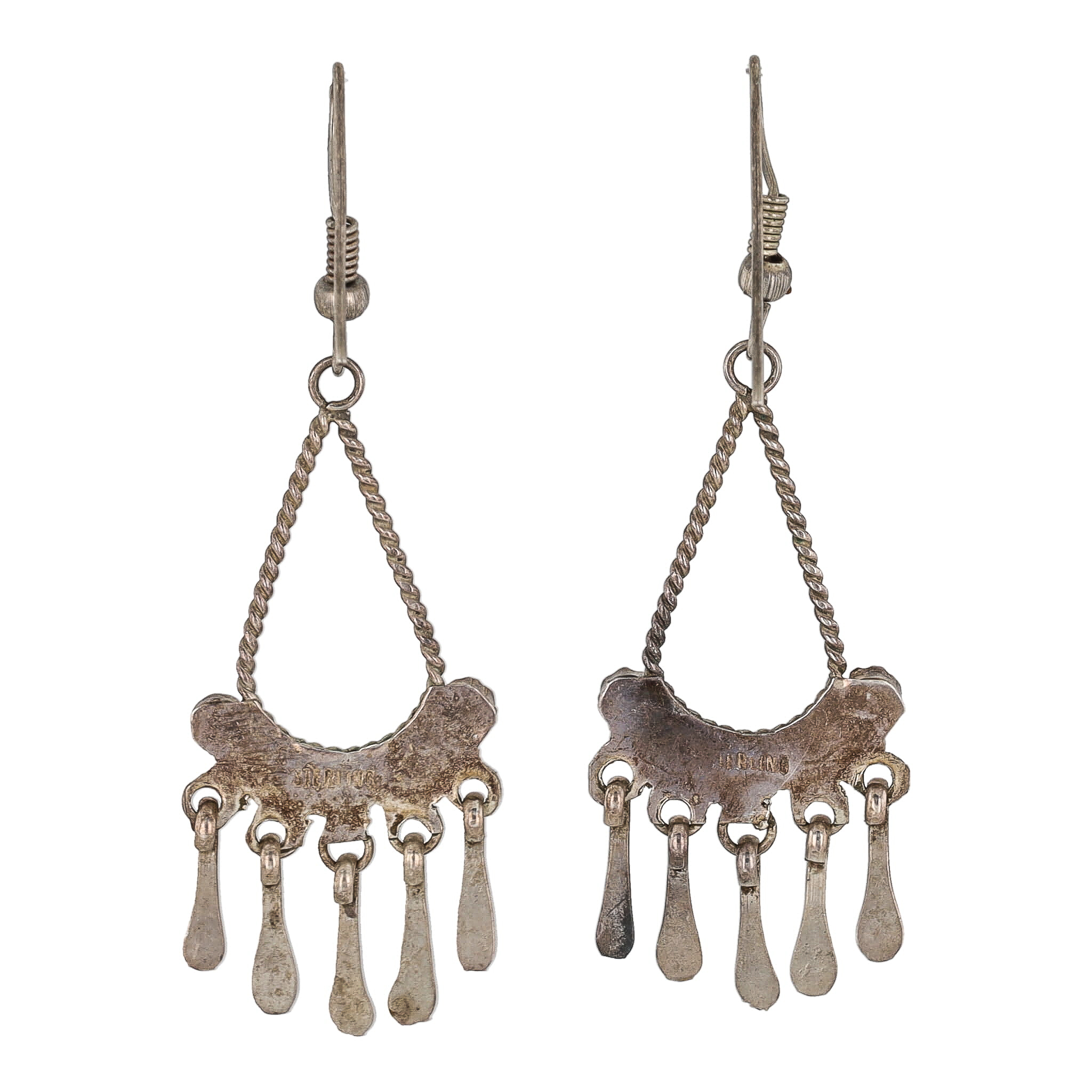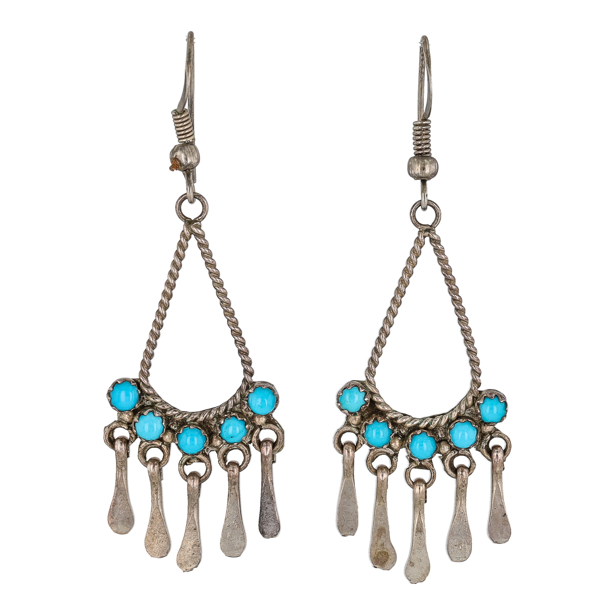 Vintage Navajo Snake Eye Turquoise Sterling Chandelier Earrings 4g