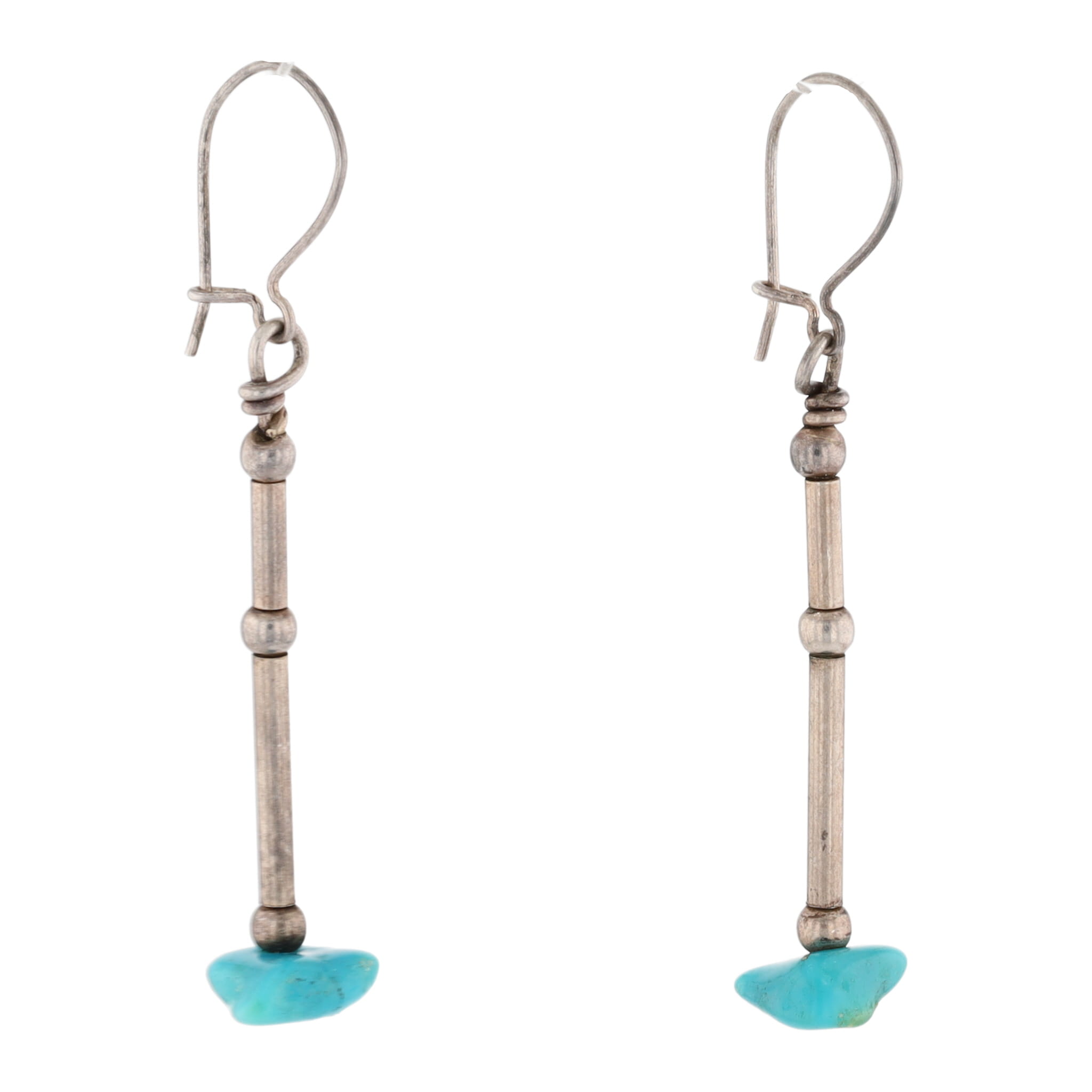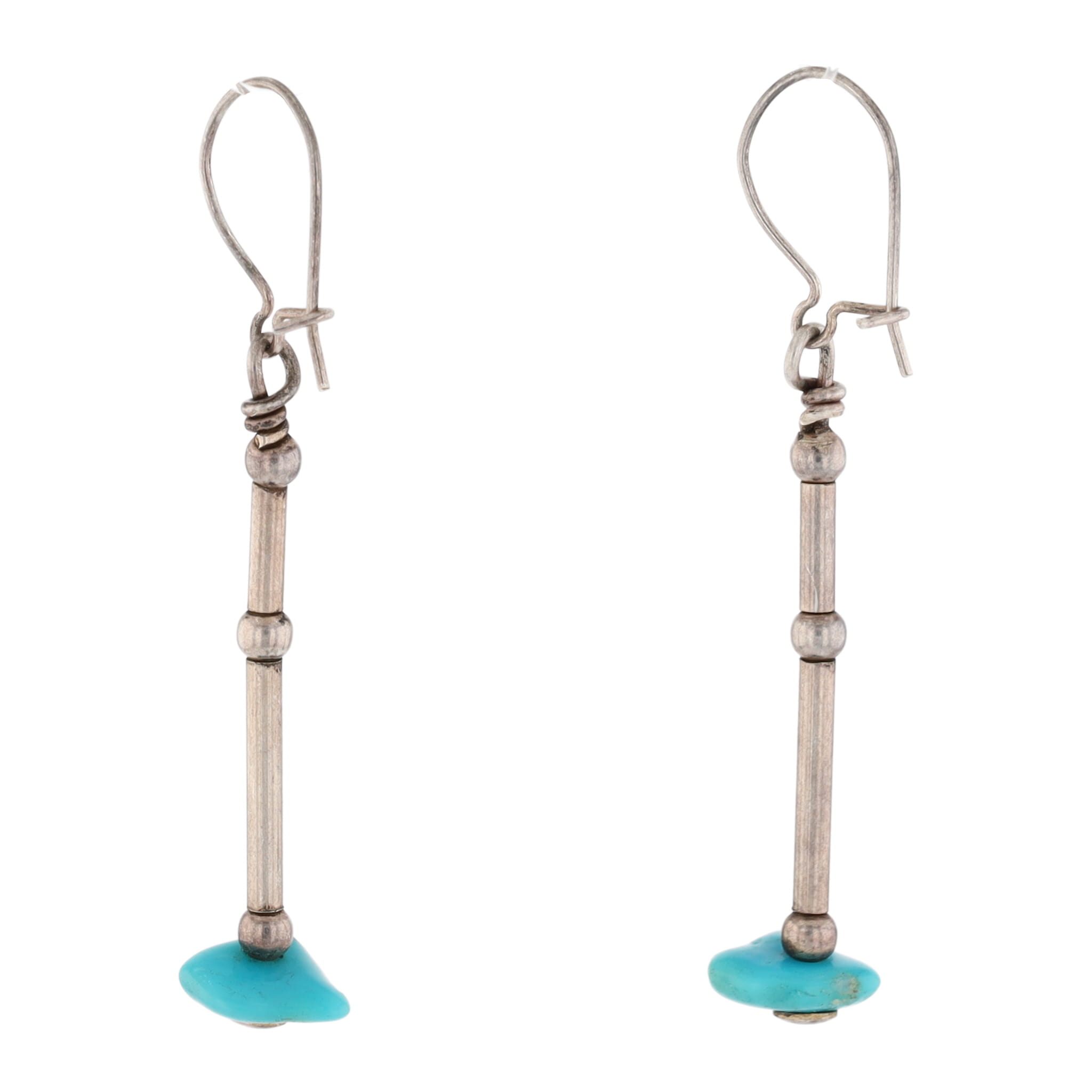 Vintage Navajo Chunk Turquoise Heishi Sterling Dangle Earrings 6g