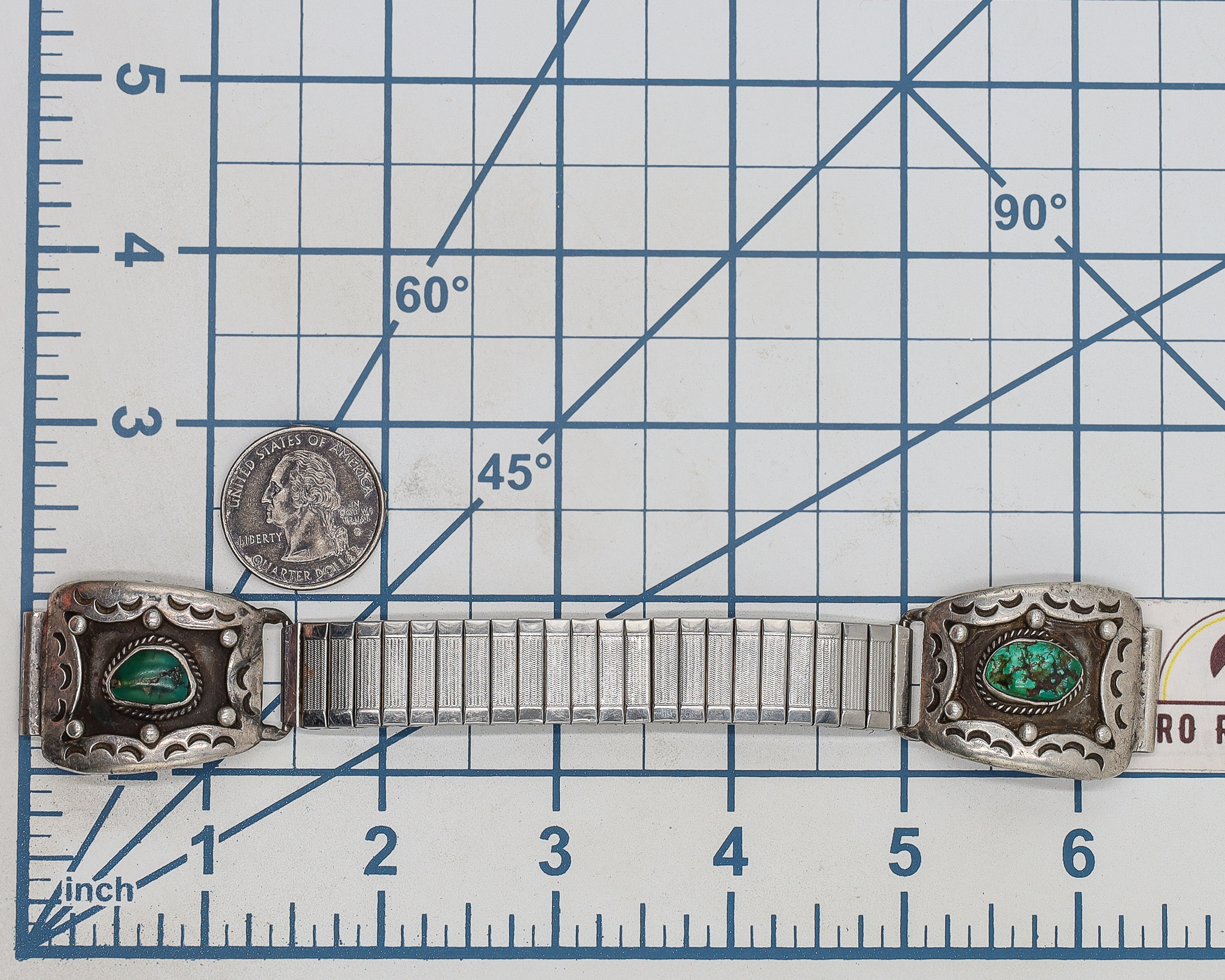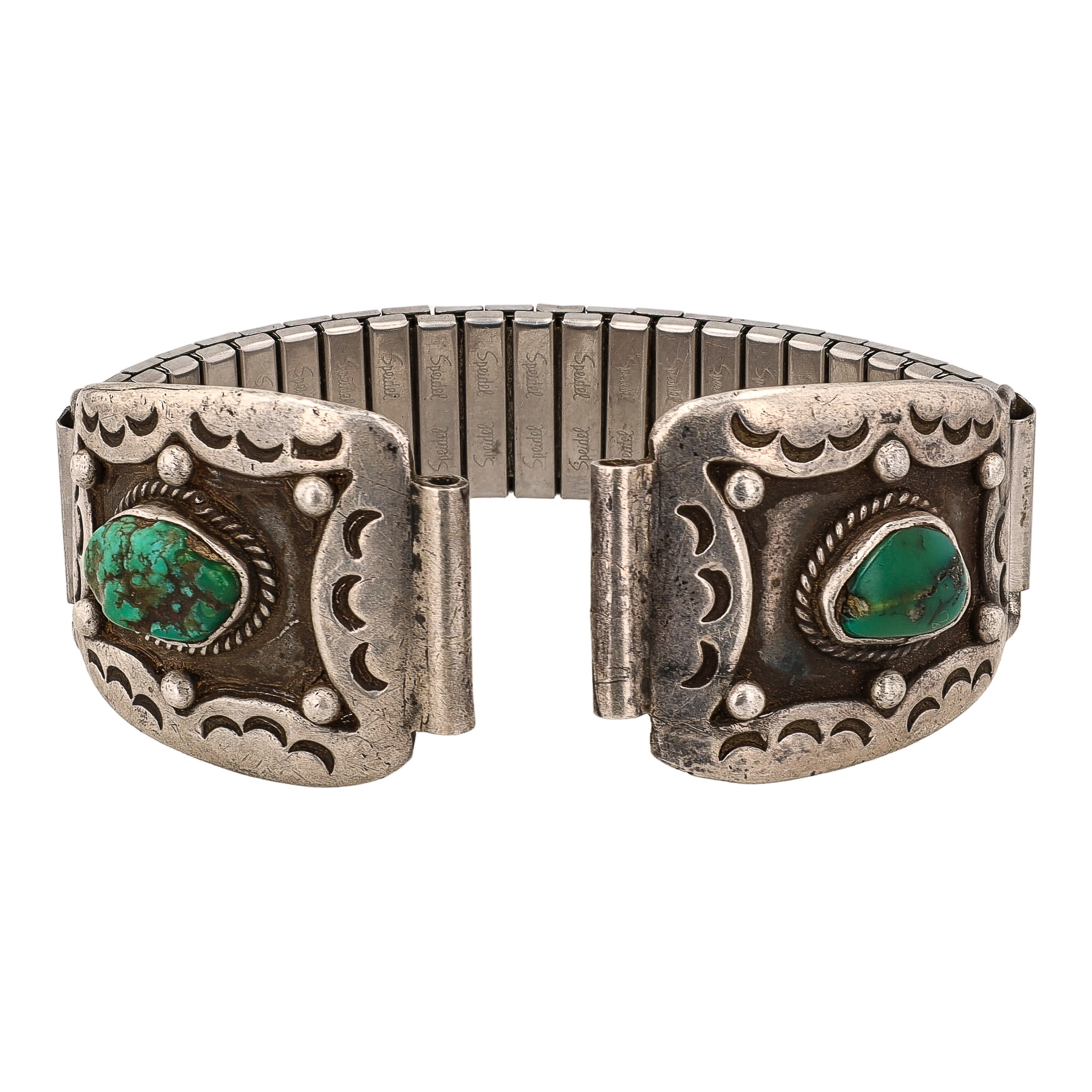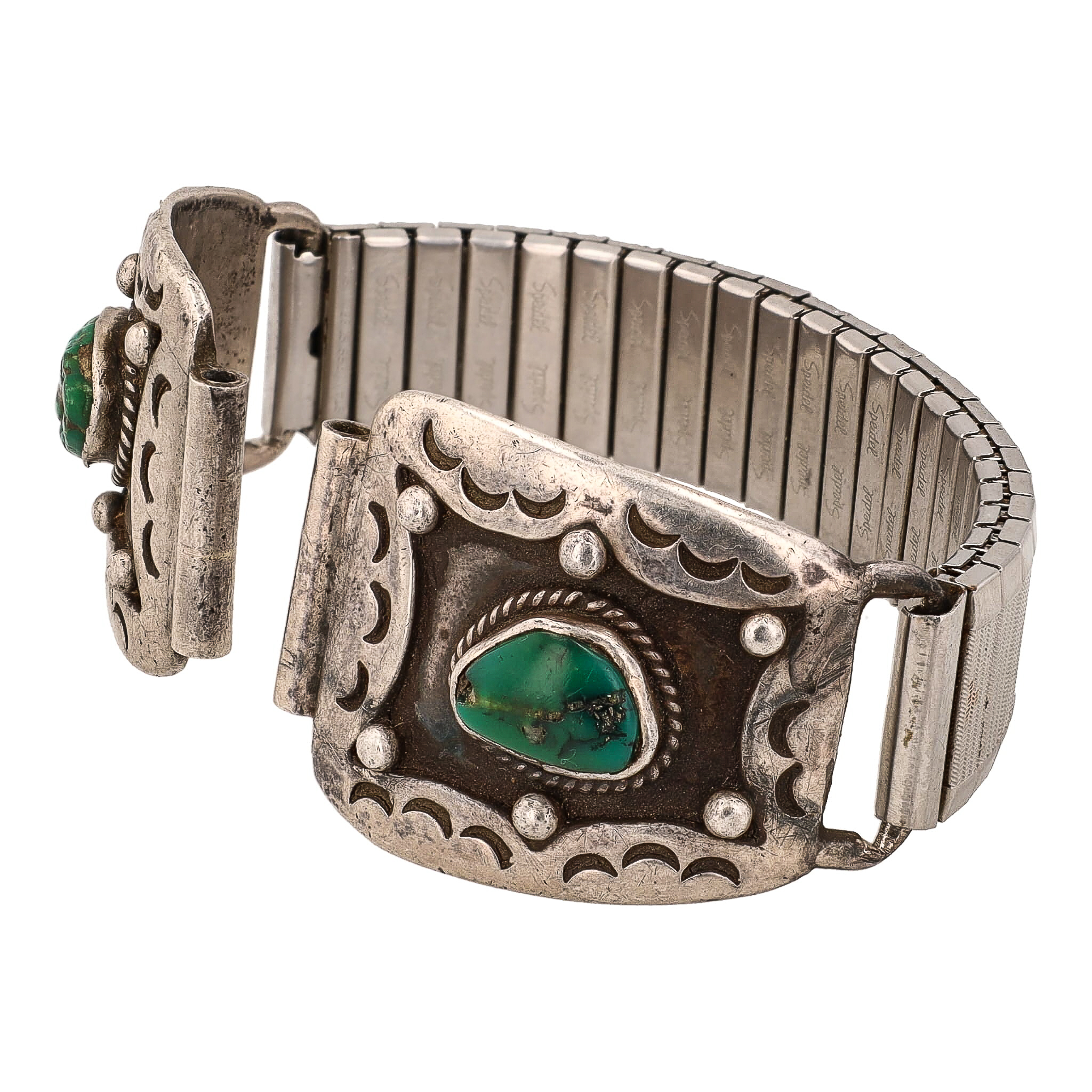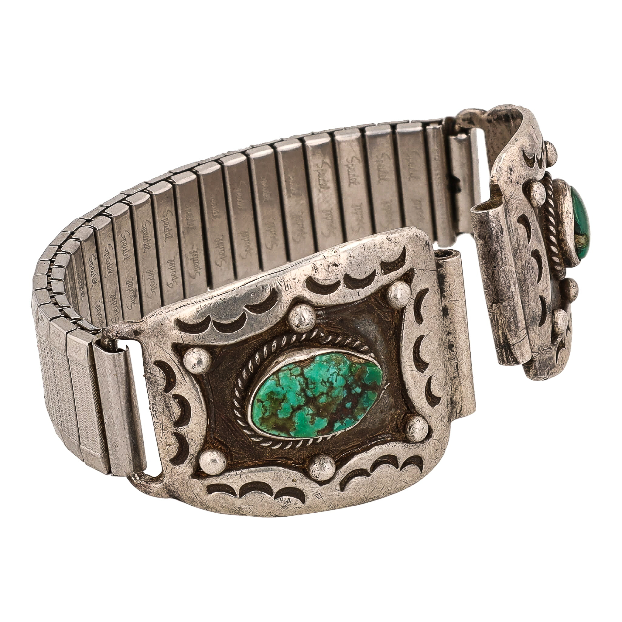 Vintage Navajo Turquoise Sterling Watch Nibs Speidel Band 50g