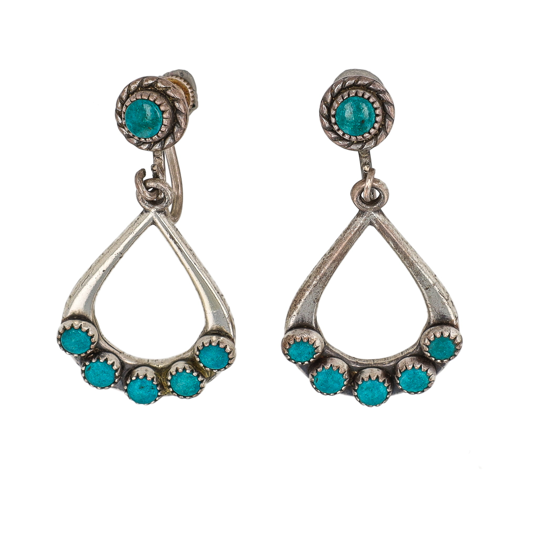 Vintage Zuni Turquoise Sterling Dangle Earrings 6g
