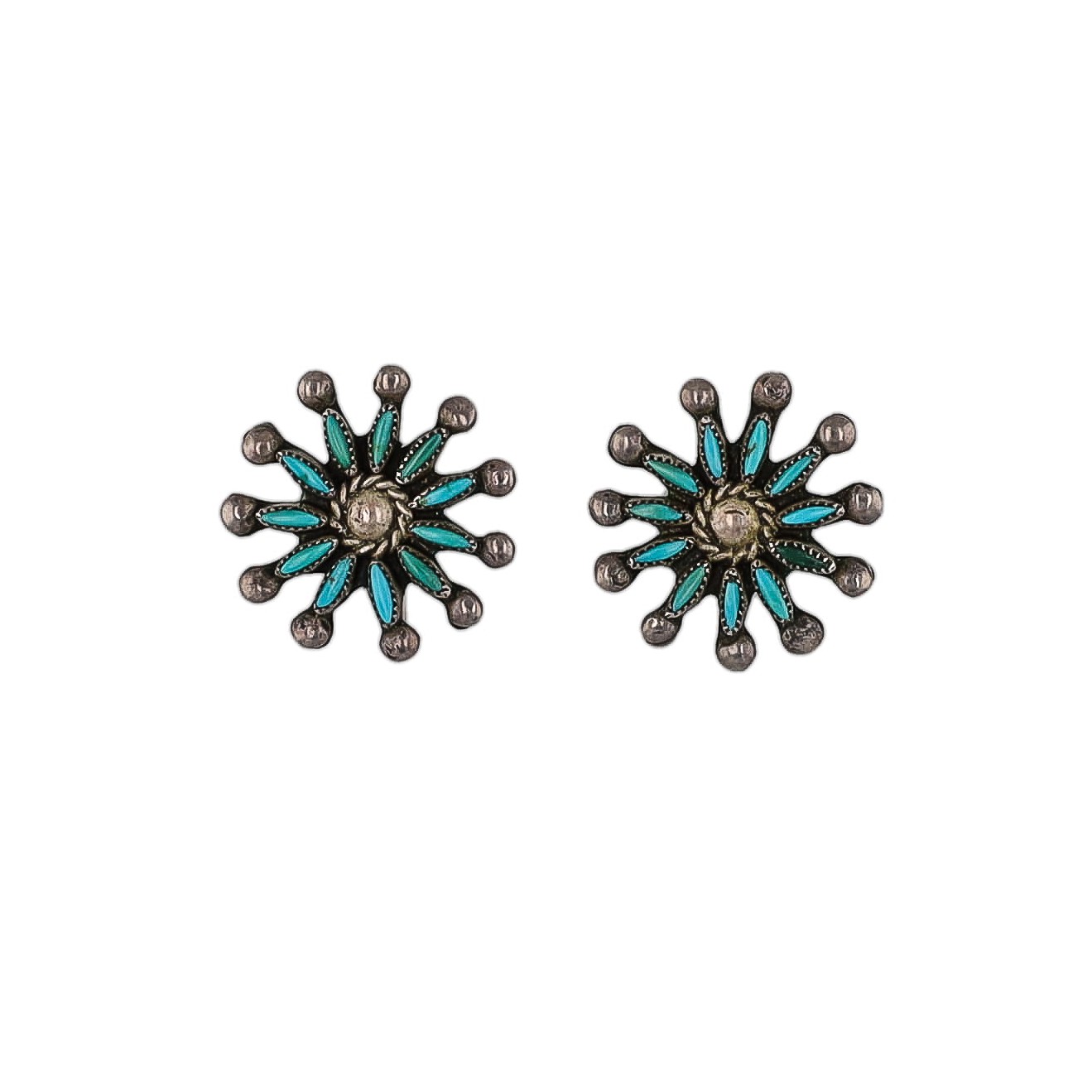 Vintage Zuni Needlepoint Turquoise Sterling Earrings 6.5g
