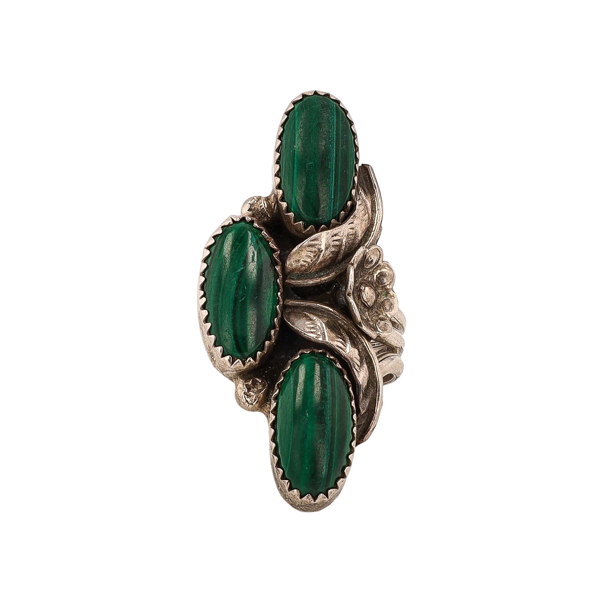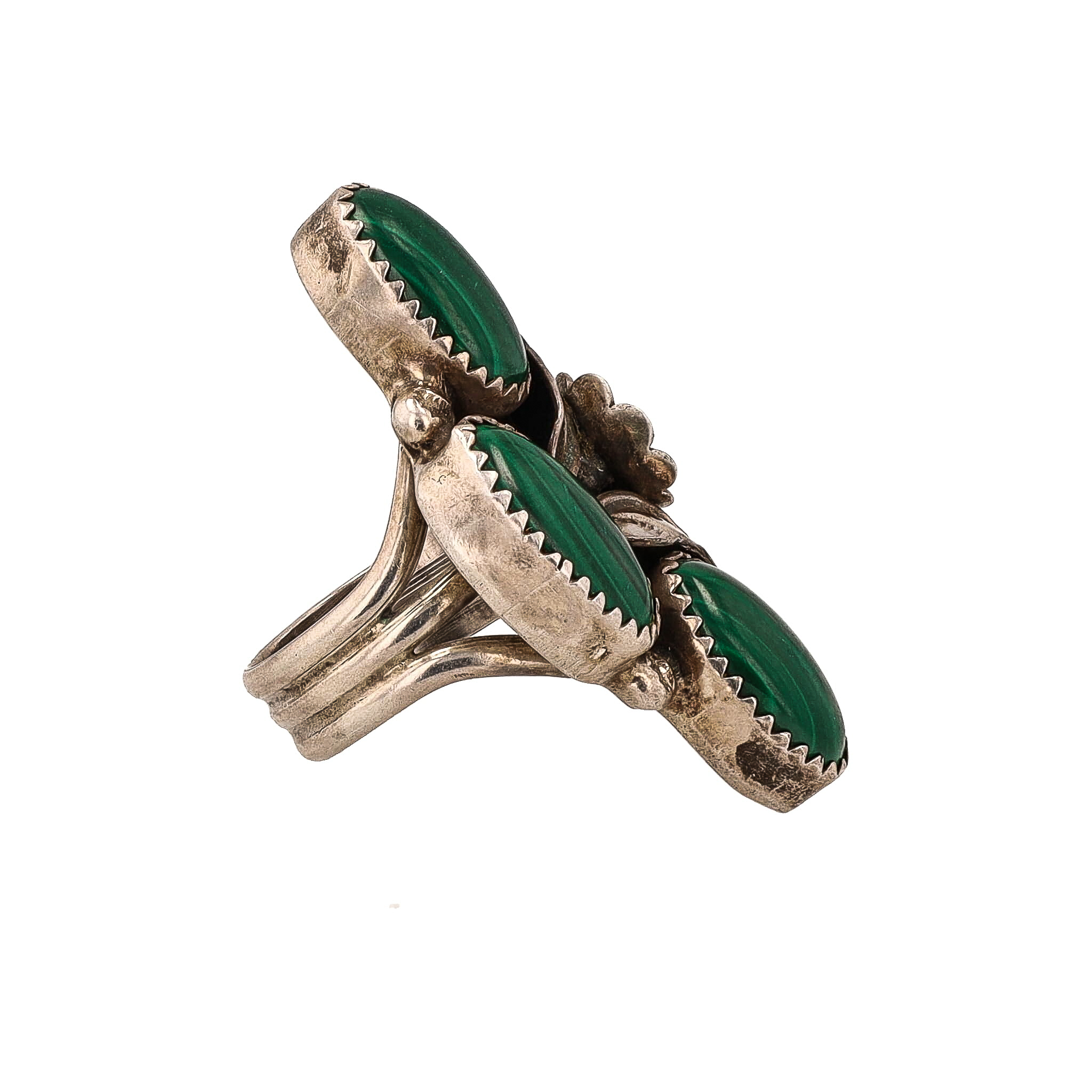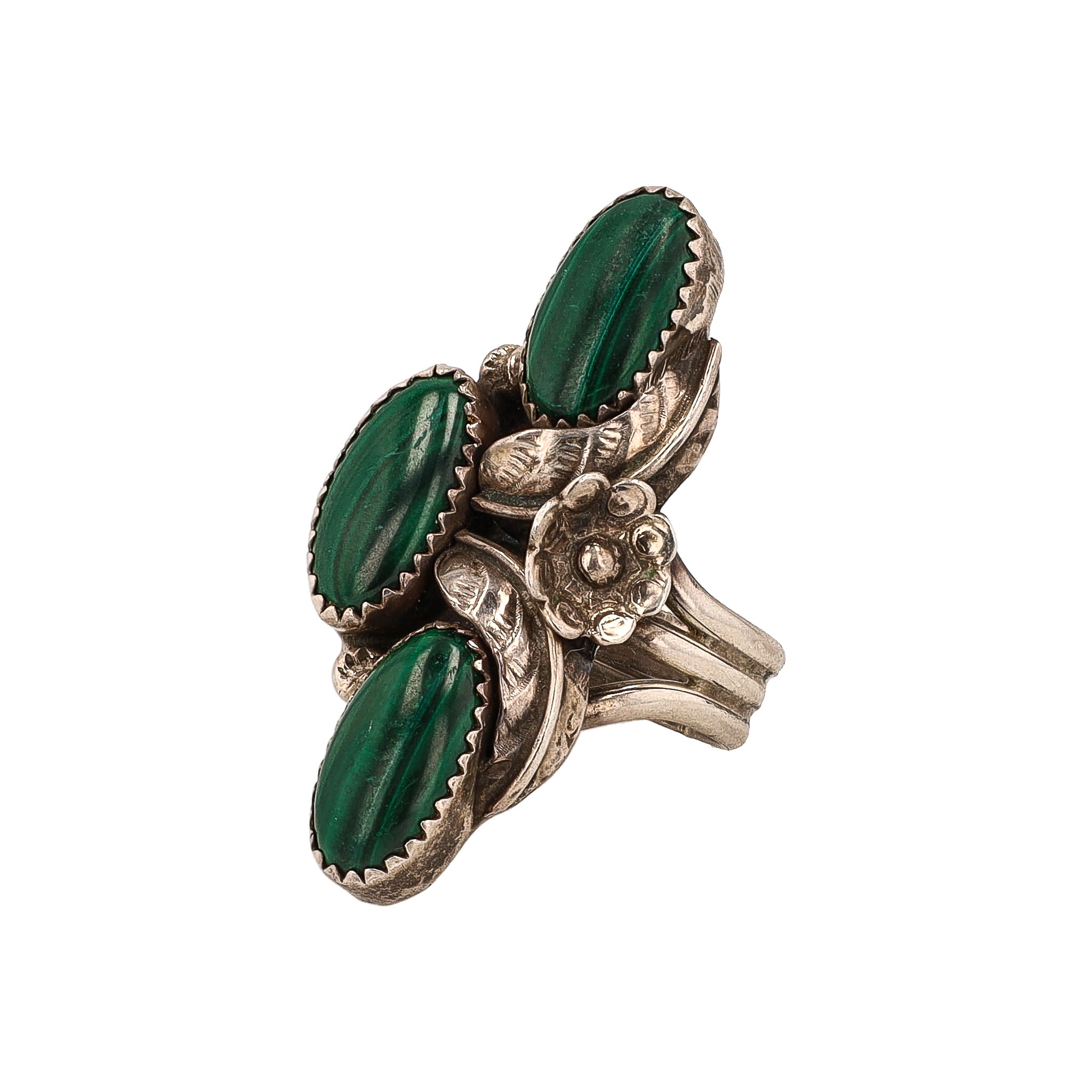 Vintage Navajo Malachite Sterling Blossom Ring Sz. 6, 11.5g
