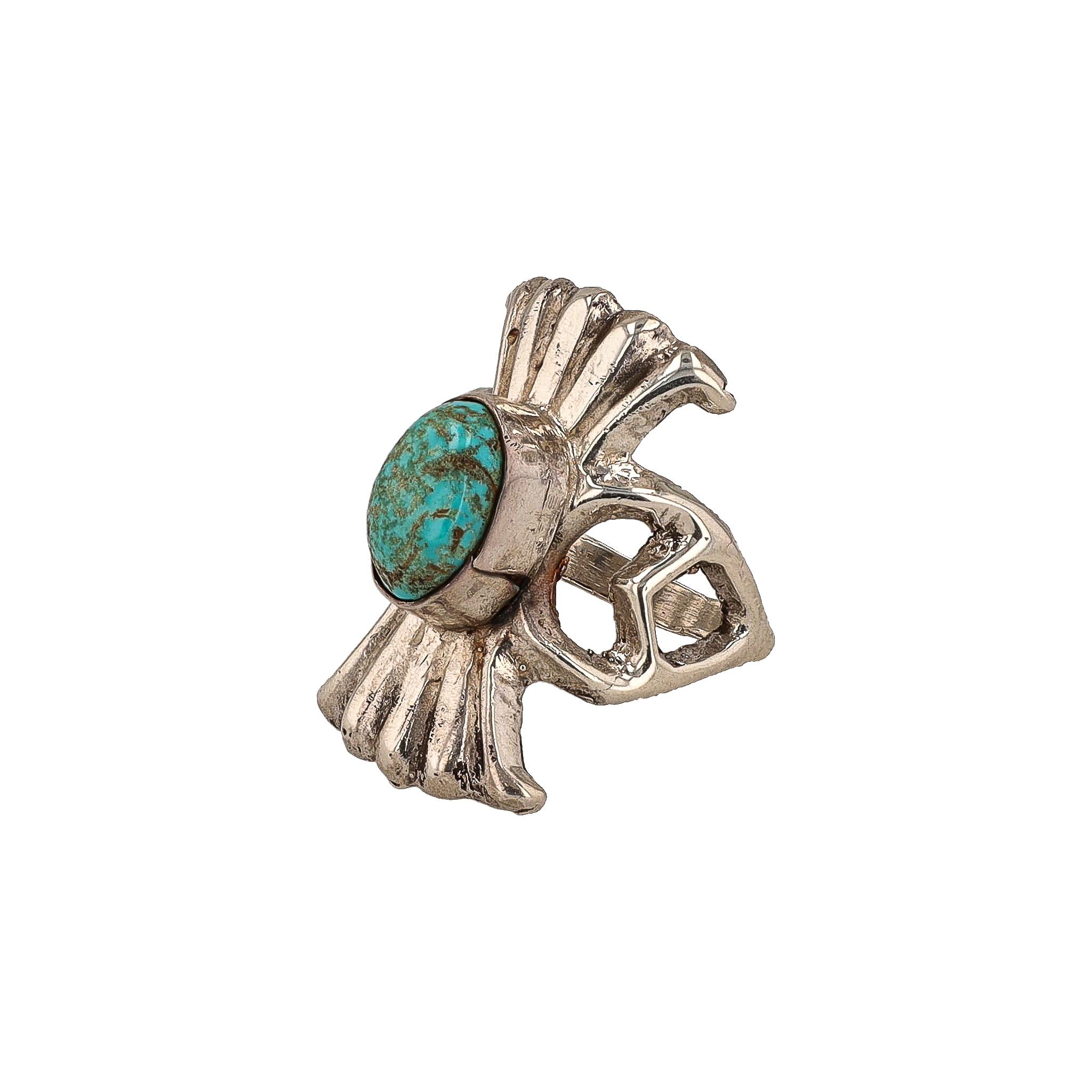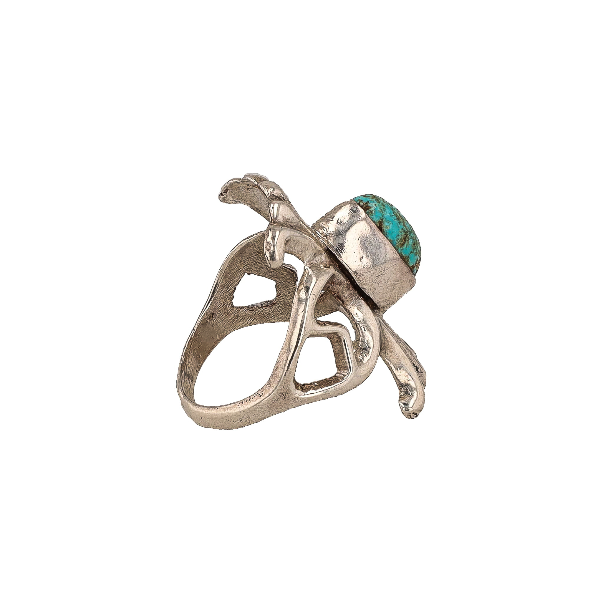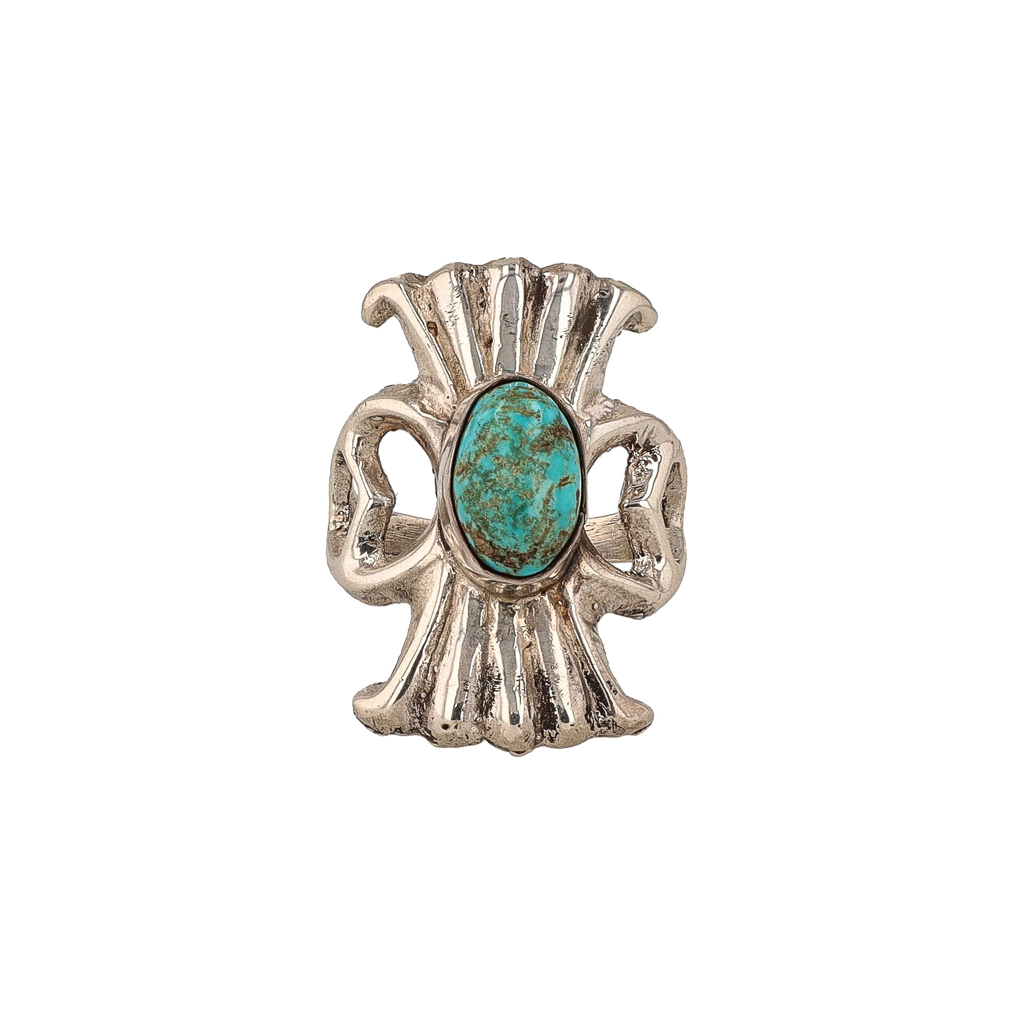 Vintage Navajo Turquoise Sandcast Sterling Ring Sz. 6.75, 9g