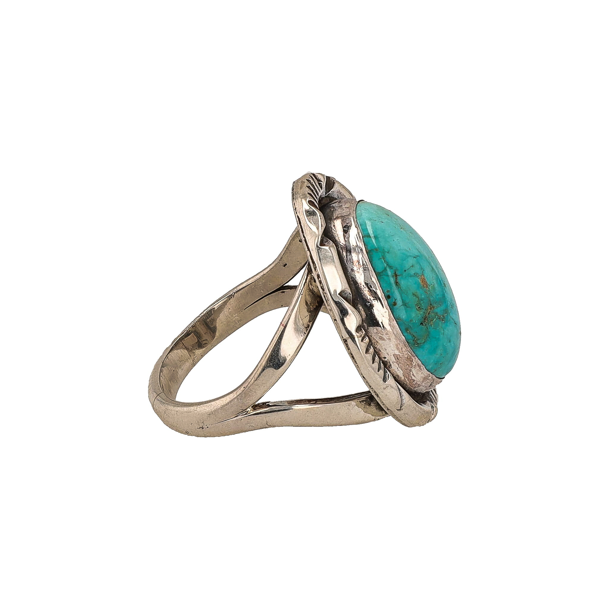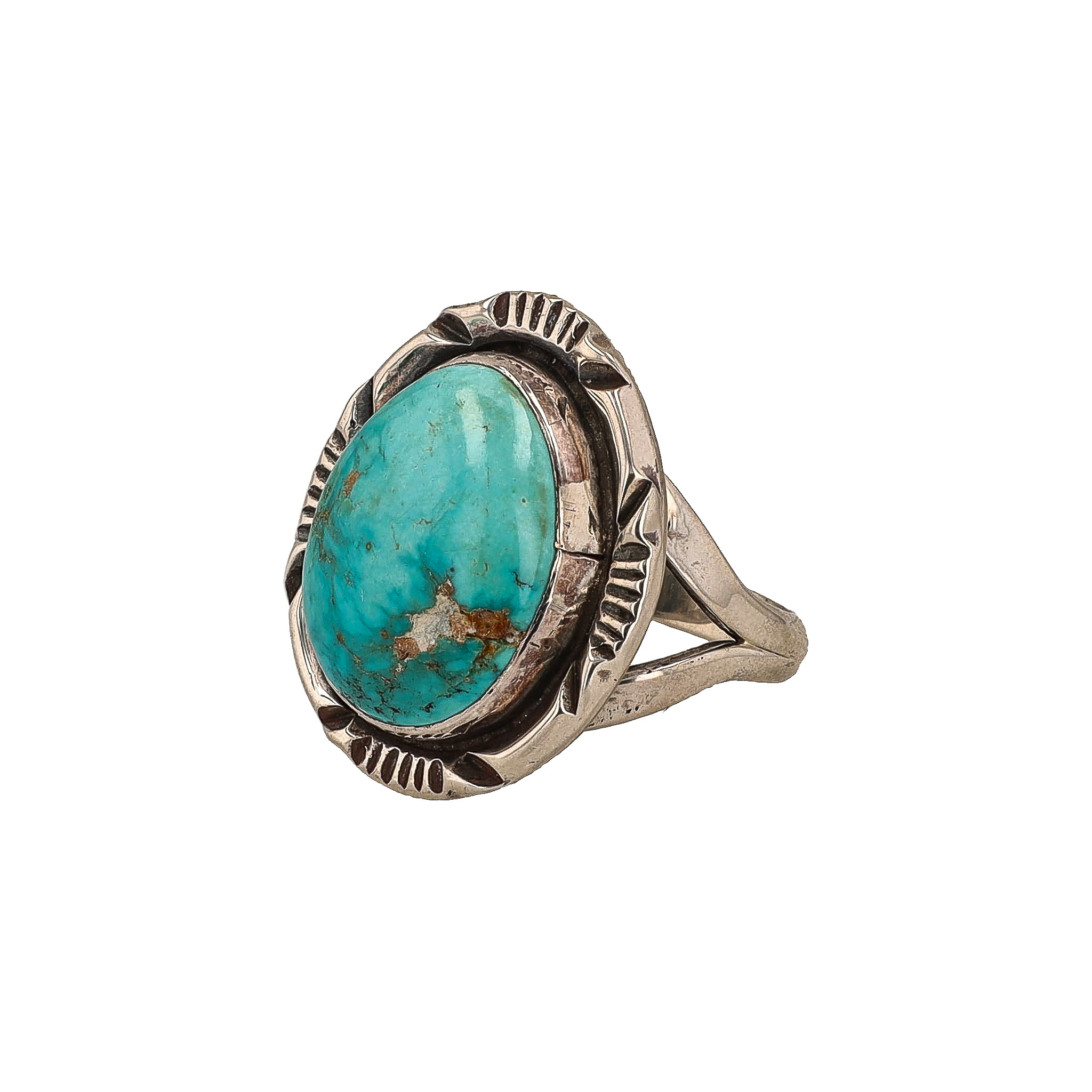 Vintage Navajo Large Turquoise Sterling Stamped Ring Sz. 10.25, 13g