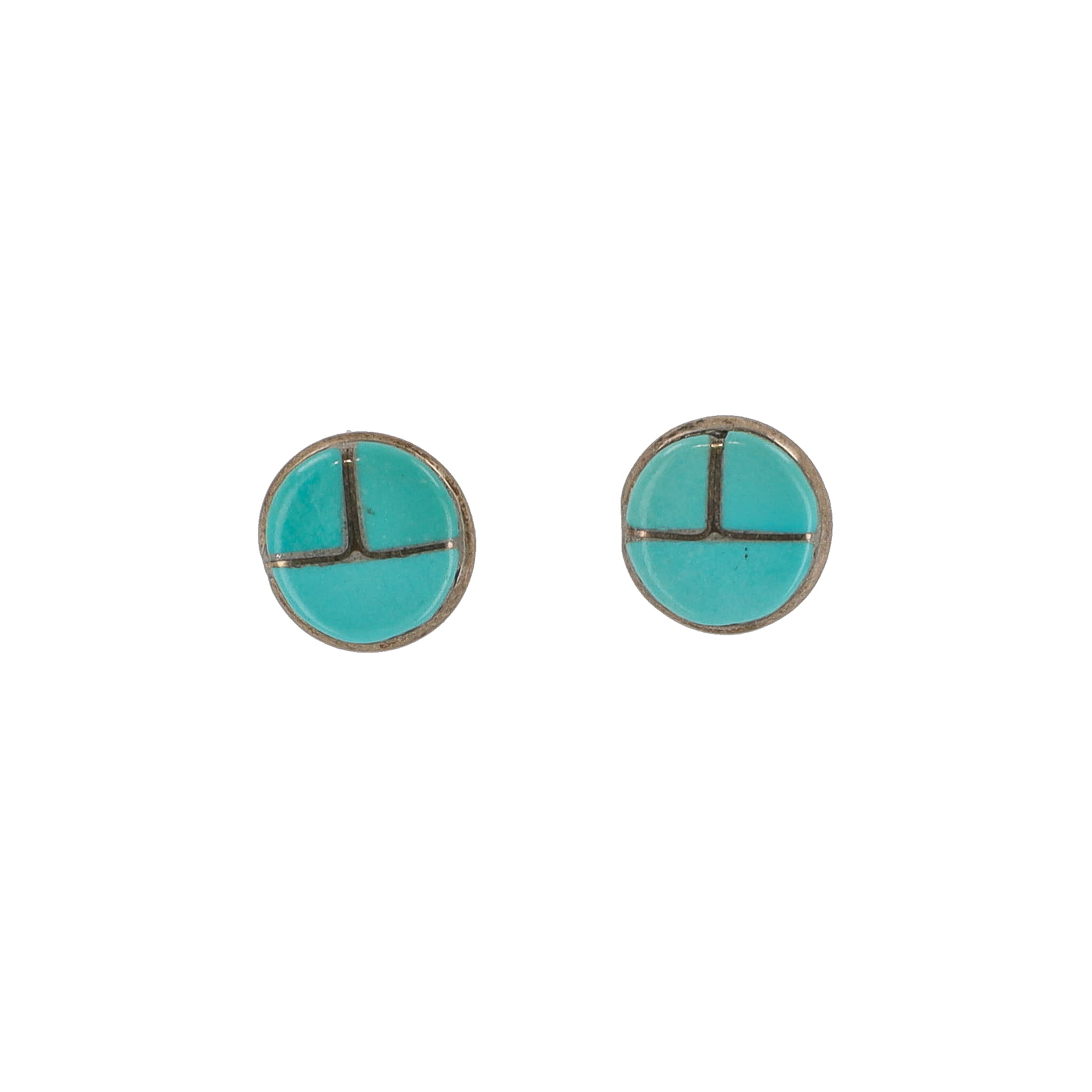 Vintage Zuni Turquoise Sterling Inlay Earrings 1g