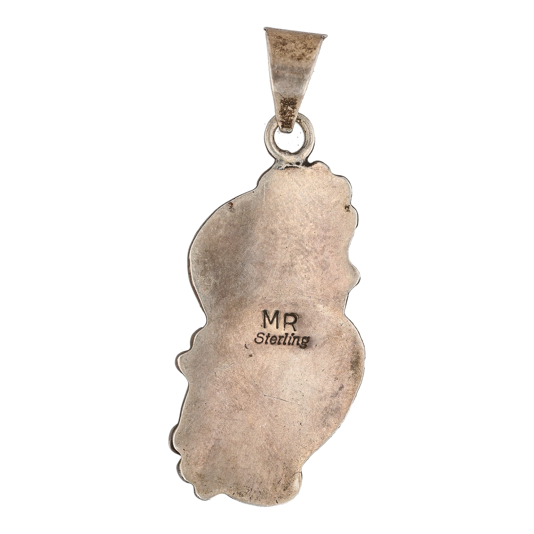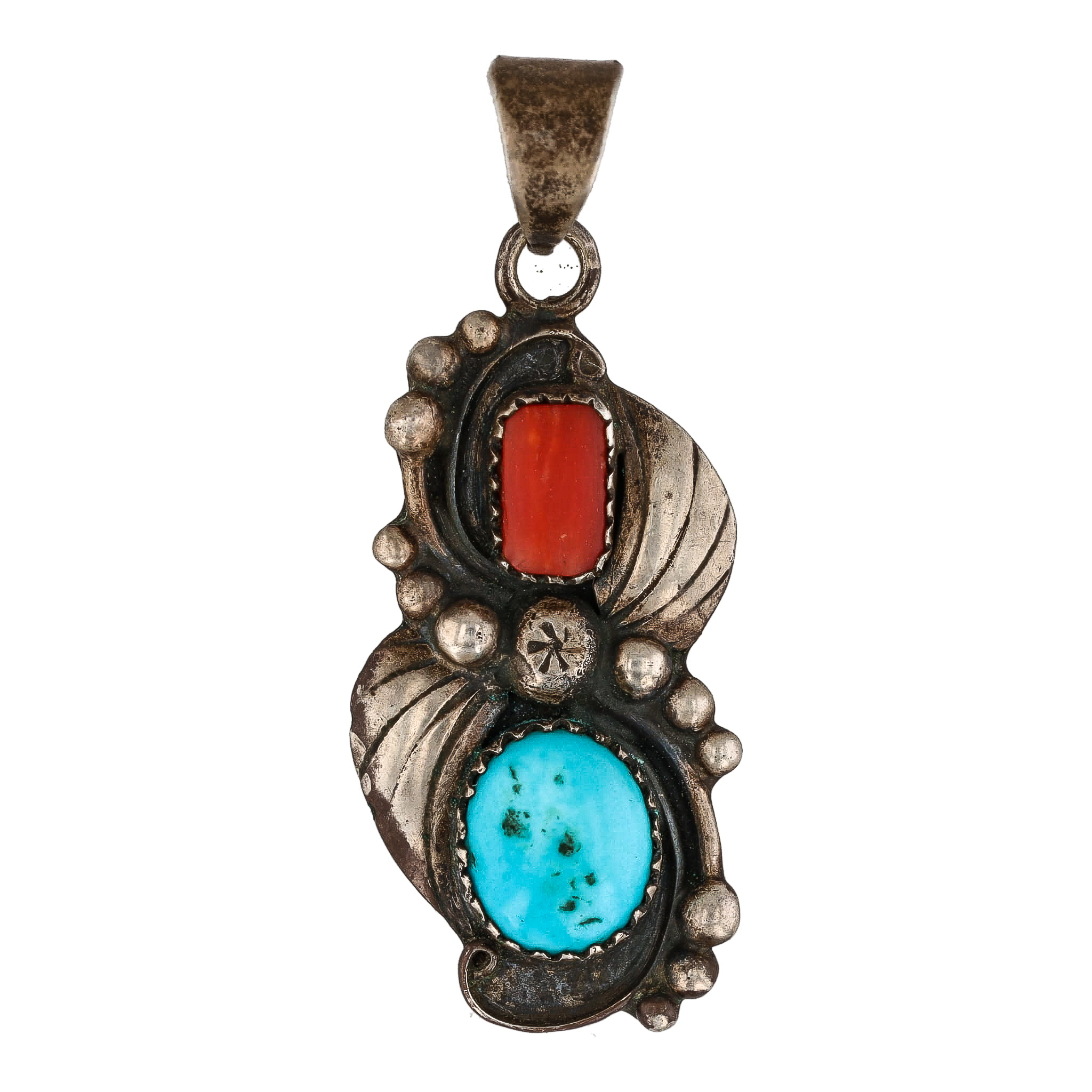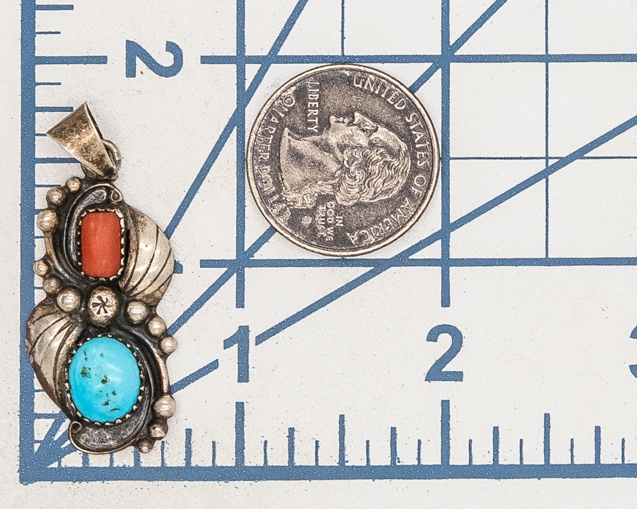 Signed MR Navajo Turquoise Coral Sterling Pendant 7g