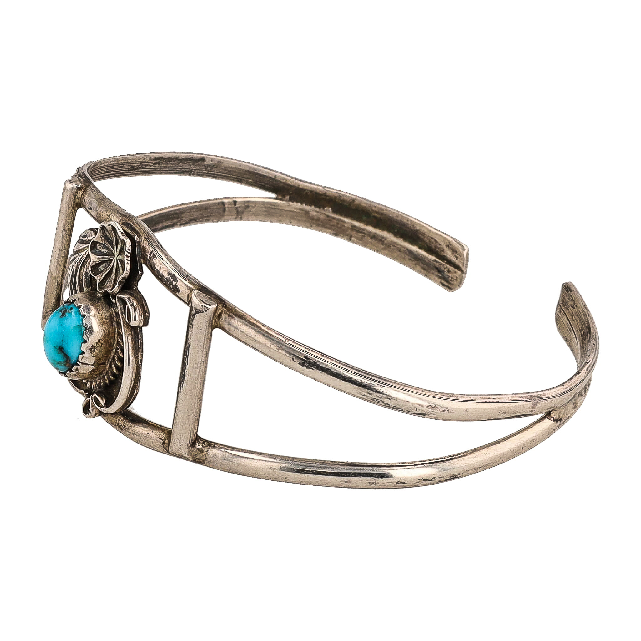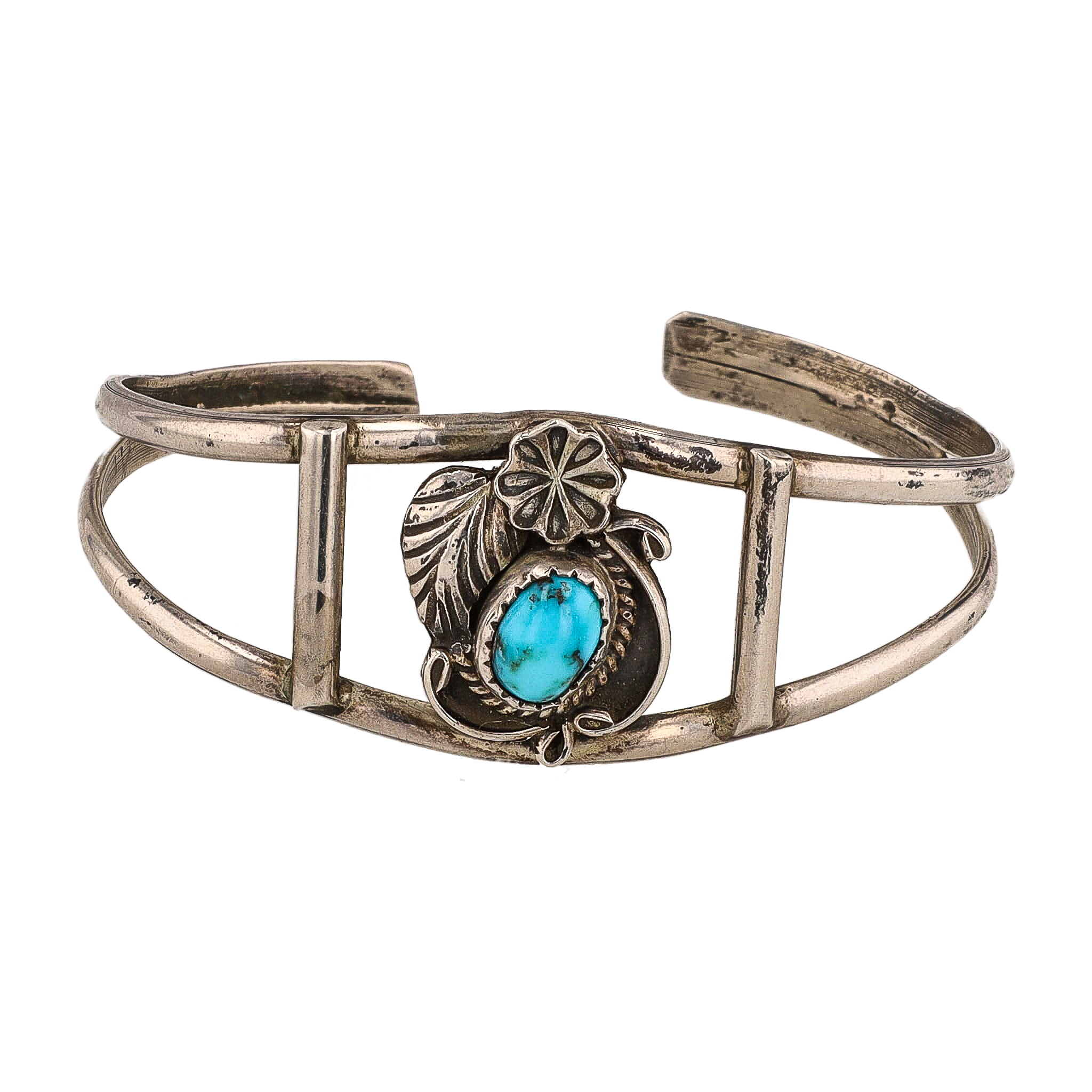 D. Reeves Navajo Turquoise Sterling Blossom Cuff Bracelet 11g