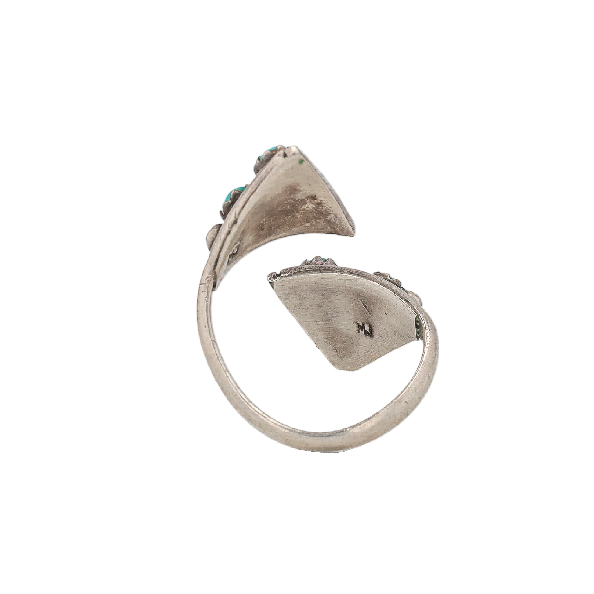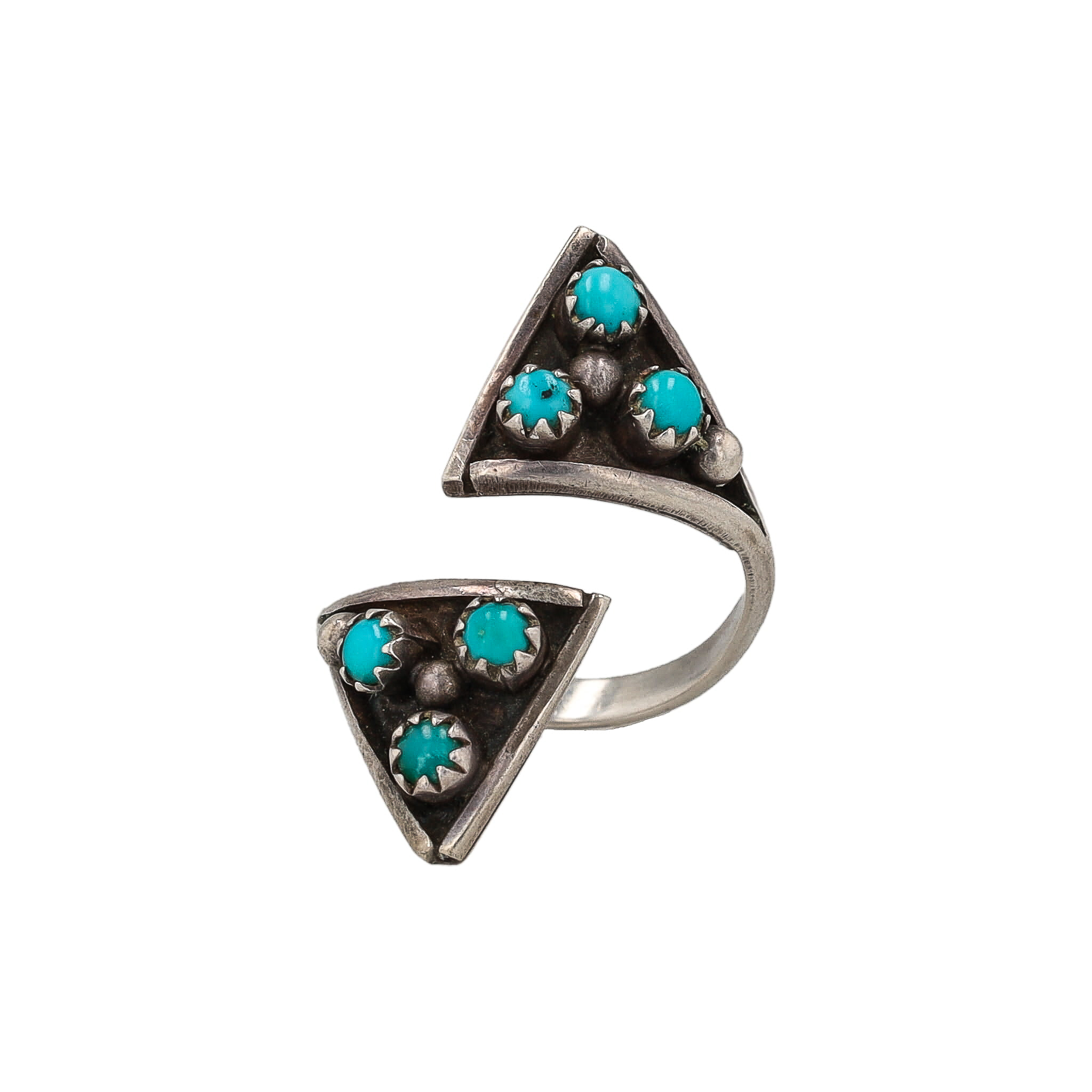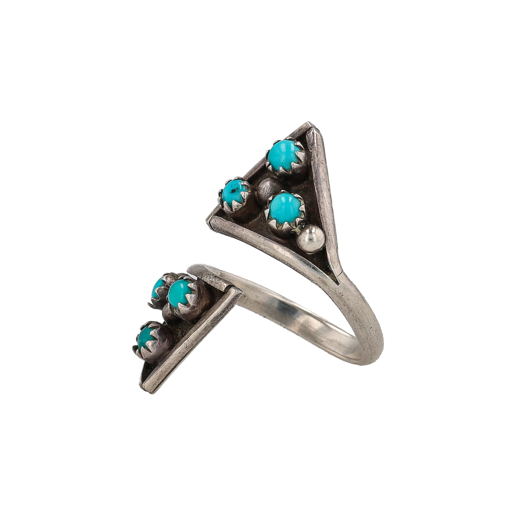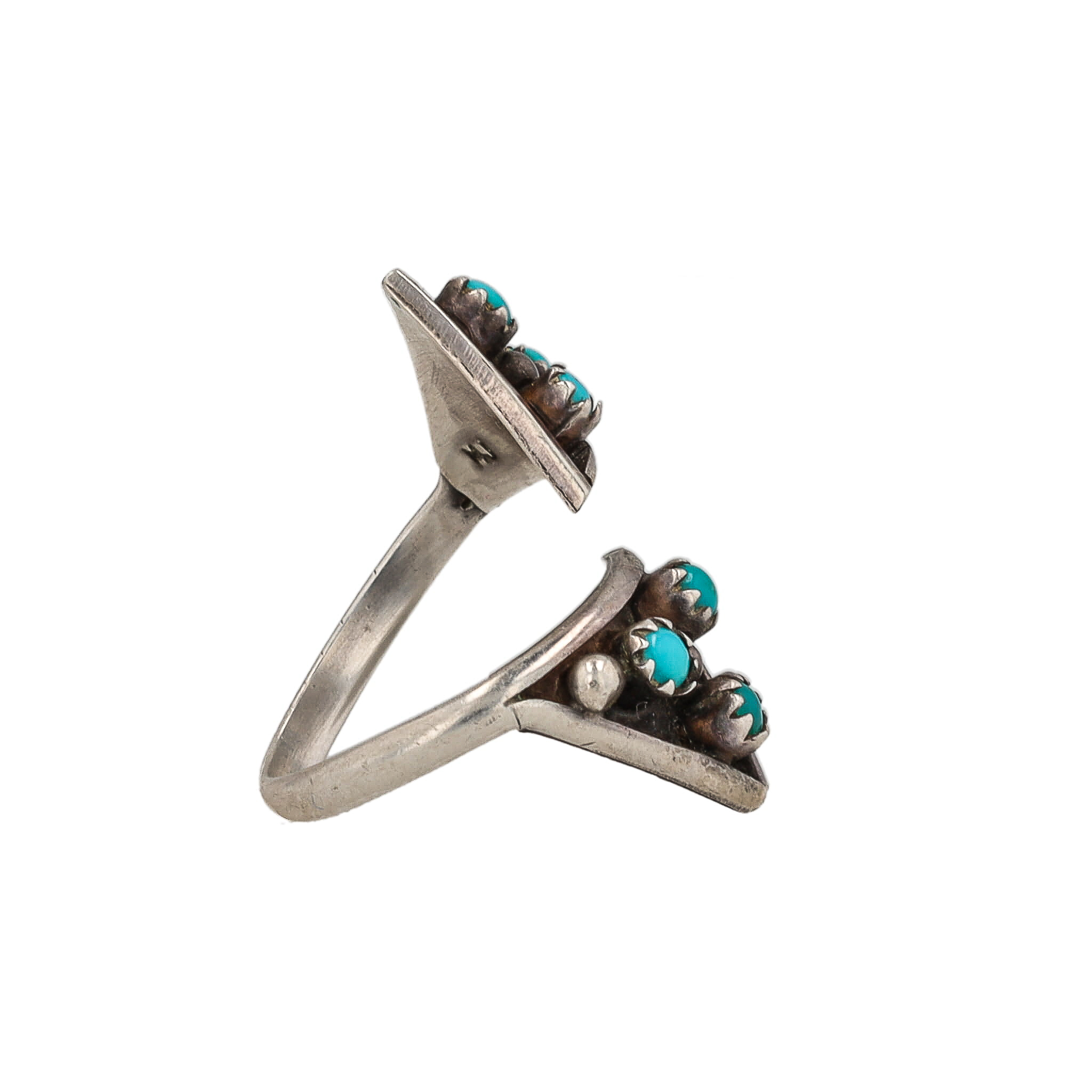 Marcella James Navajo Snake Eye Turquoise Sterling Shadow Box Wrap Ring Sz. 6, 4g