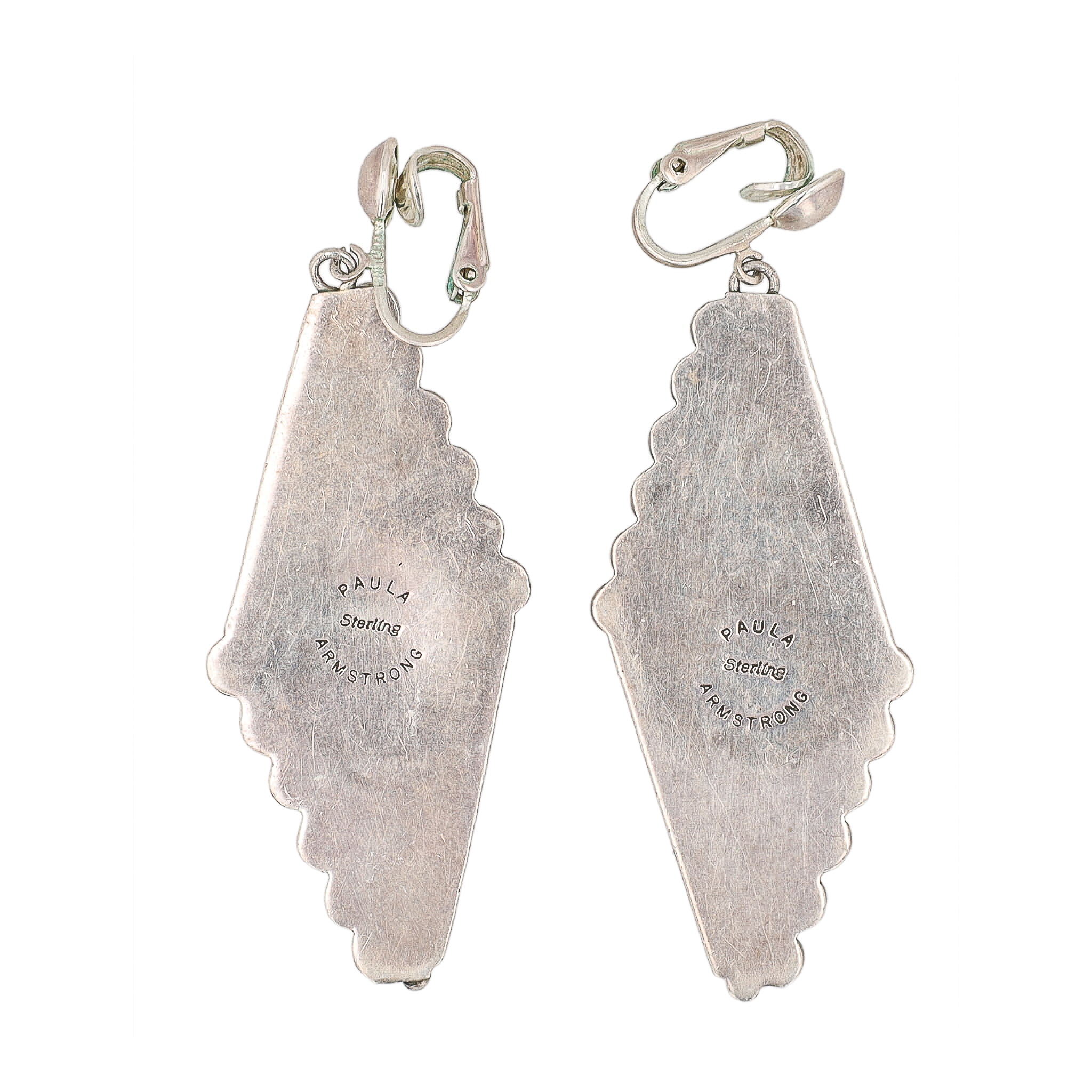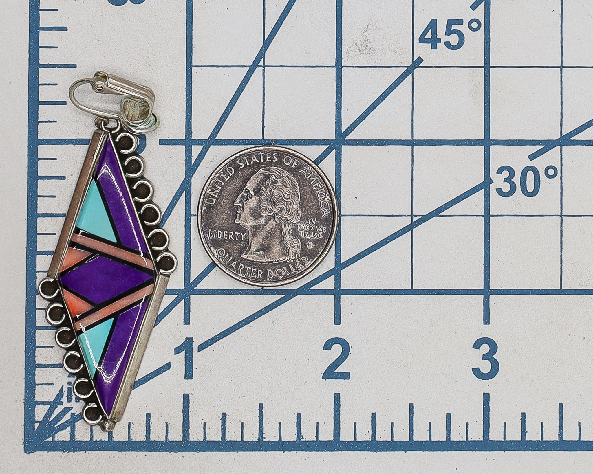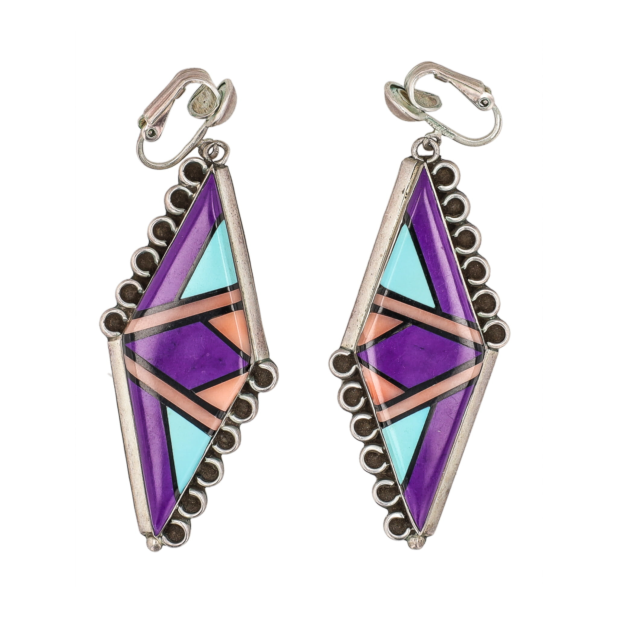 Paula Armstrong Navajo Multi Stone Sterling Inlay Dangle Earrings 20g-Turquoise, Spiny Oyster, Sugilite, Onyx