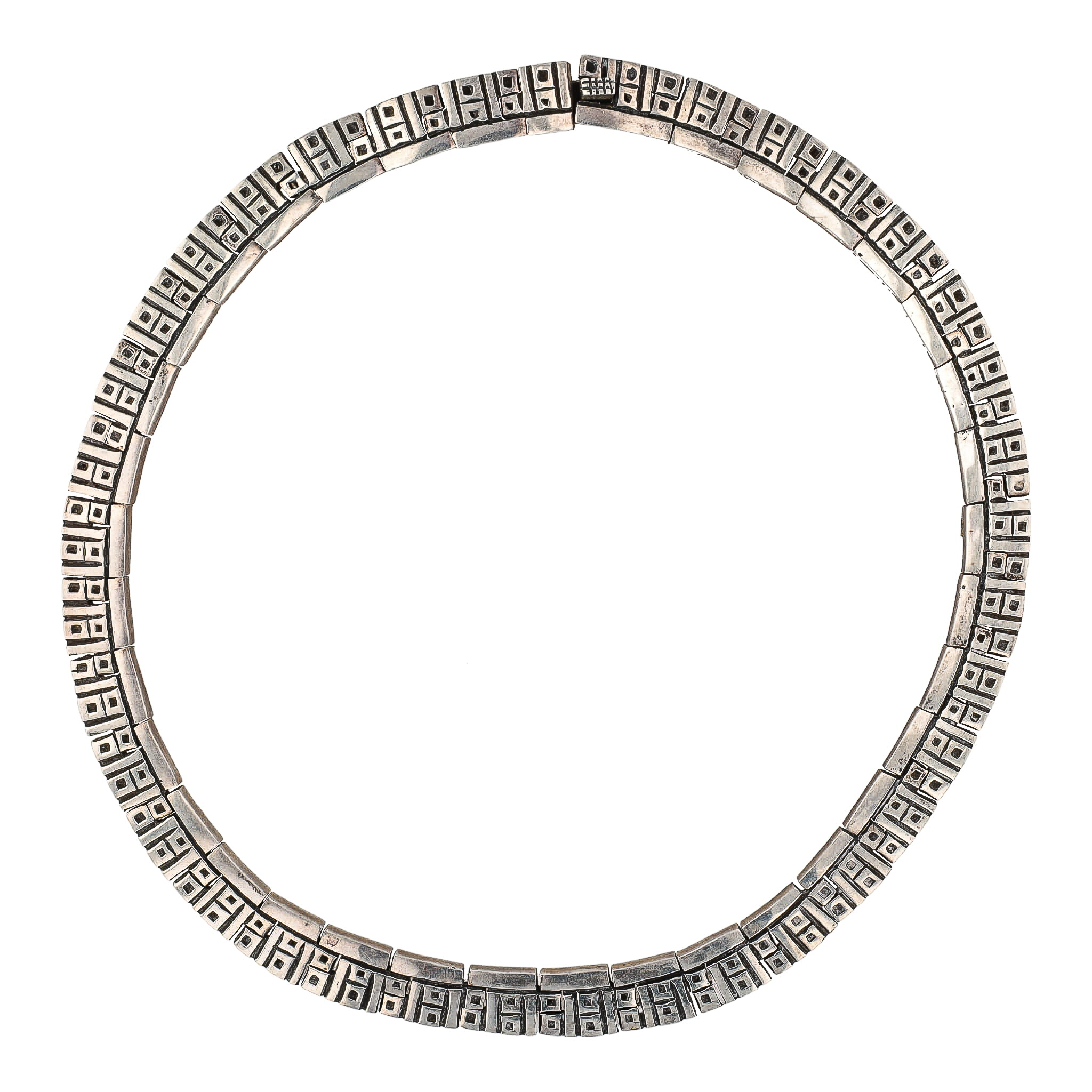 Rubi Ramirez Taxco Mexico 980 Silver Geometric Link Necklace 155.5g