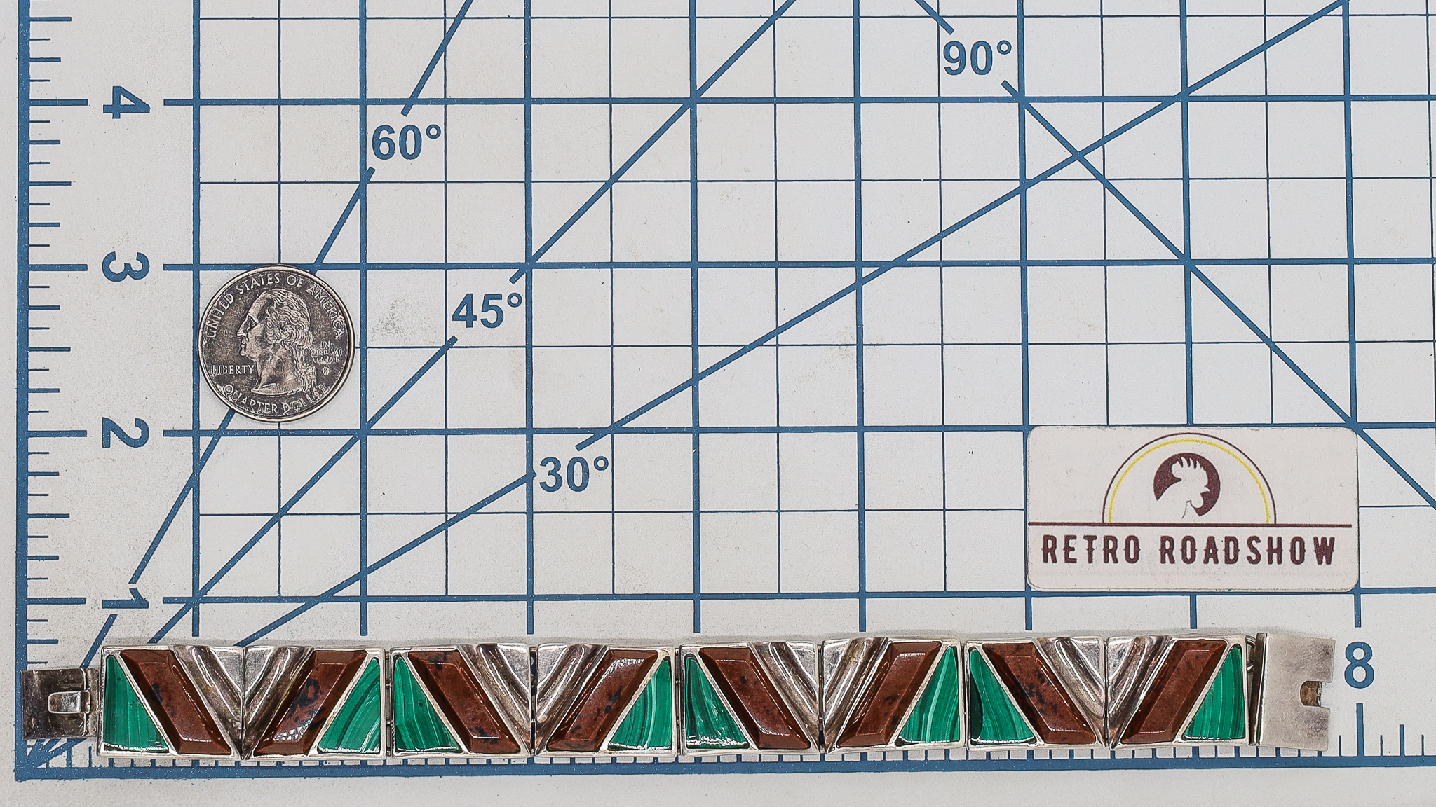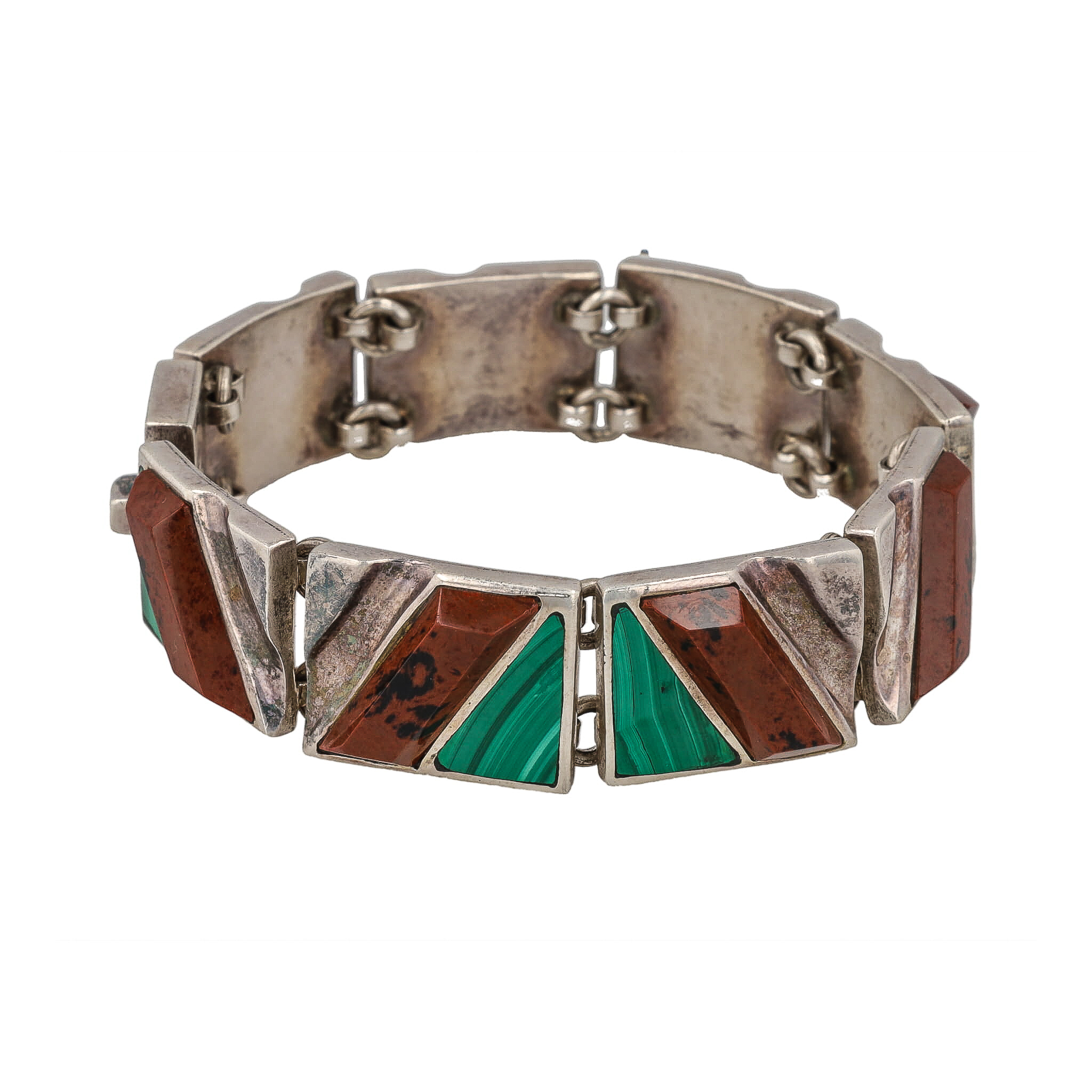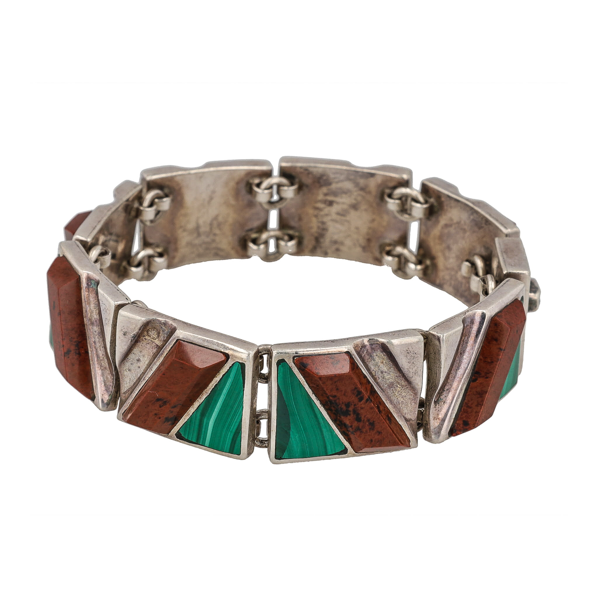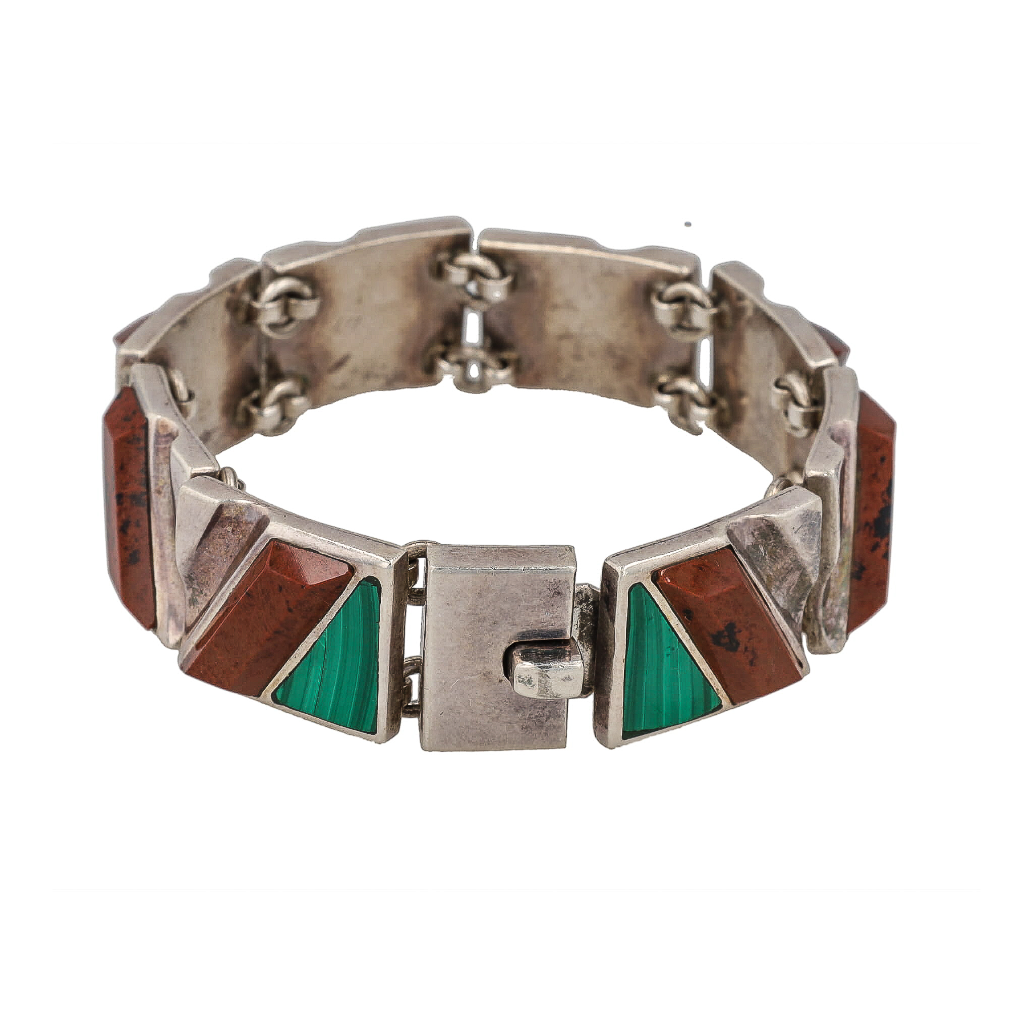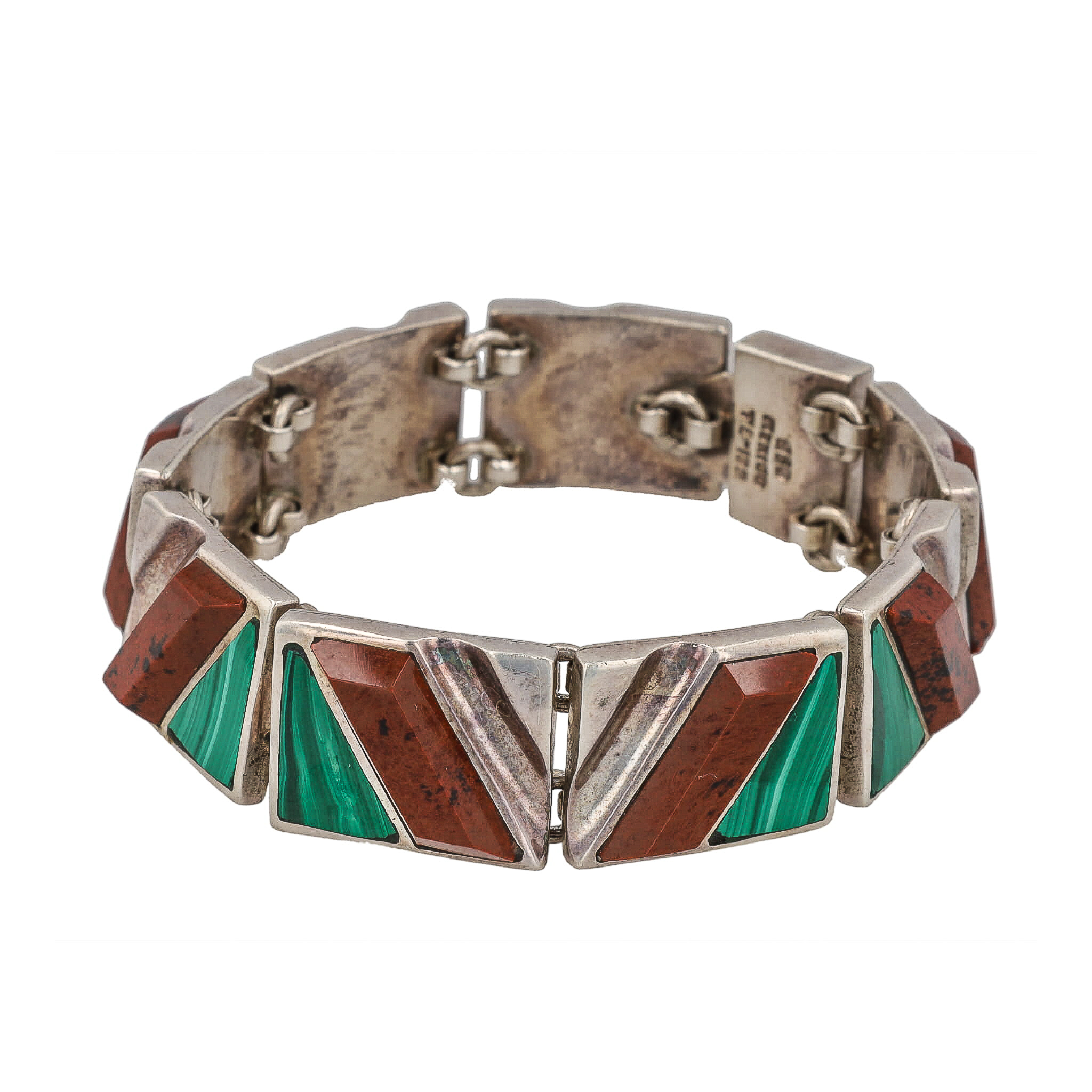 Signed TL-105 Malachite Inlay Jasper Sterling Panel Bracelet 74g