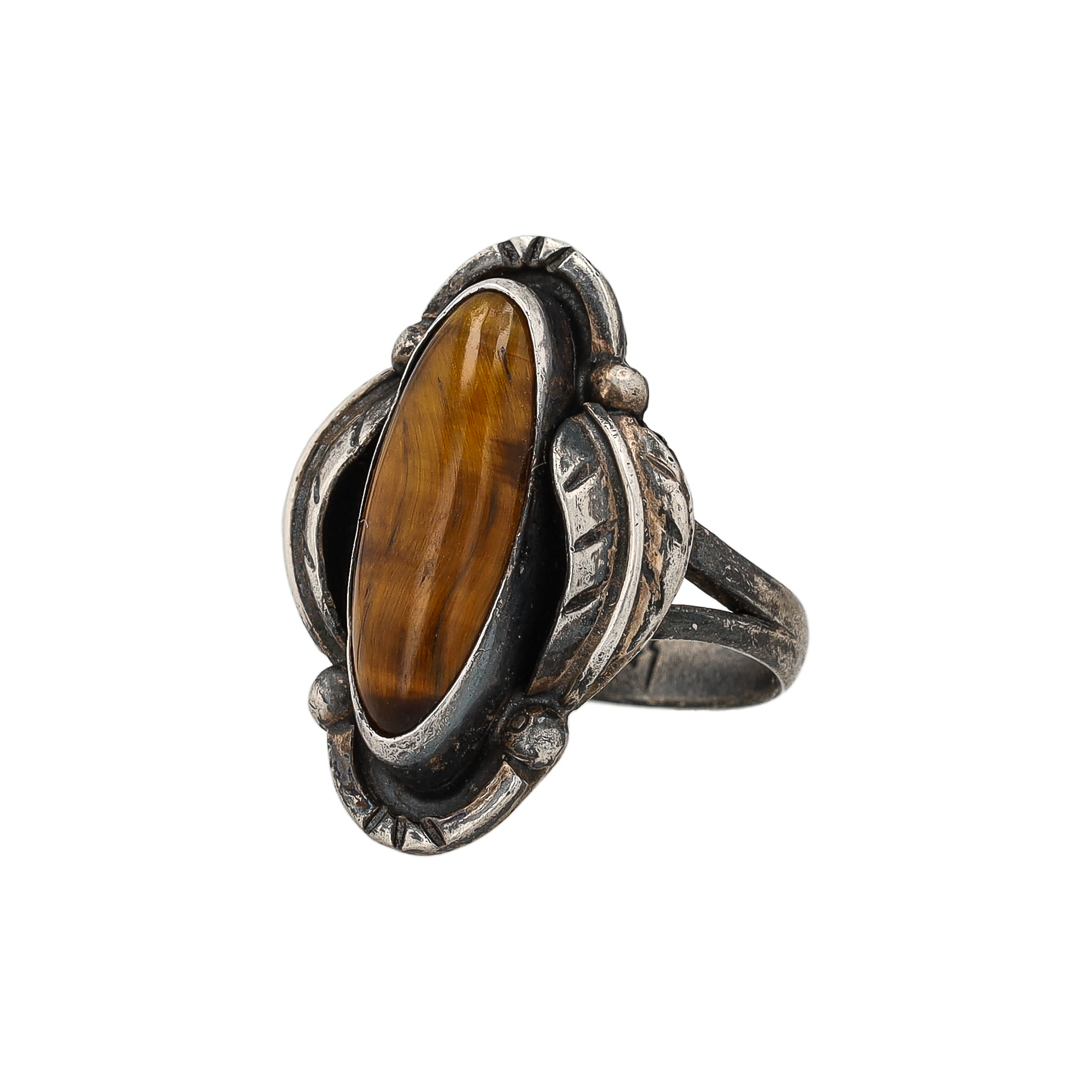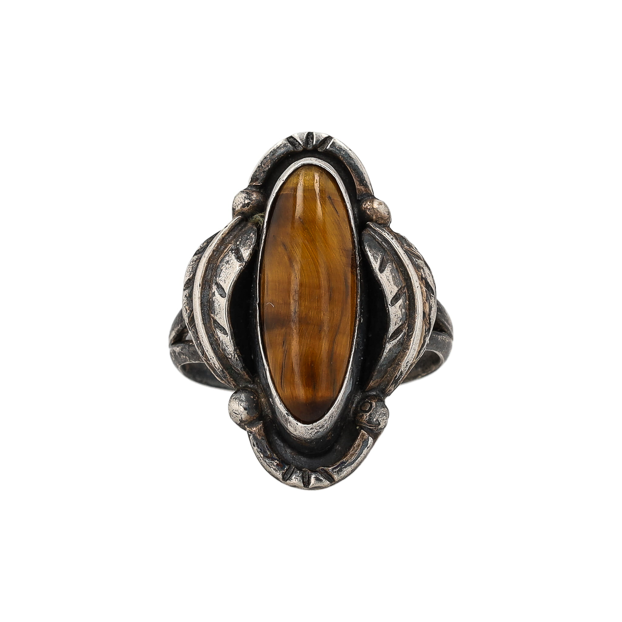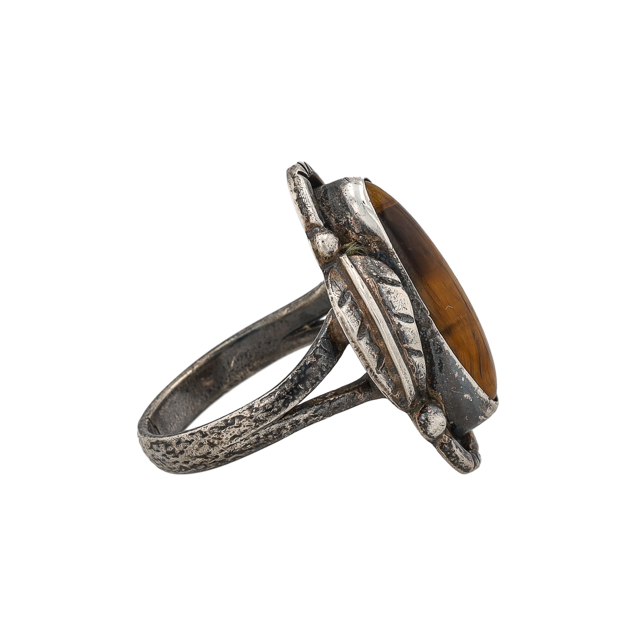 Mexico Eagle 4 Tigers Eye Sterling Ring Sz. 9, 7g
