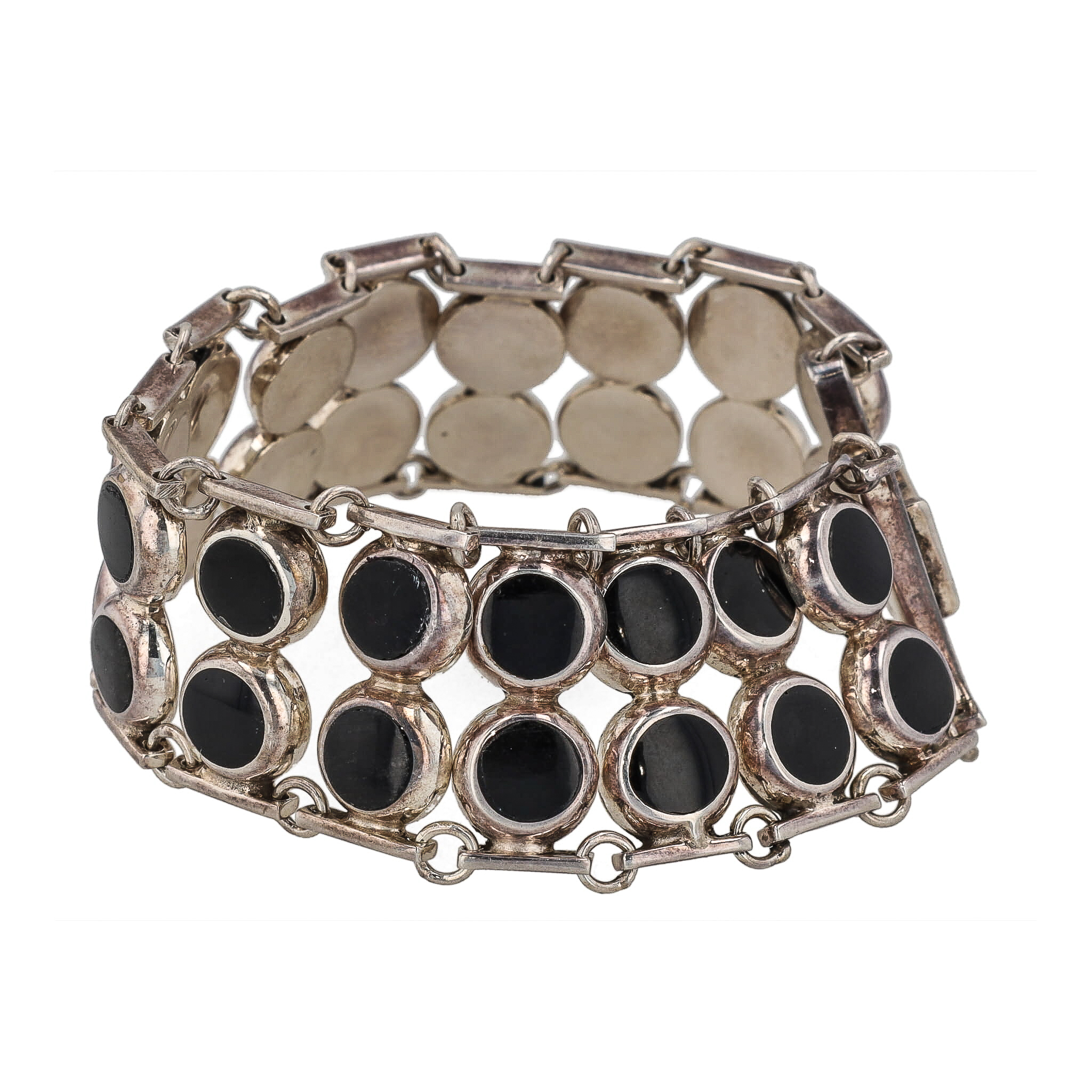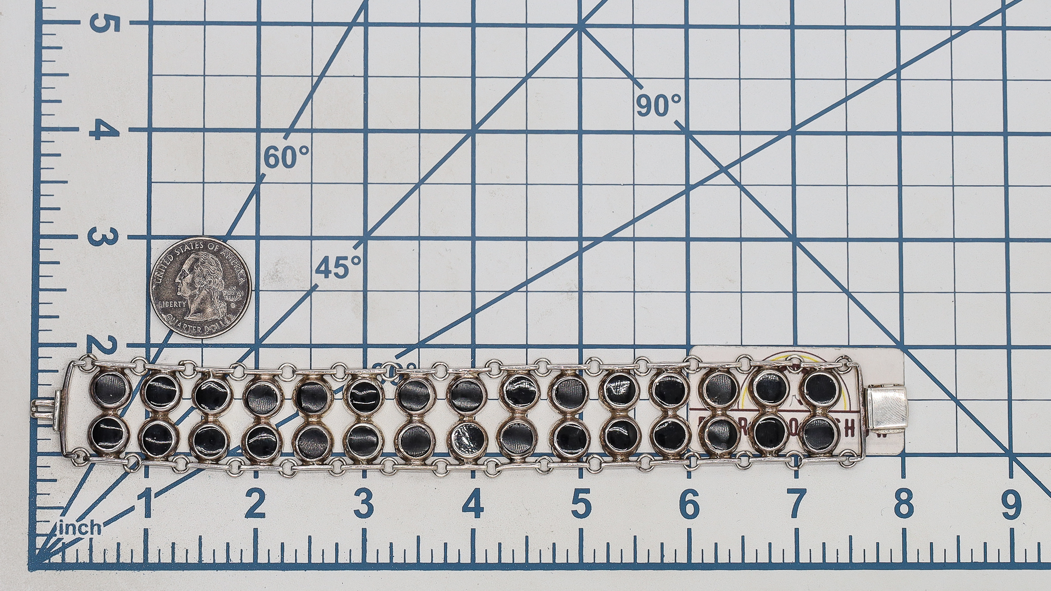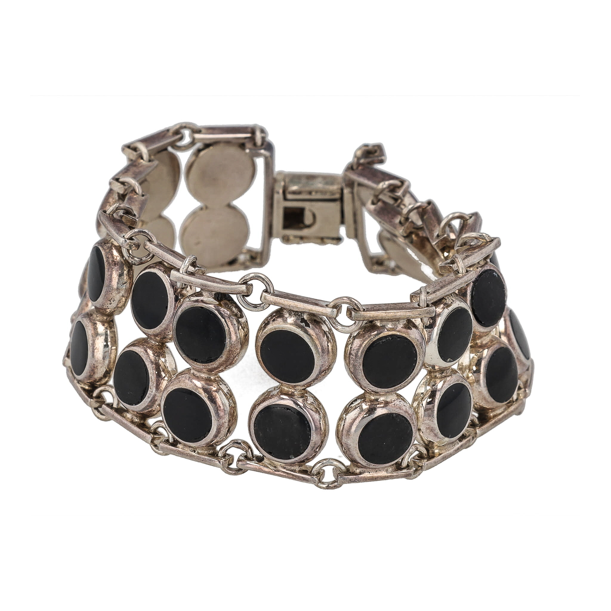 Signed TM-181 Taxco Mexico Onyx Sterling Bracelet 62g