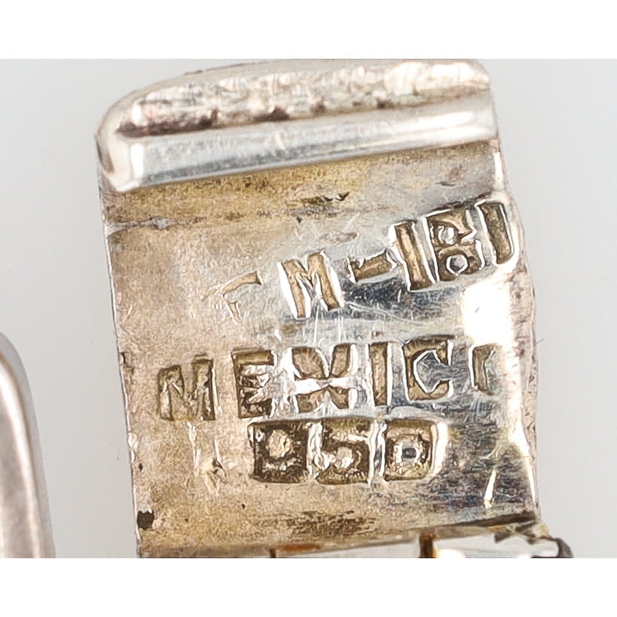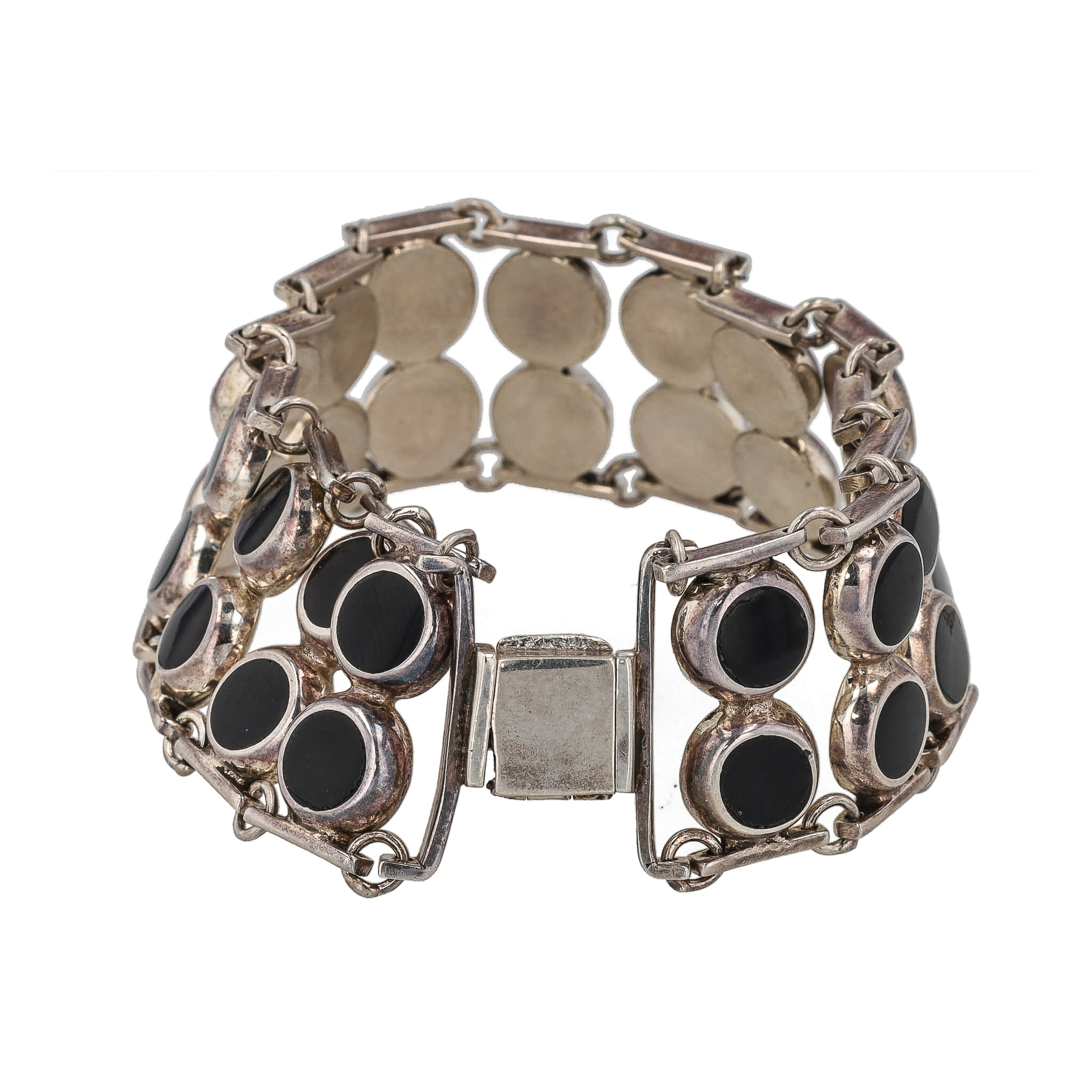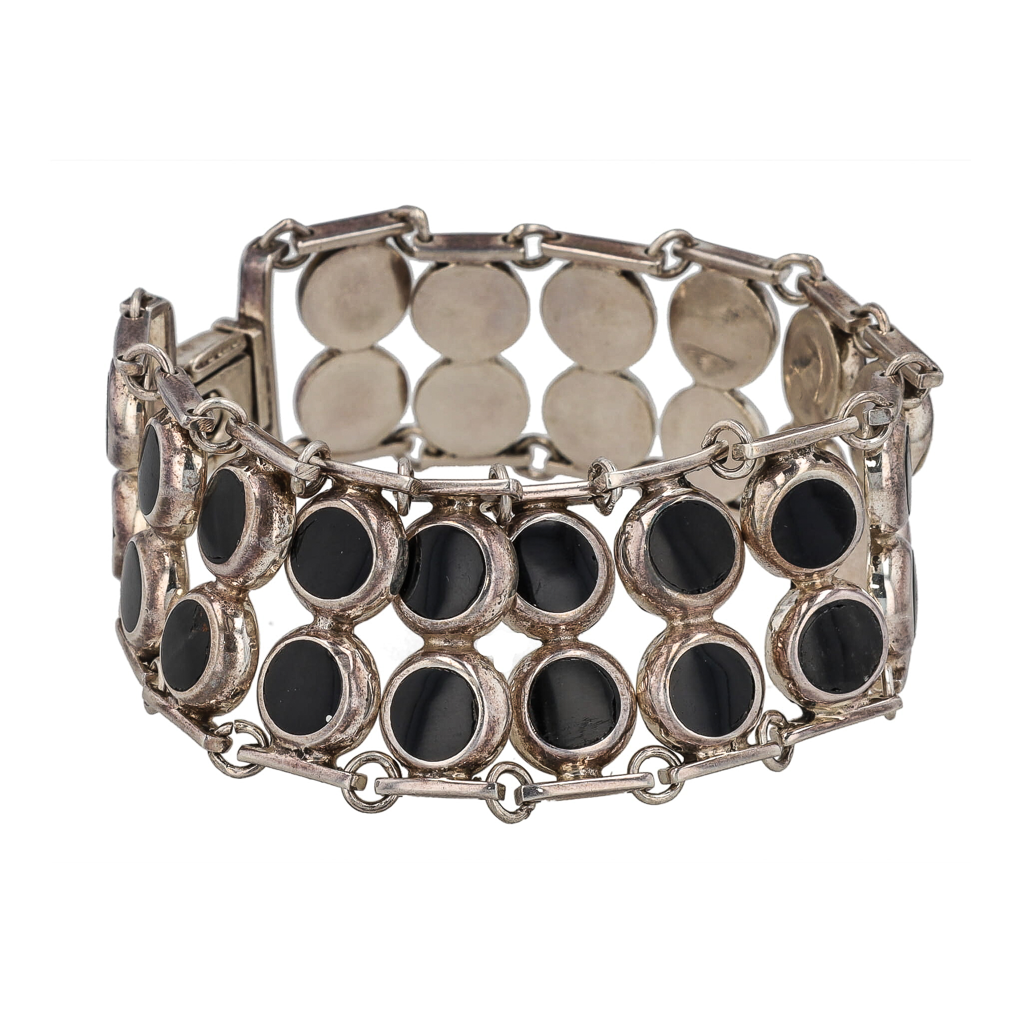 Signed TM-181 Taxco Mexico Onyx Sterling Bracelet 62g