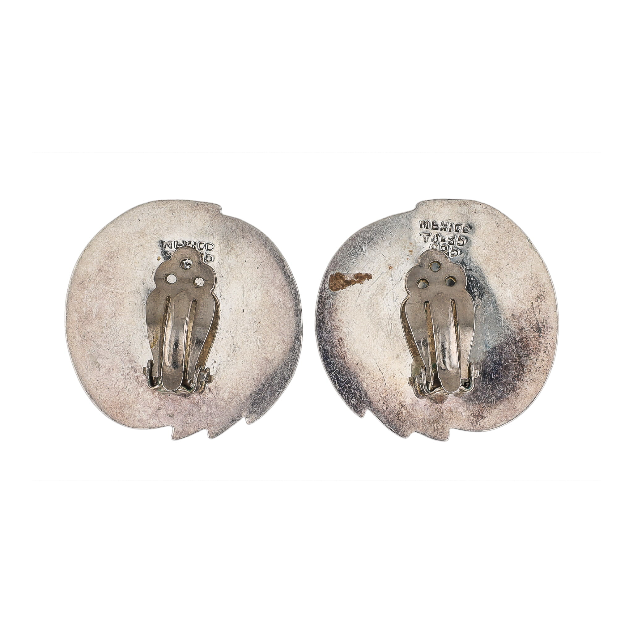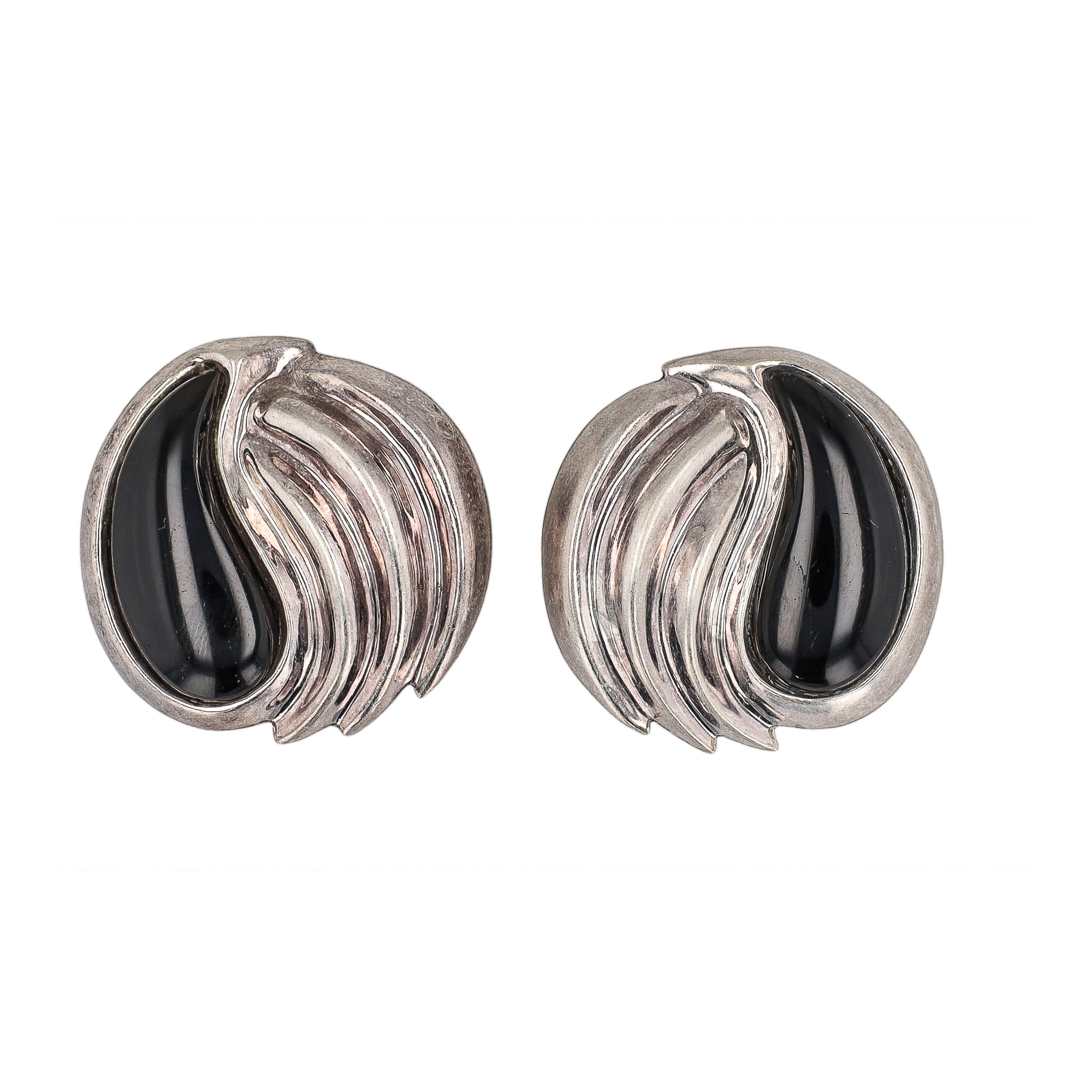 Signed TJ-35 Taxco Mexico Onyx Sterling Large Earrings