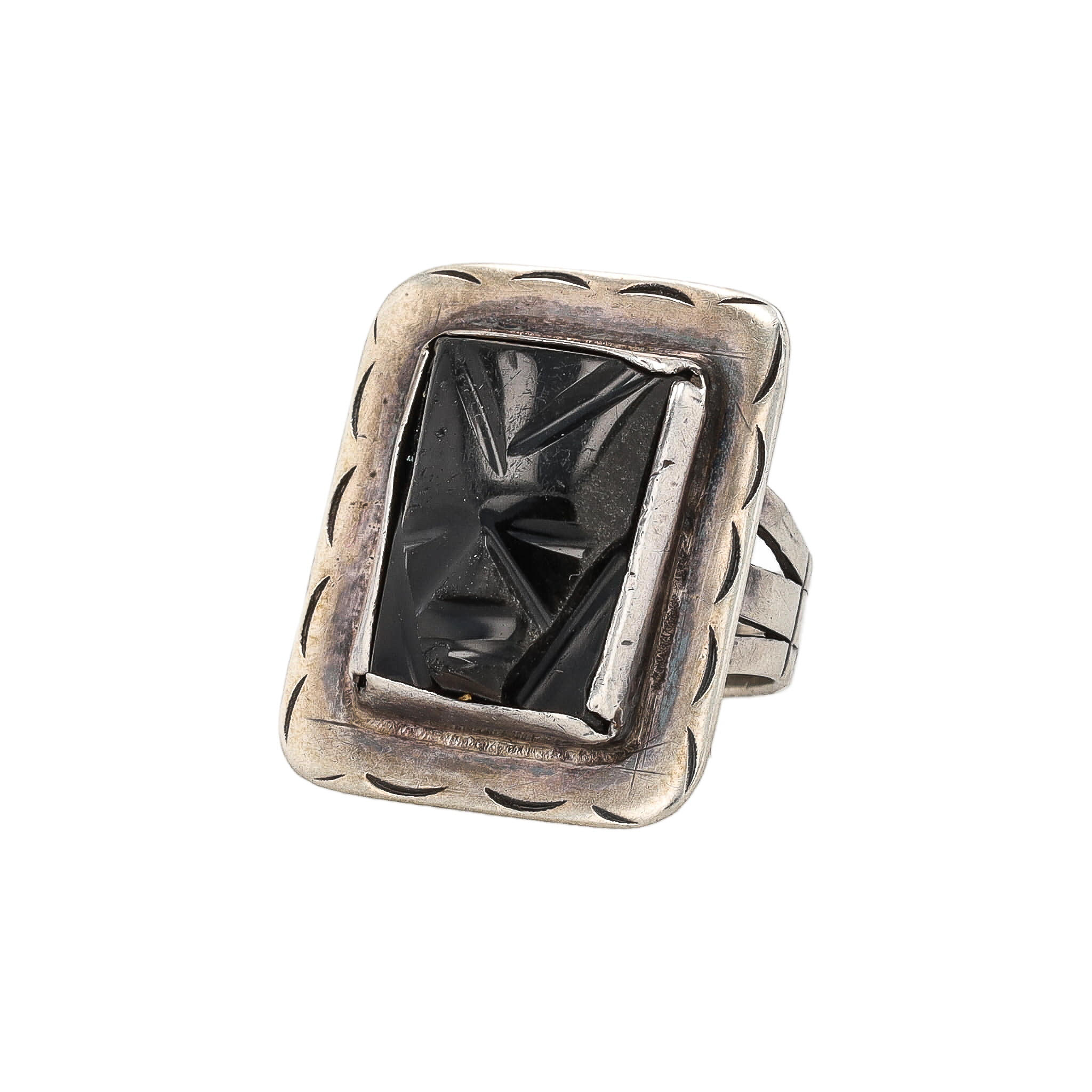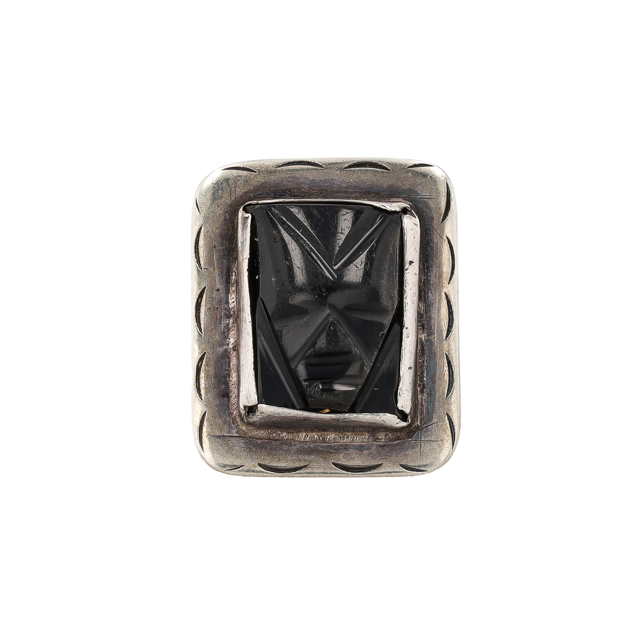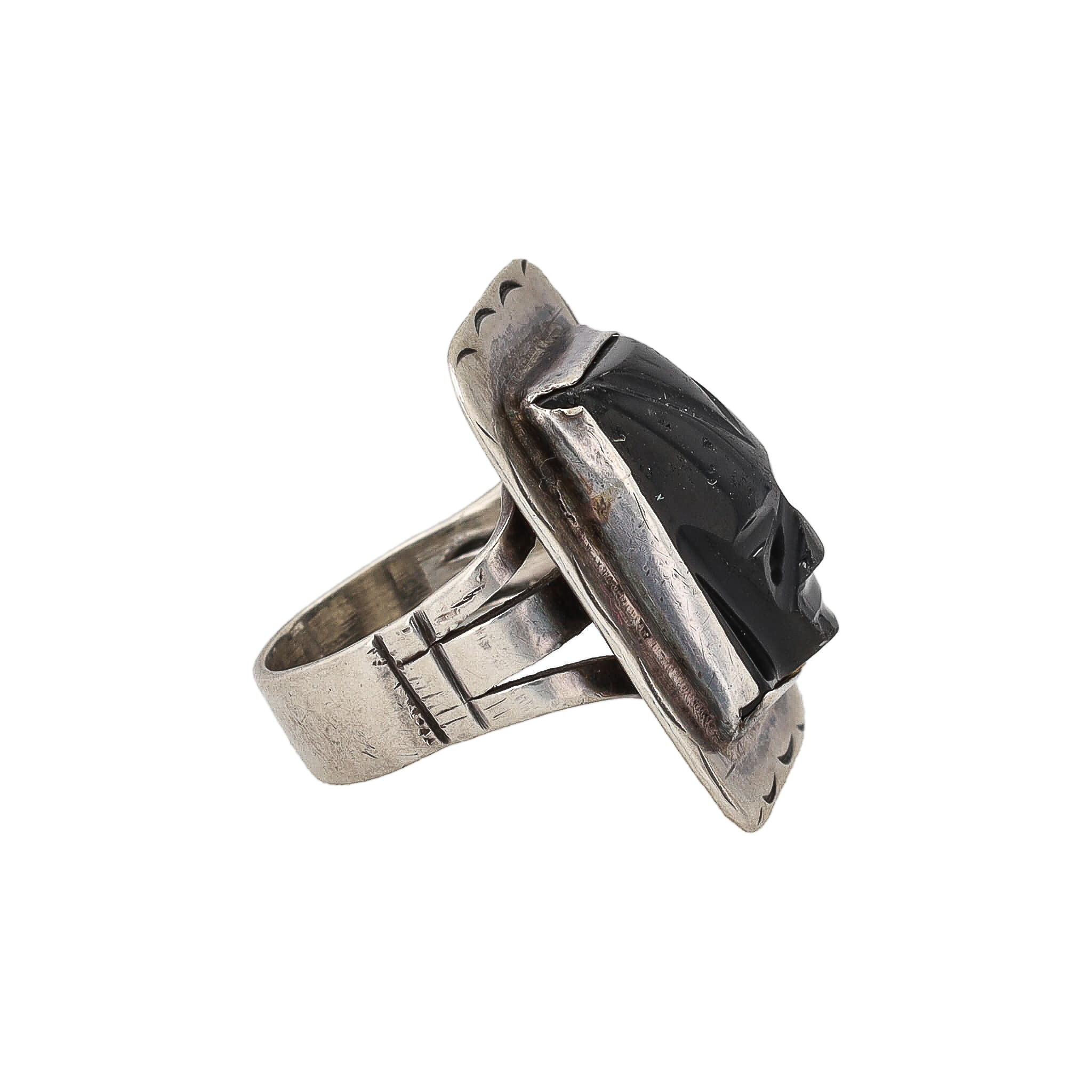 Vintage Mexico Onyx Carved Face Sterling Ring Sz. 6, 10g