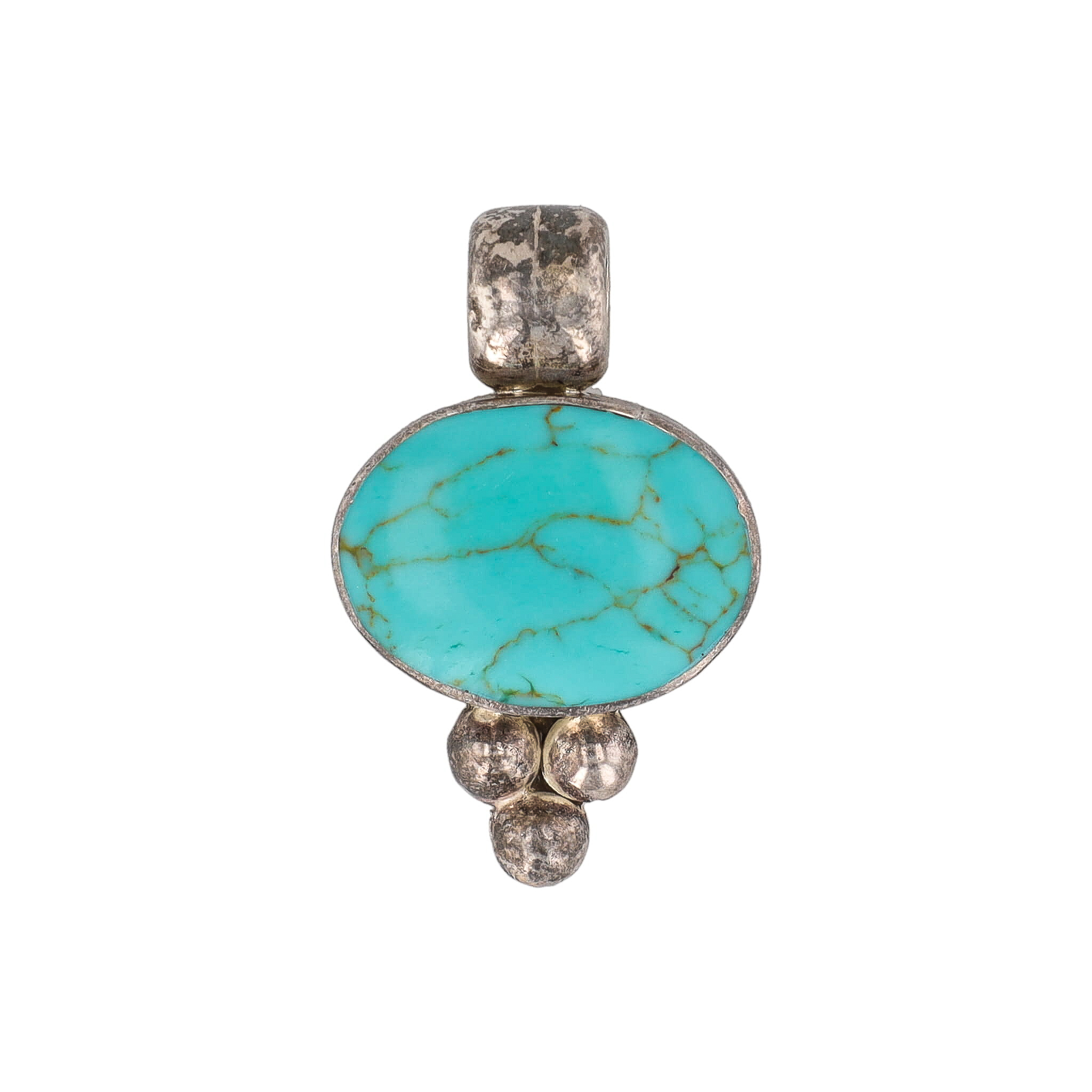 Signed ATI Taxco Mexico Turquoise Sterling Pendant 7g