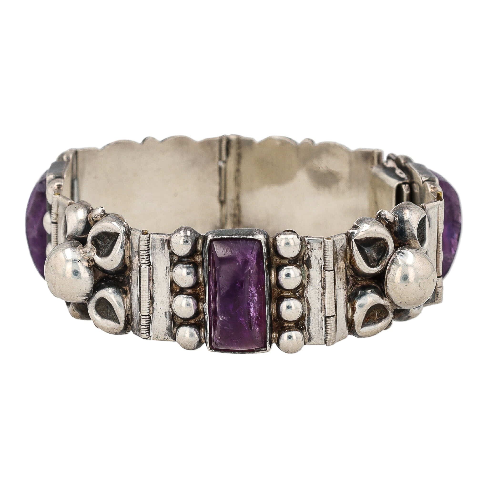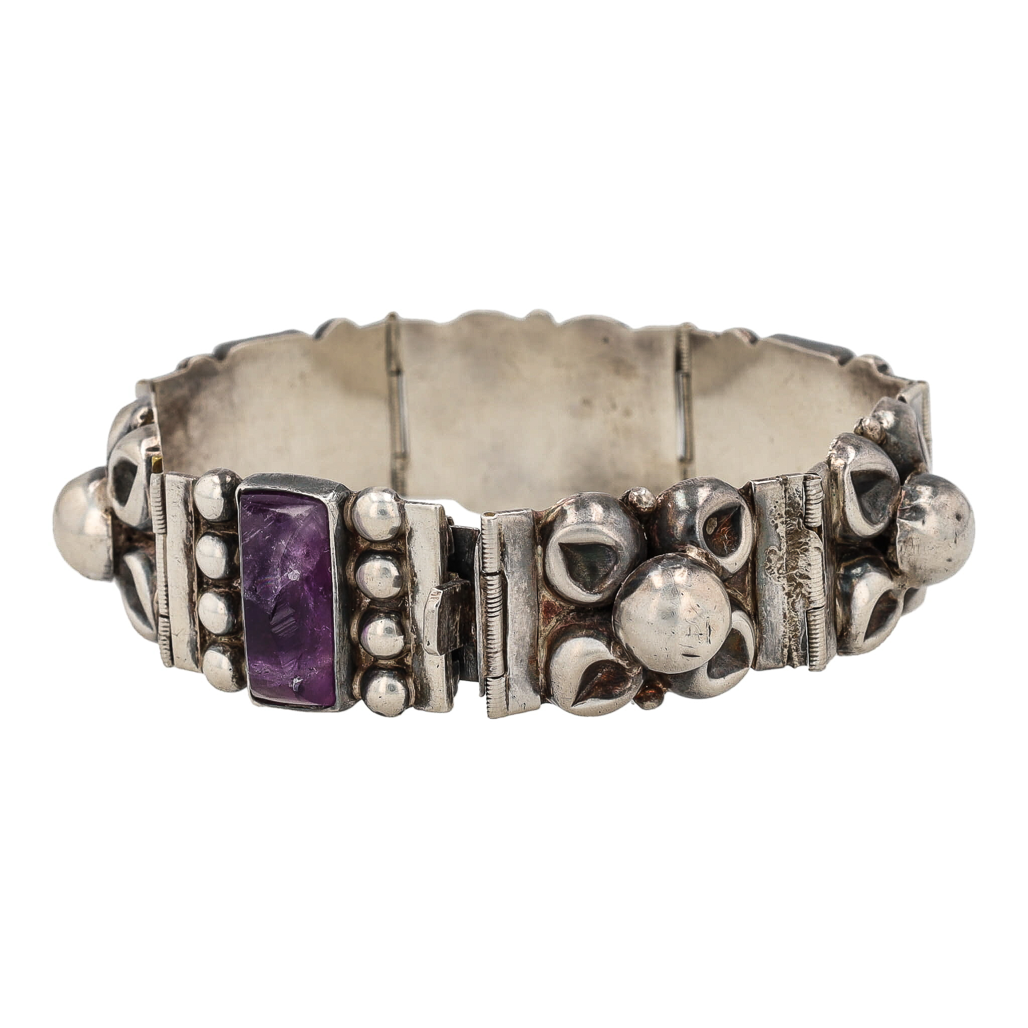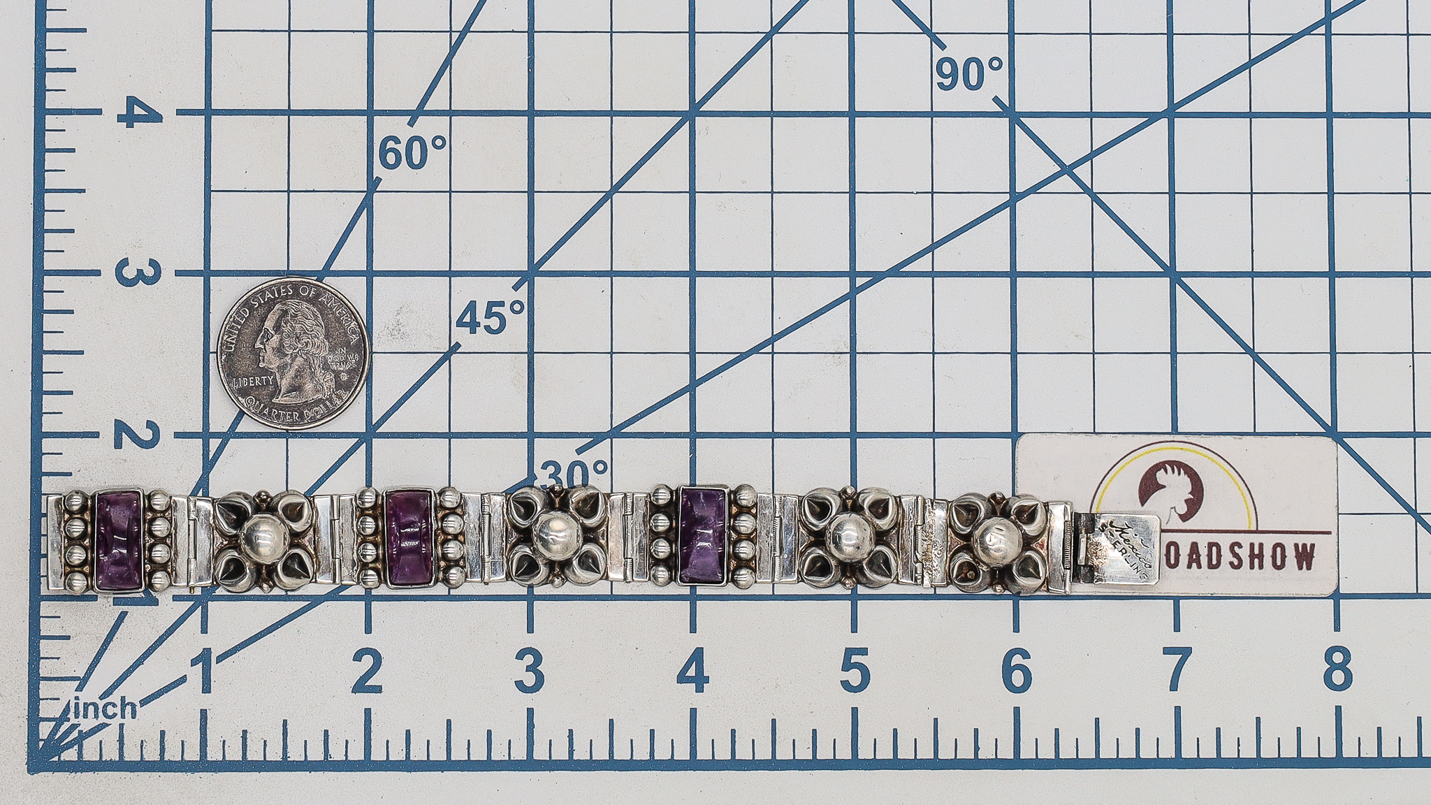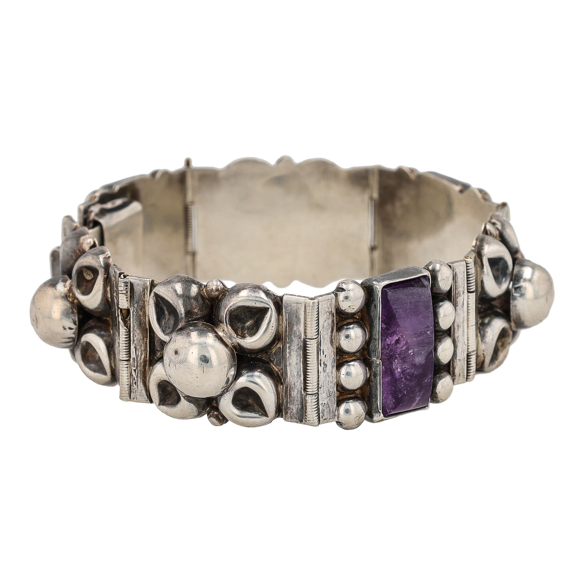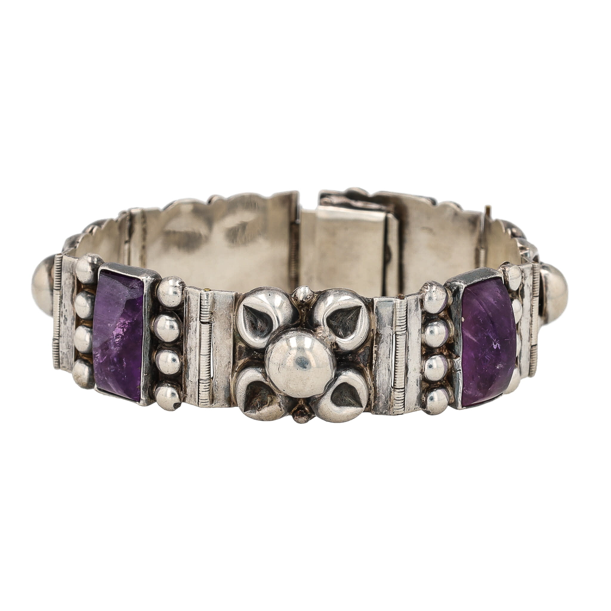 Vintage Mexico Amethyst Sterling Panel Bracelet 24g