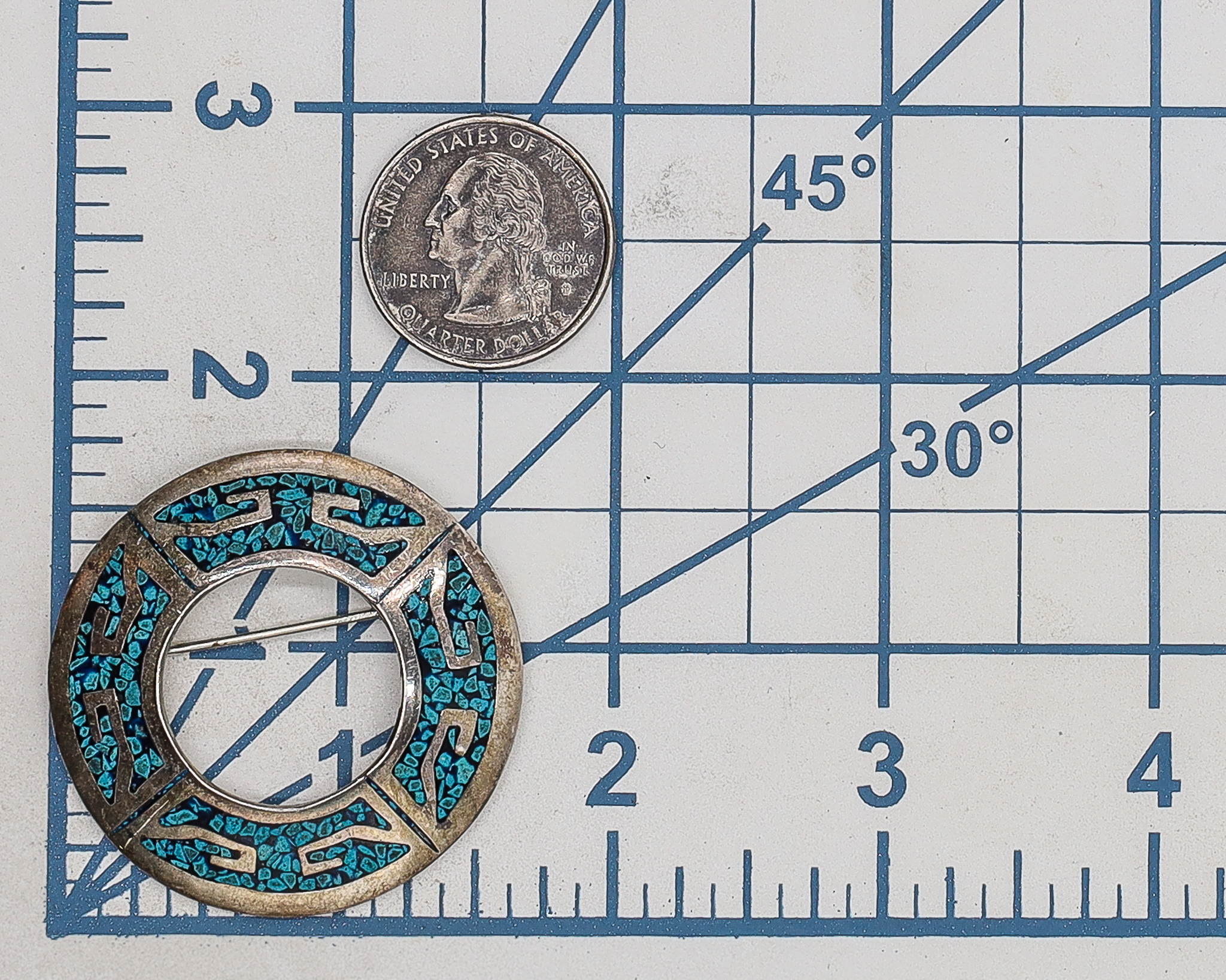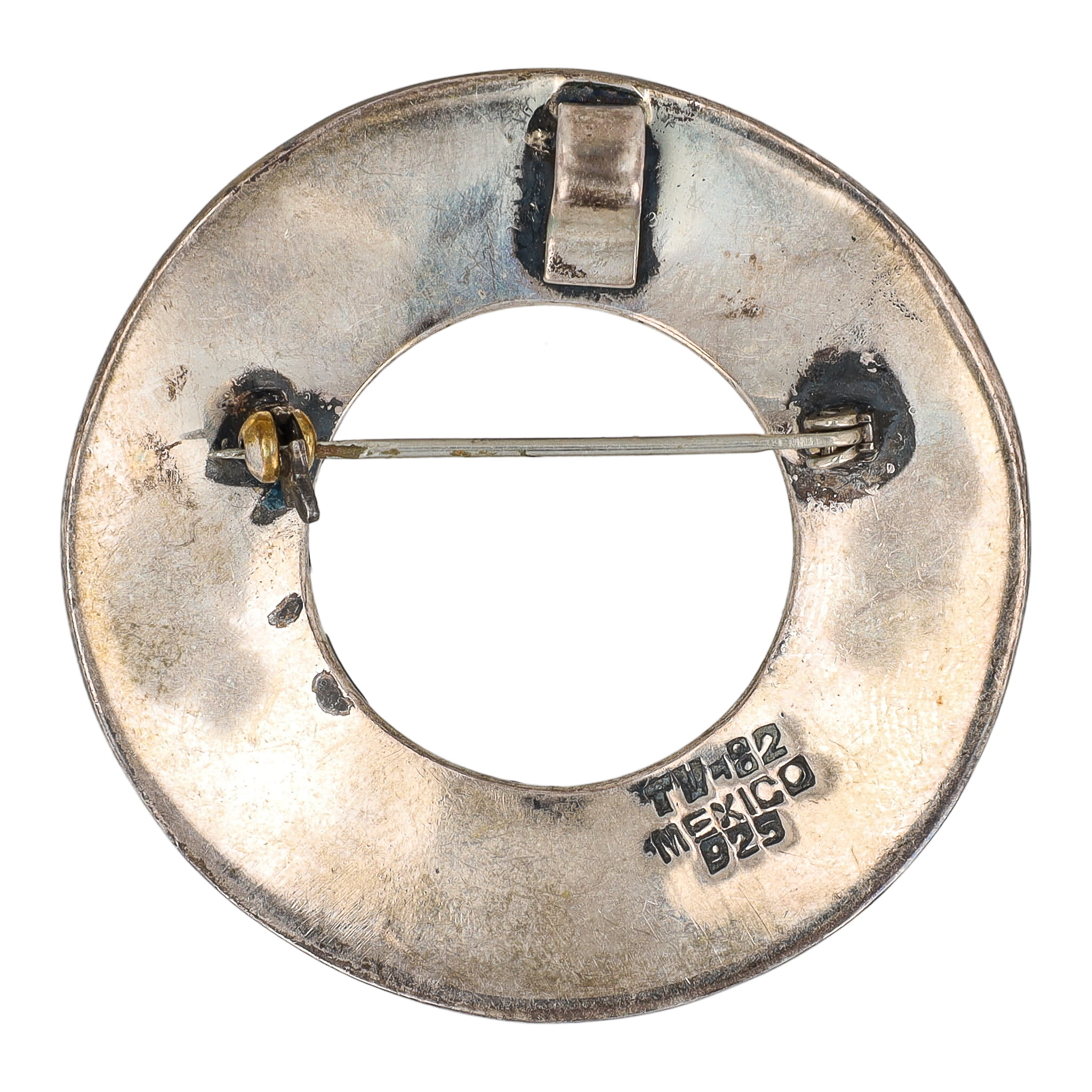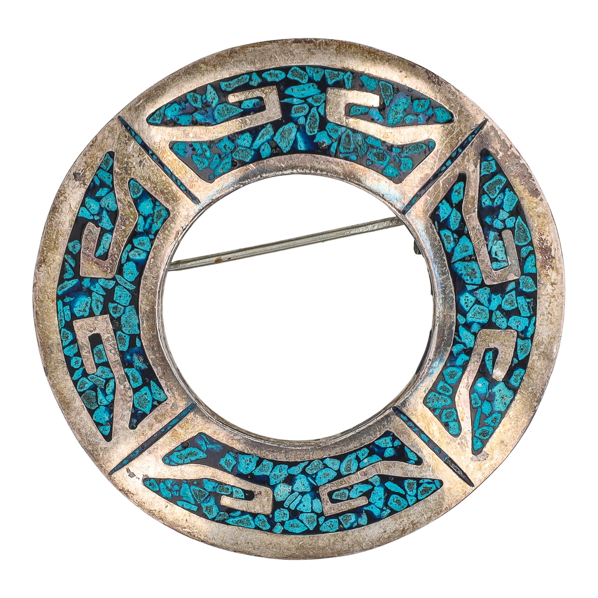 Signed TV-82 Taxco Mexico Crushed Turquoise Sterling Pendant Brooch 16g