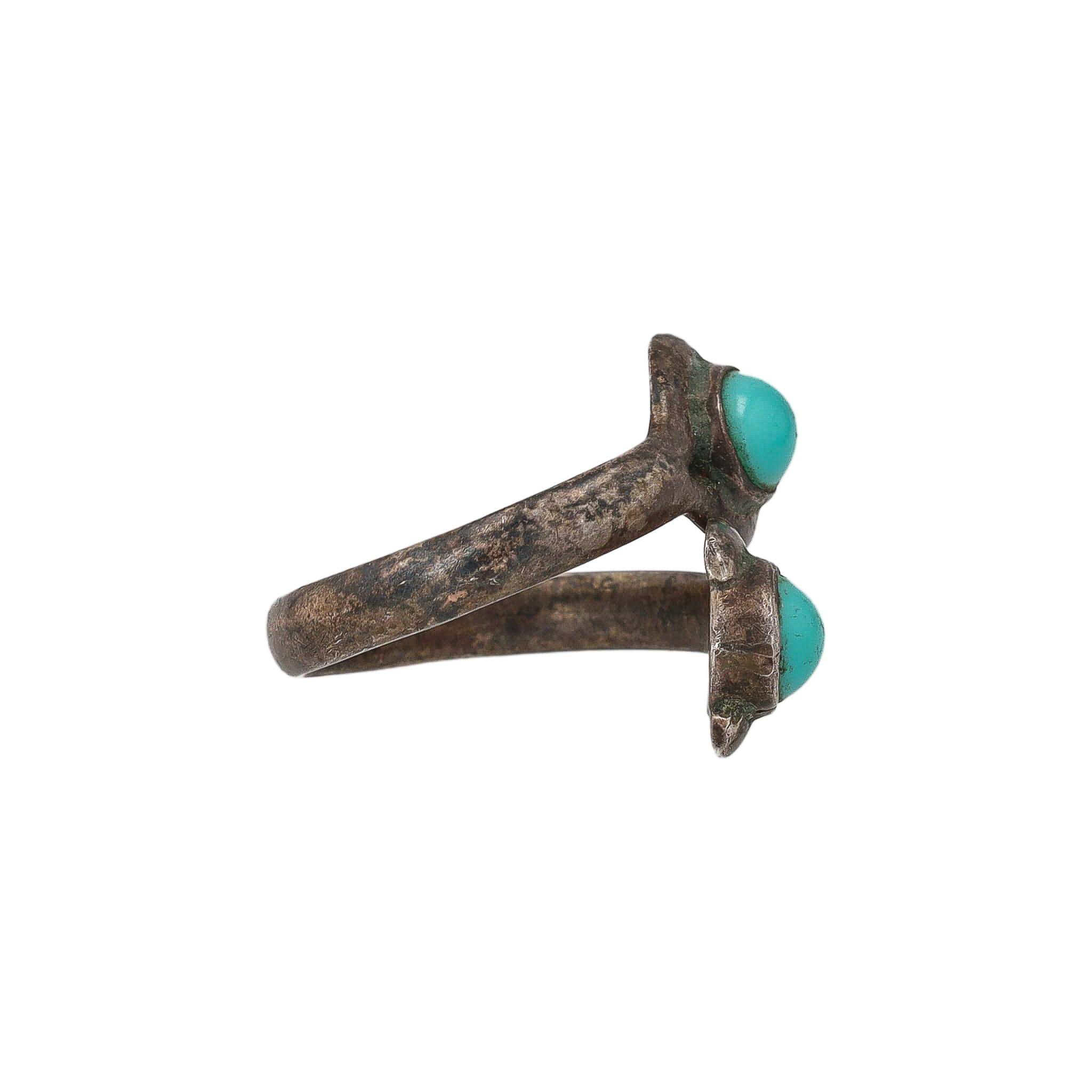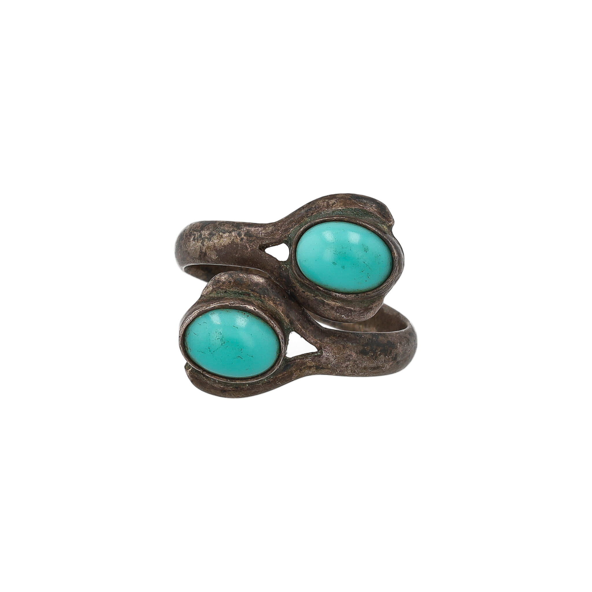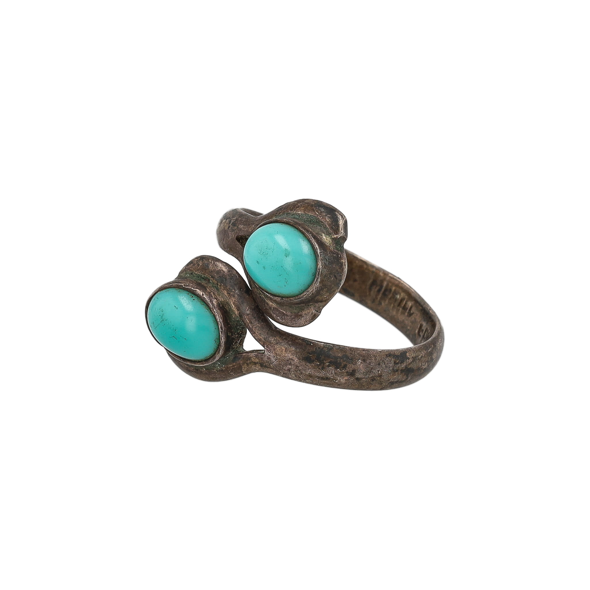 Signed Mexico Turquoise Sterling Wrap Ring Sz. 8, 5g-Illegible Signature Stamp