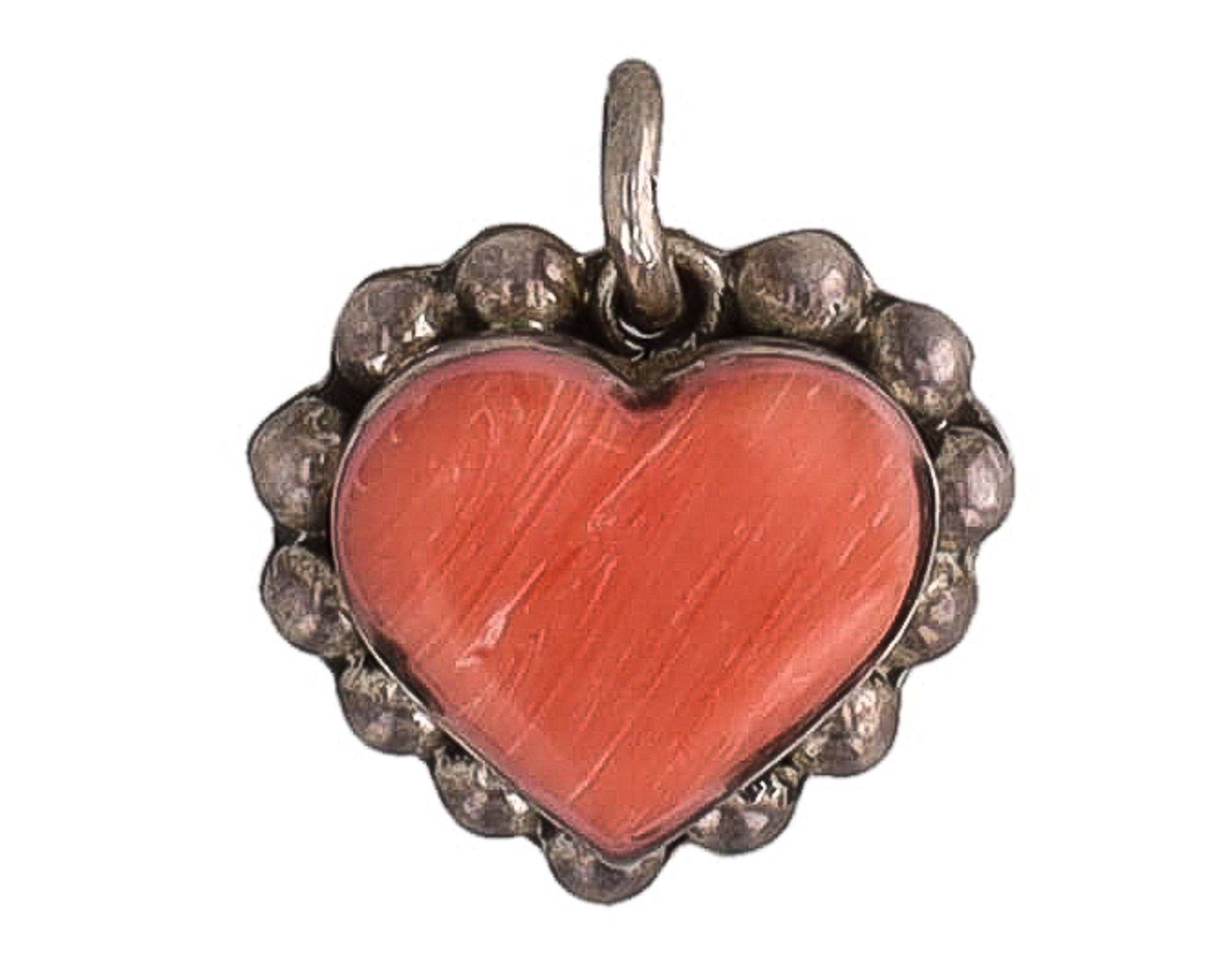 Vintage Mexico Spiny Oyster Sterling Heart Pendant 8.5g