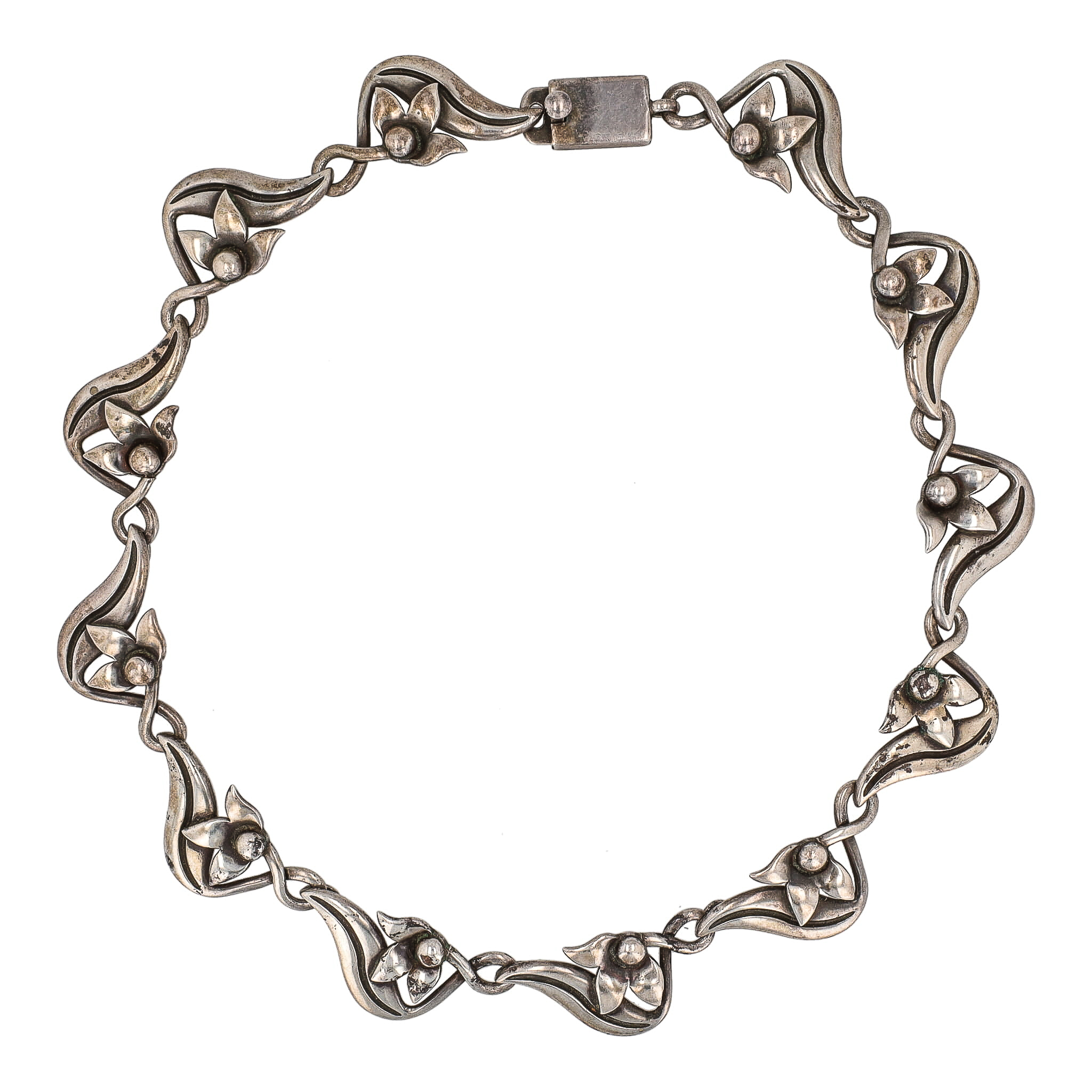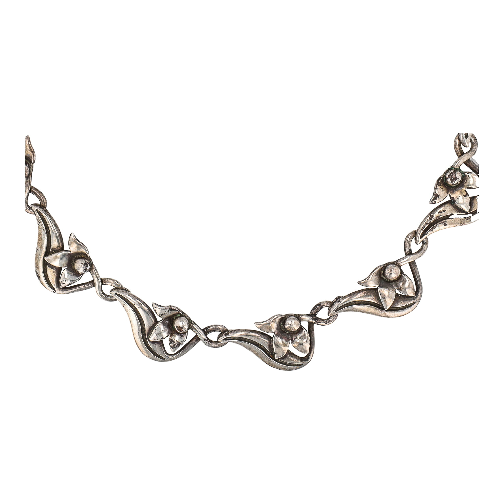 RARE Jose Luis Flores For Miguel Taxco Mexico Sterling Floral Link Necklace 45.5g-1303 Stamp